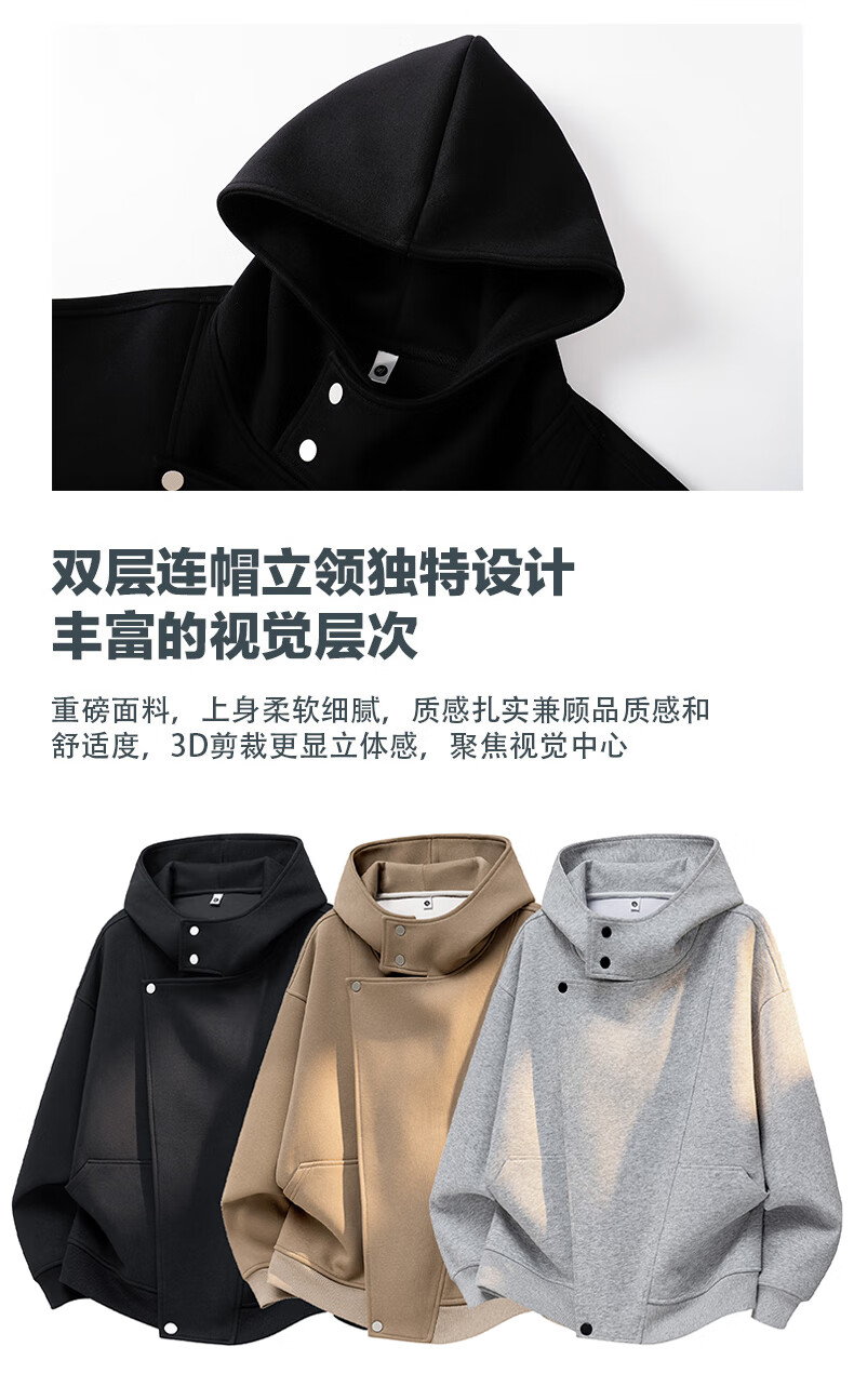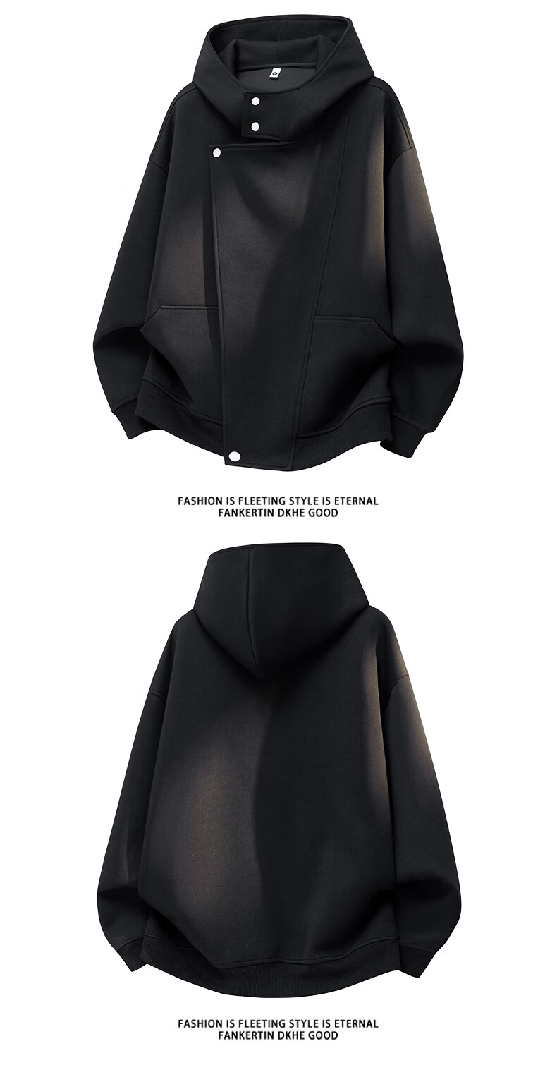 VETECOCOFF heavyweight cardigan sweatshirt for men in autumn and winter 520g Chinese cotton plus velvet thickened rivet design hooded jacket black M (recommended 90~120Jin Jin equals 0.5 kg)