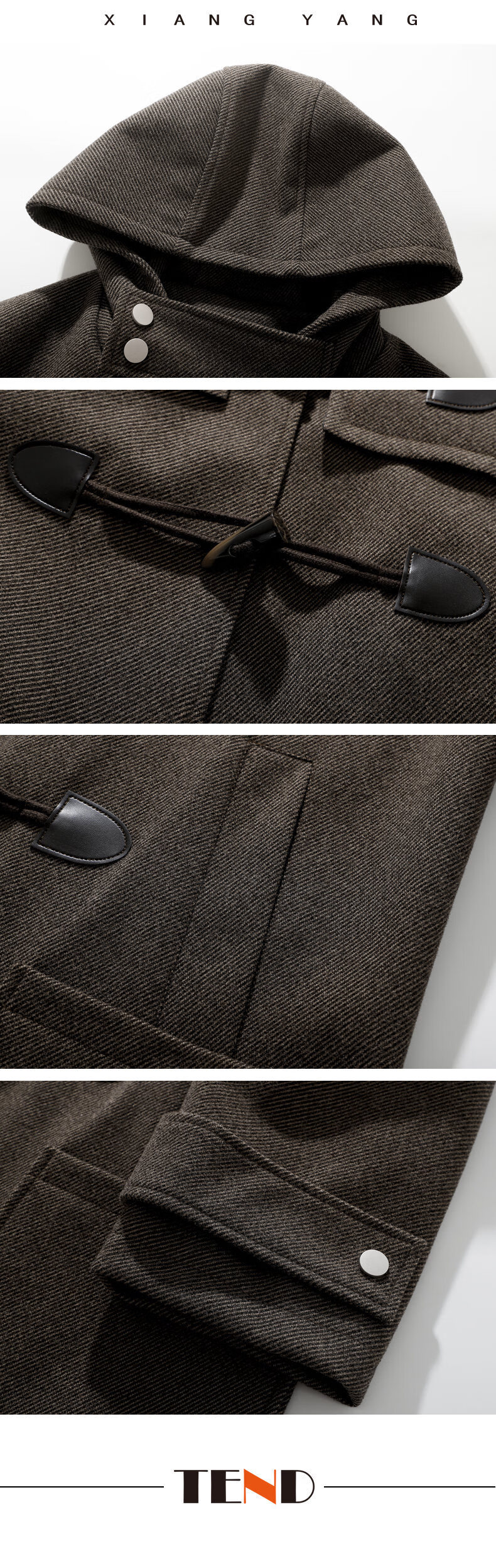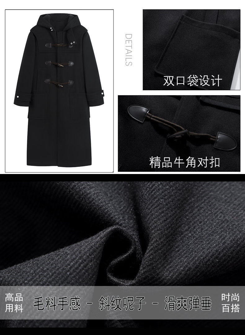 Playboy (PLAYBOY) Horn Button Woolen Coat Men's Mid-Length Over-the-Knee Hooded Windbreaker Spring and Autumn Premium Woolen Coat Men's Brown XL