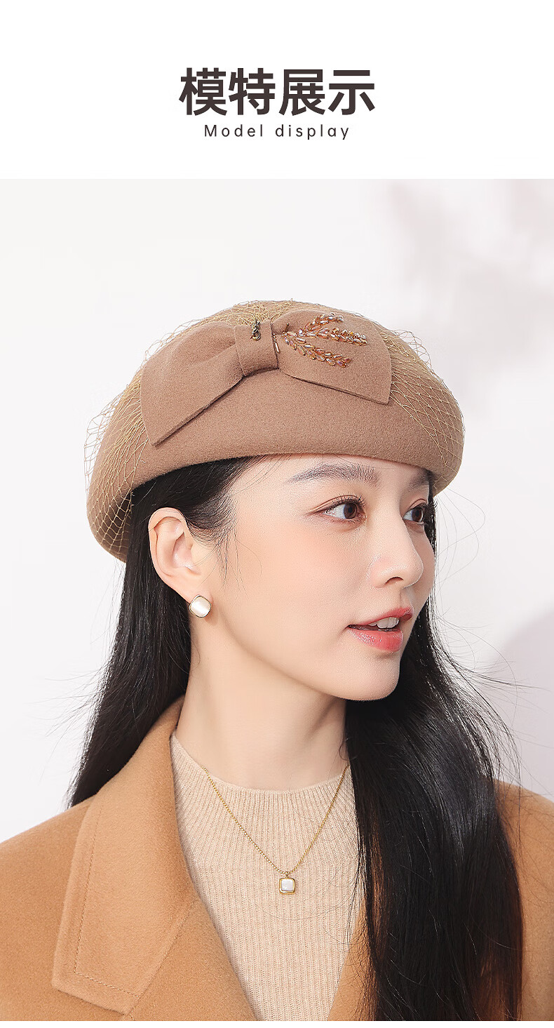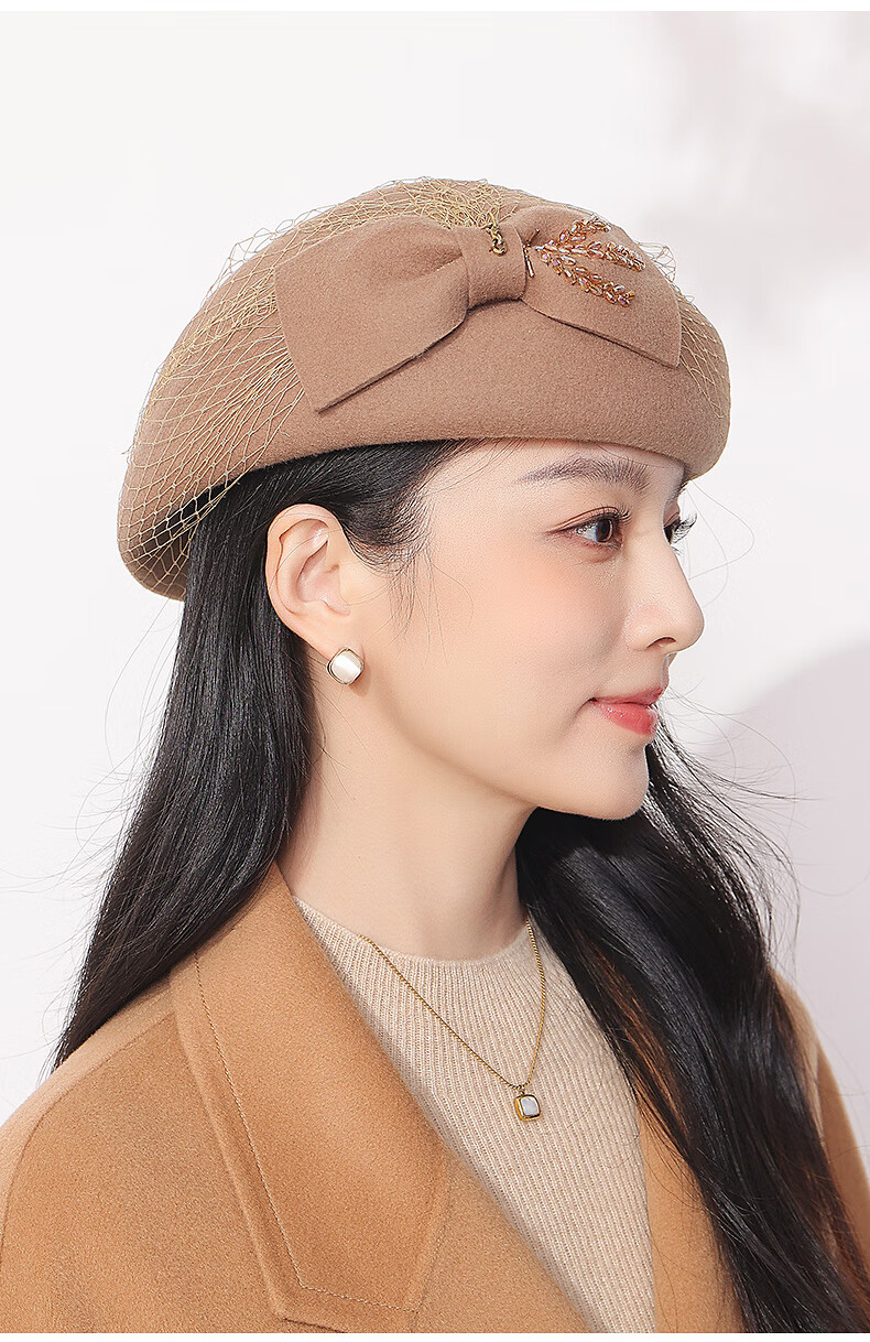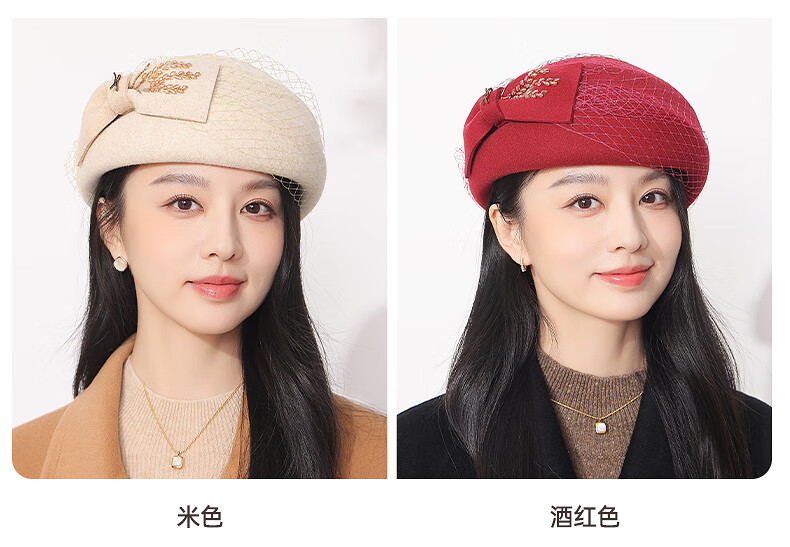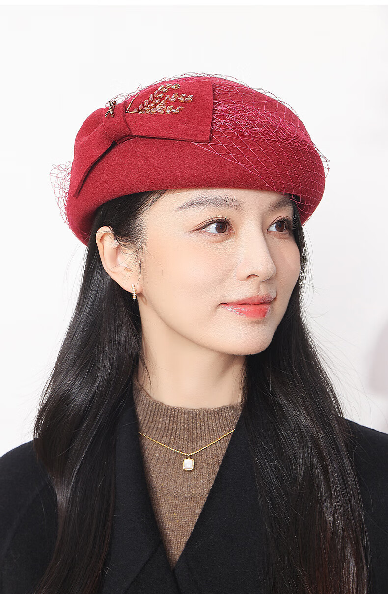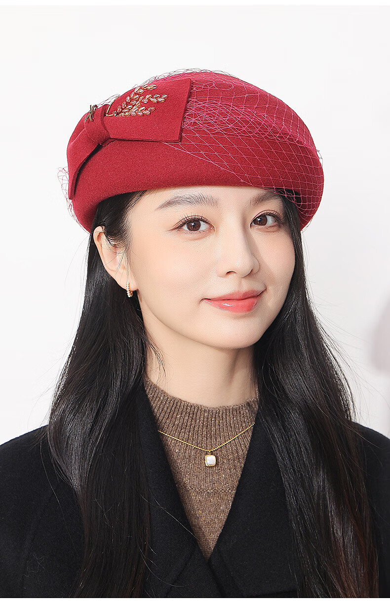 GEFWEIMKL Merino Wool Beret Women's Autumn and Winter New Fashion Bow Felt Hat Western Style Versatile Pure Wool Women's Hat Burgundy One Size Built-in Adjustment Rope
