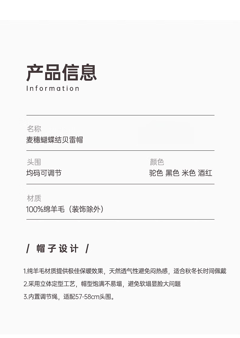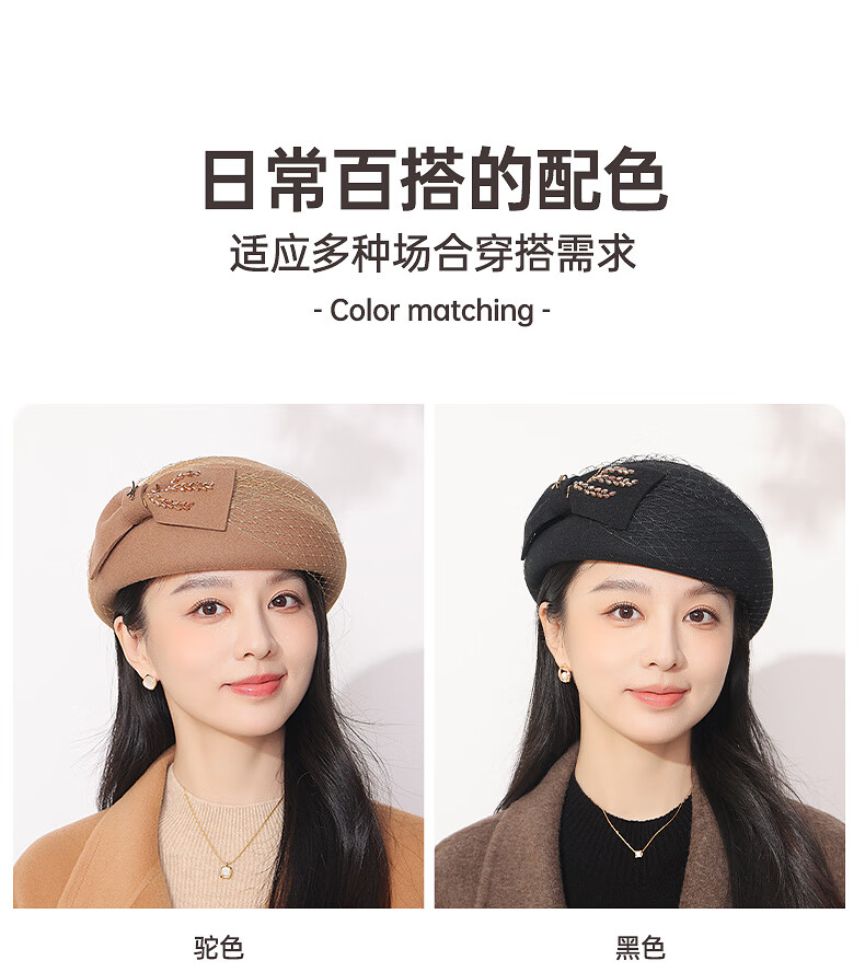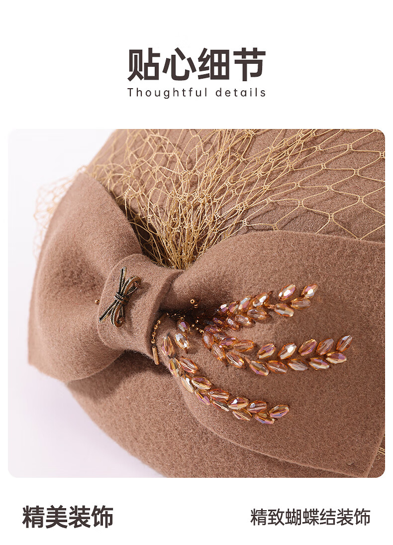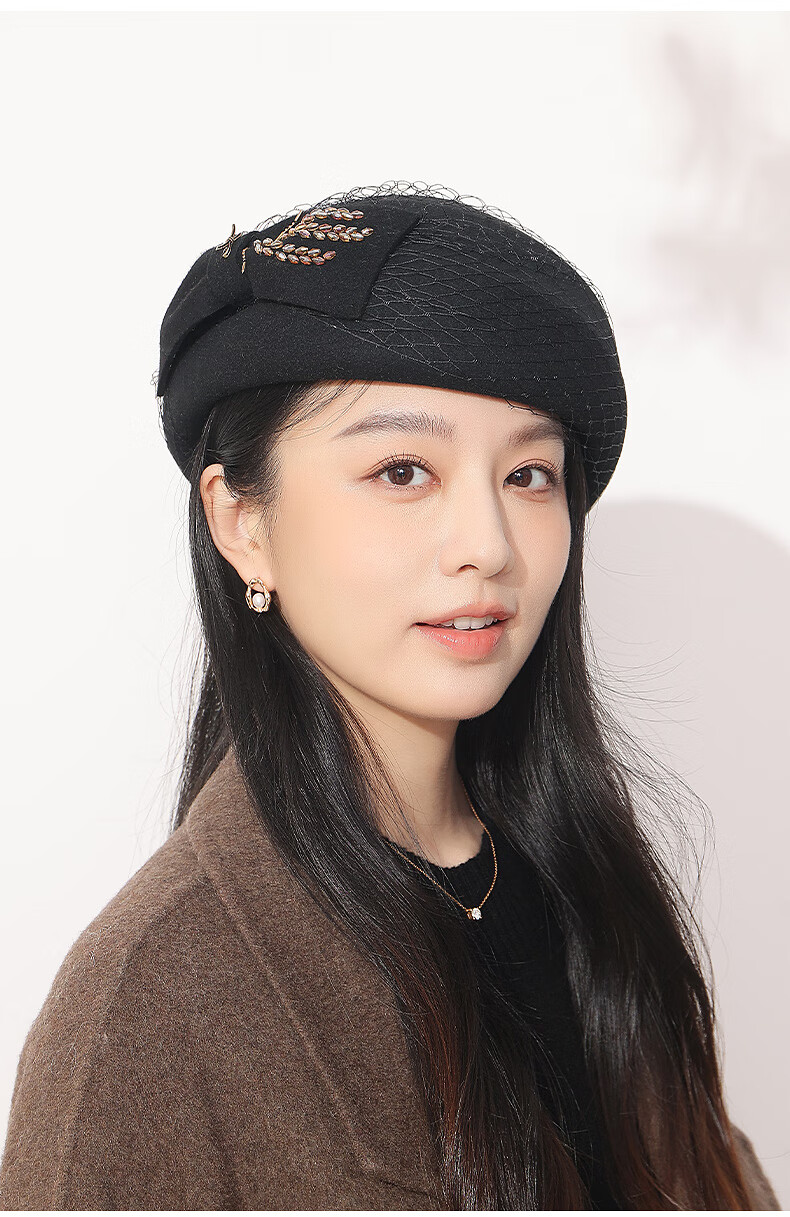 GEFWEIMKL Merino Wool Beret Women's Autumn and Winter New Fashion Bow Felt Hat Western Style Versatile Pure Wool Women's Hat Burgundy One Size Built-in Adjustment Rope