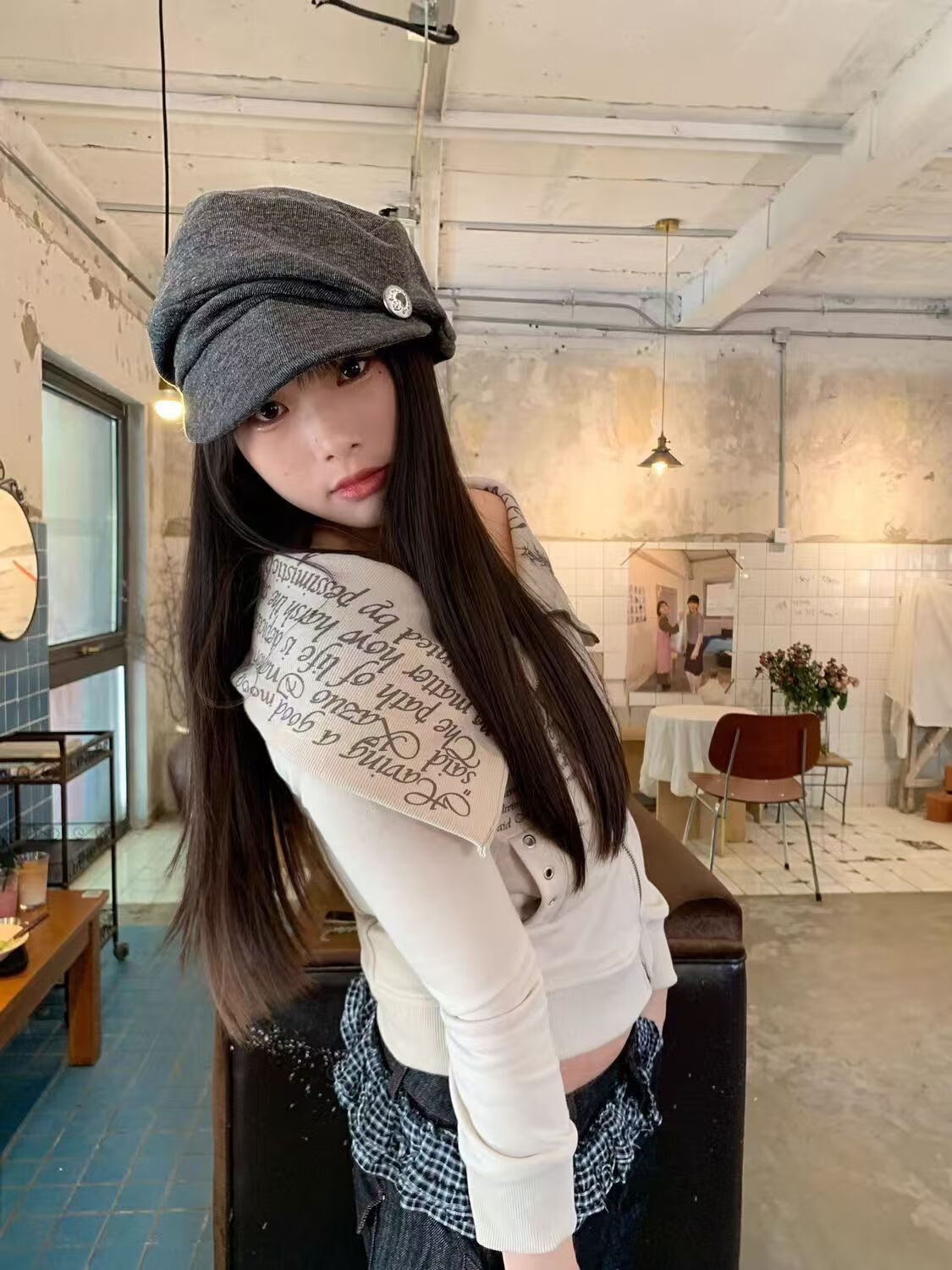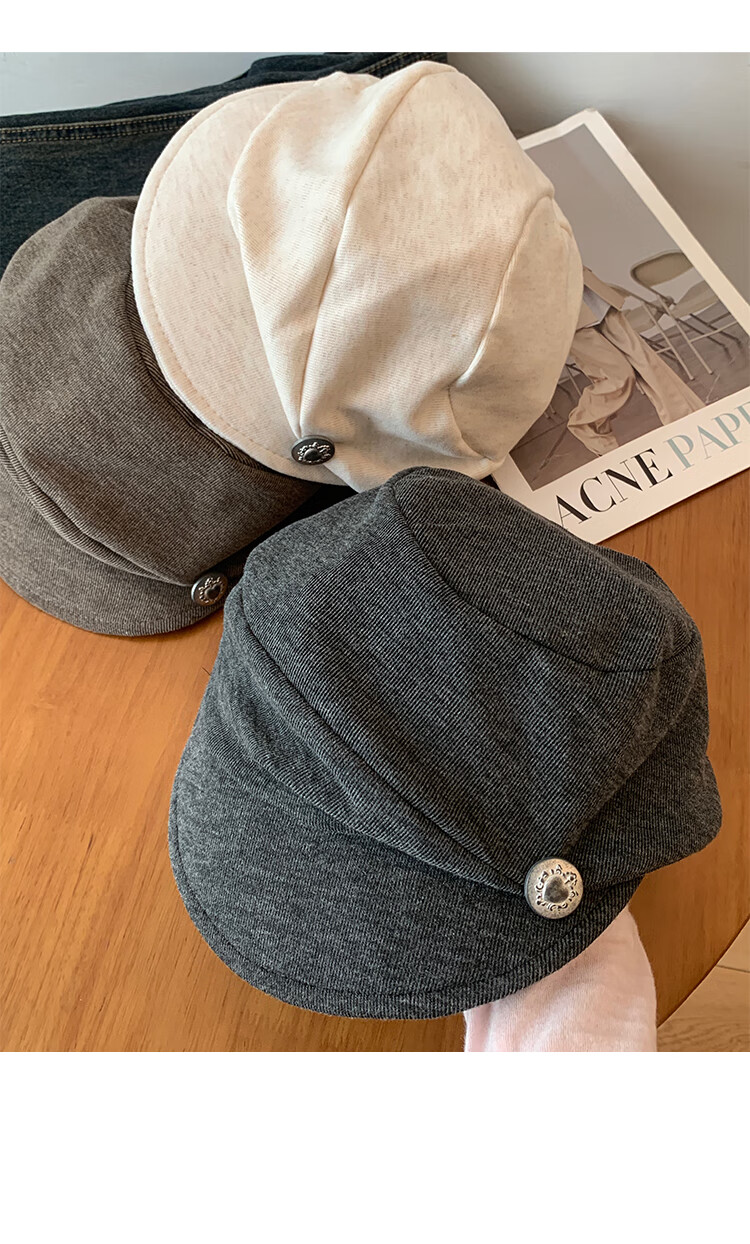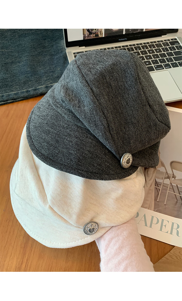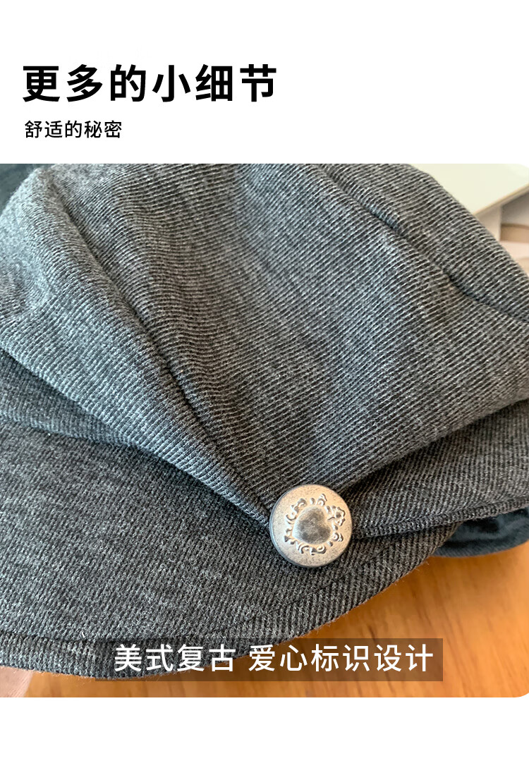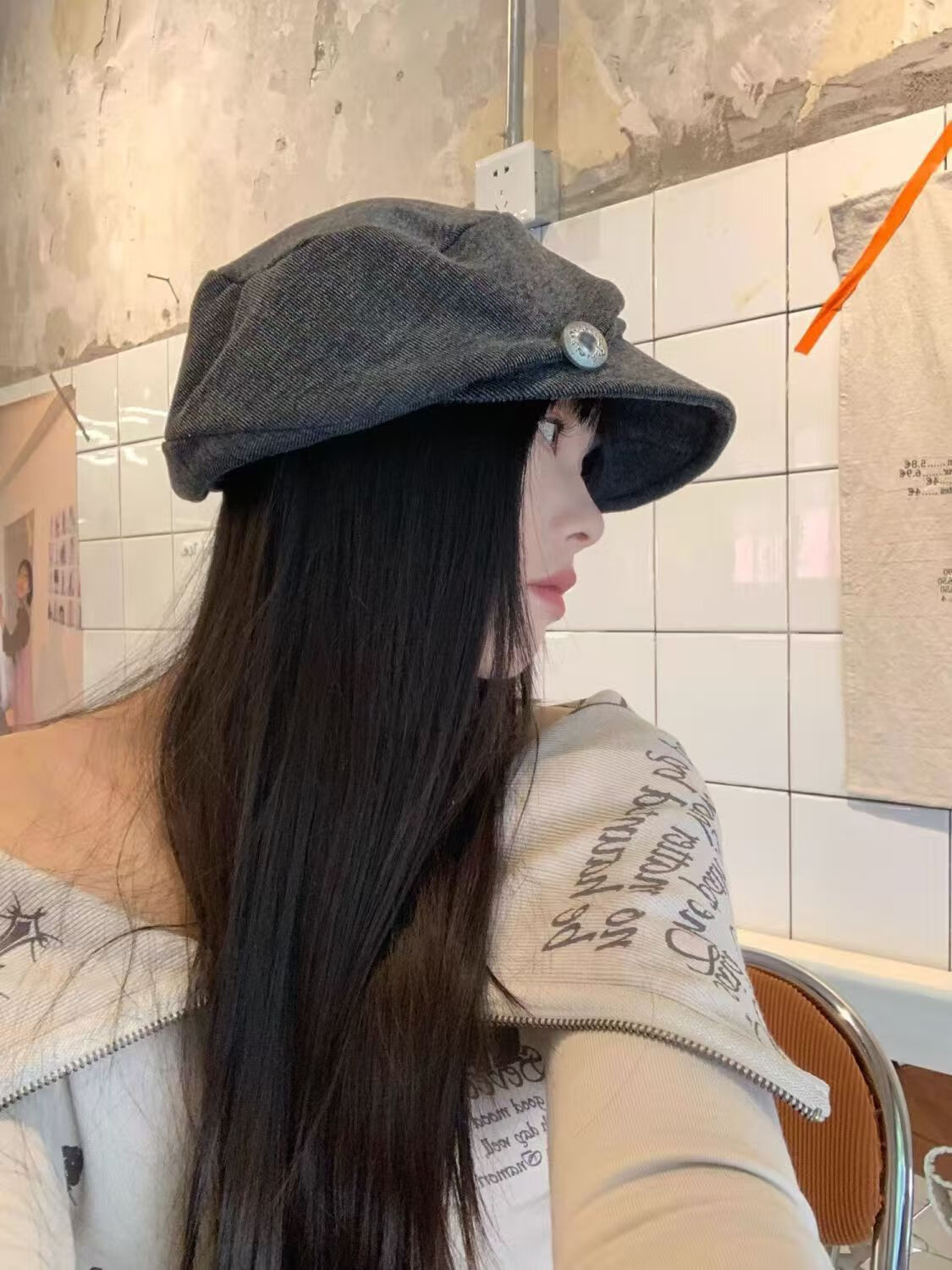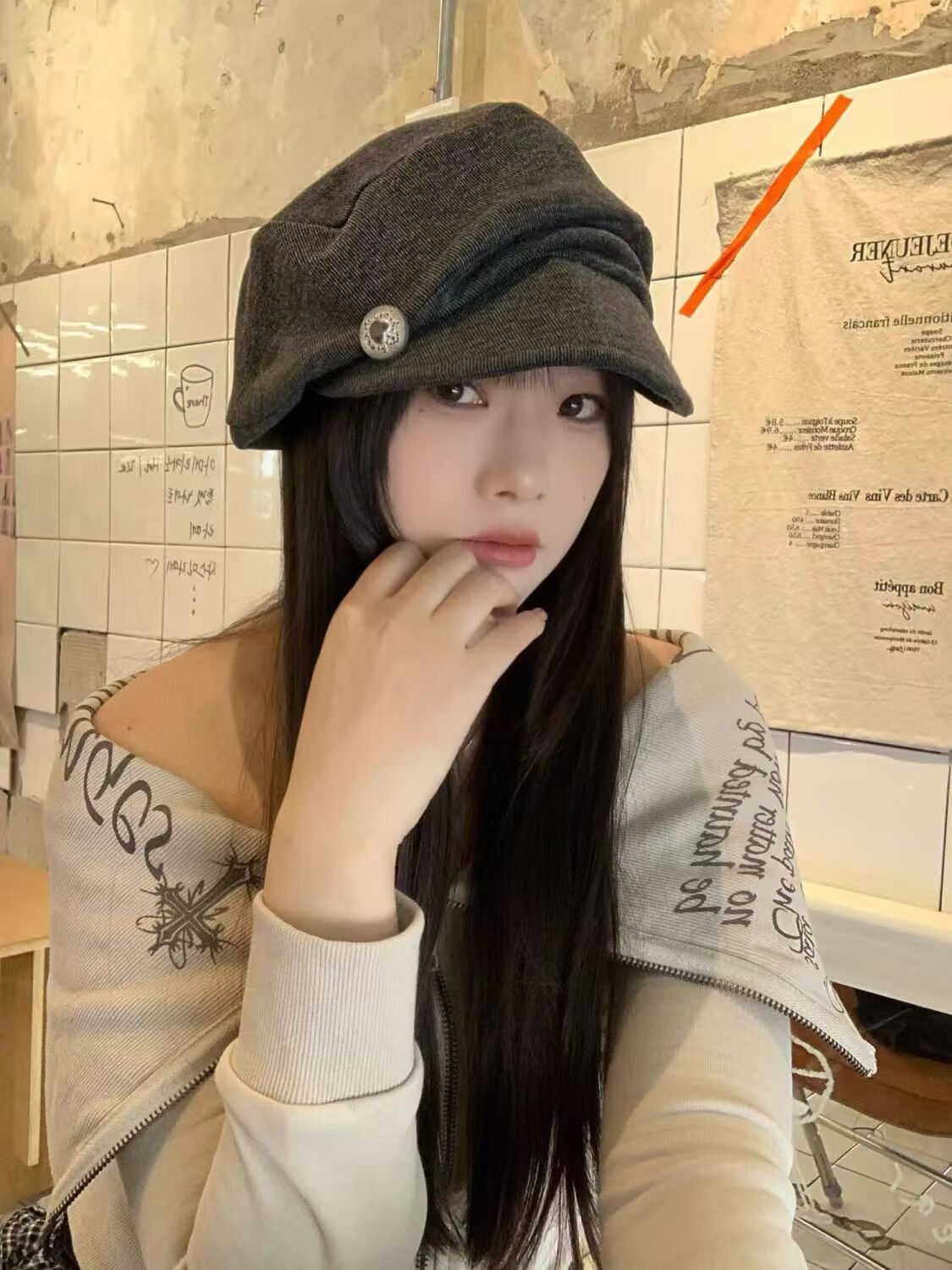 Shen Shi Yi Japanese retro pleated beret women's 2025 new versatile Baotou hat big head circumference showing face little painter hat trendy love button beret dark gray one size