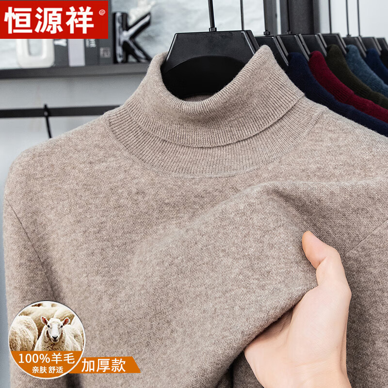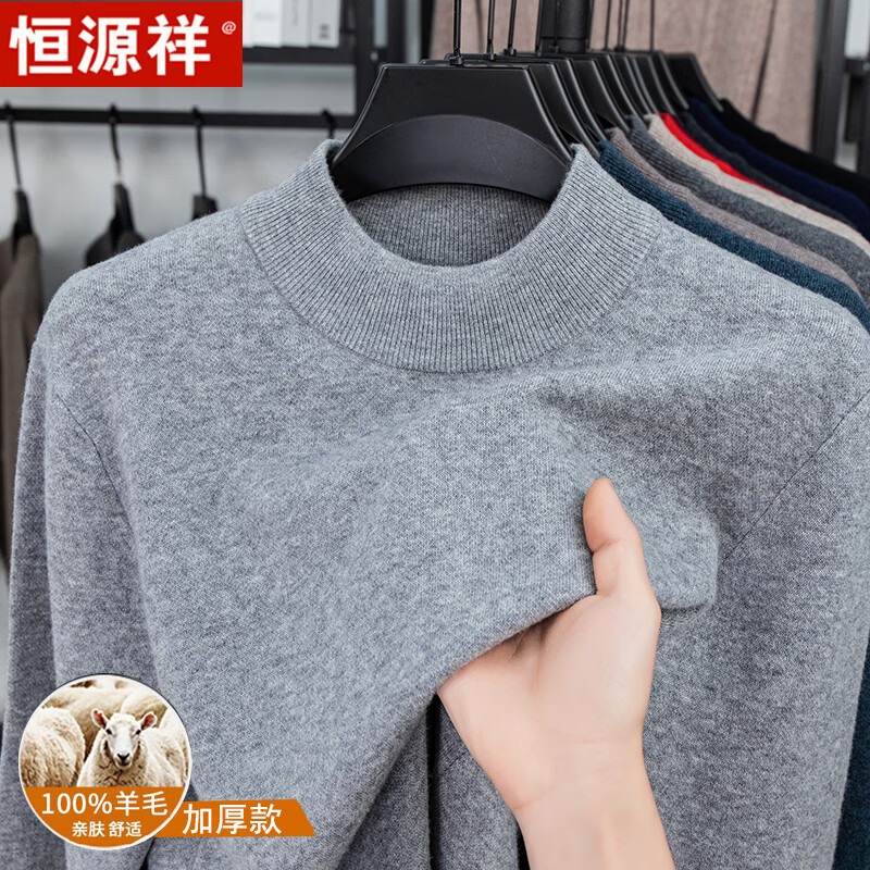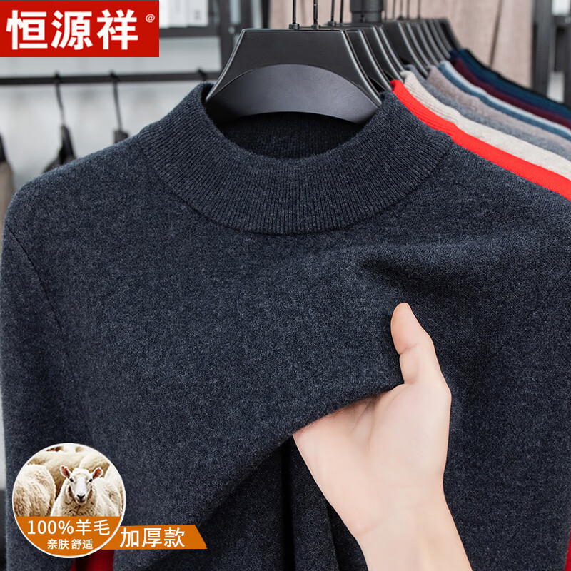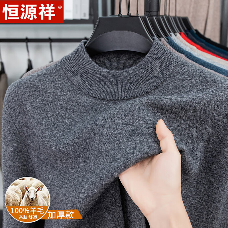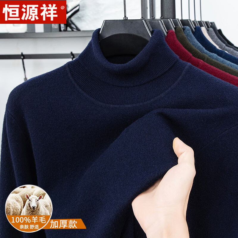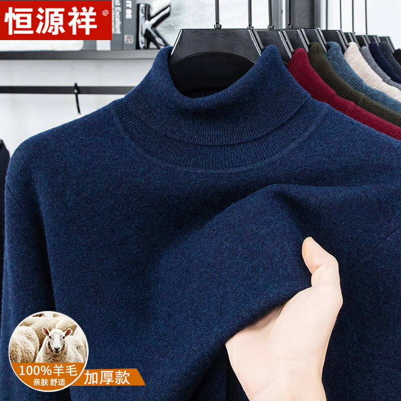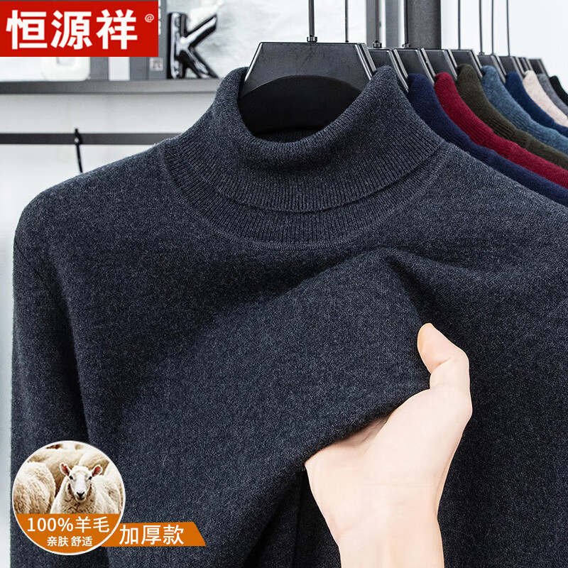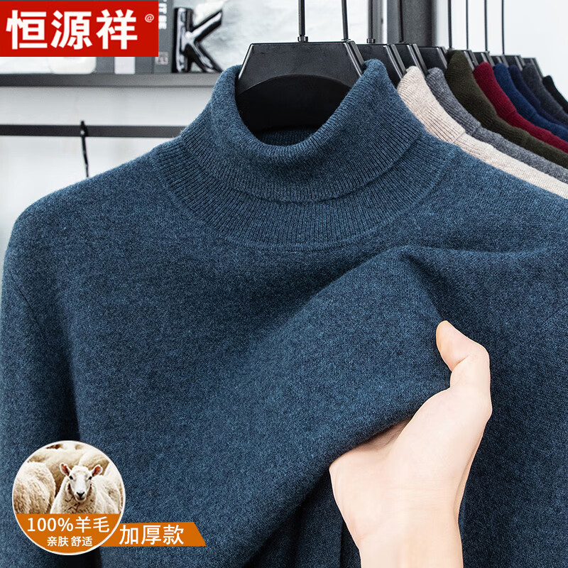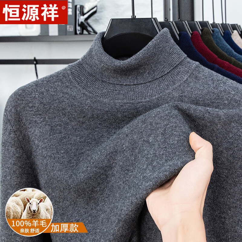 Hengyuanxiang autumn and winter pure woolen sweater for men, thickened and warm, turnable turtleneck bottoming sweater, pullover sweater for men, turtleneck - starry night gray L 170 recommended 120-135 Jin Jin equals 0.5 kg