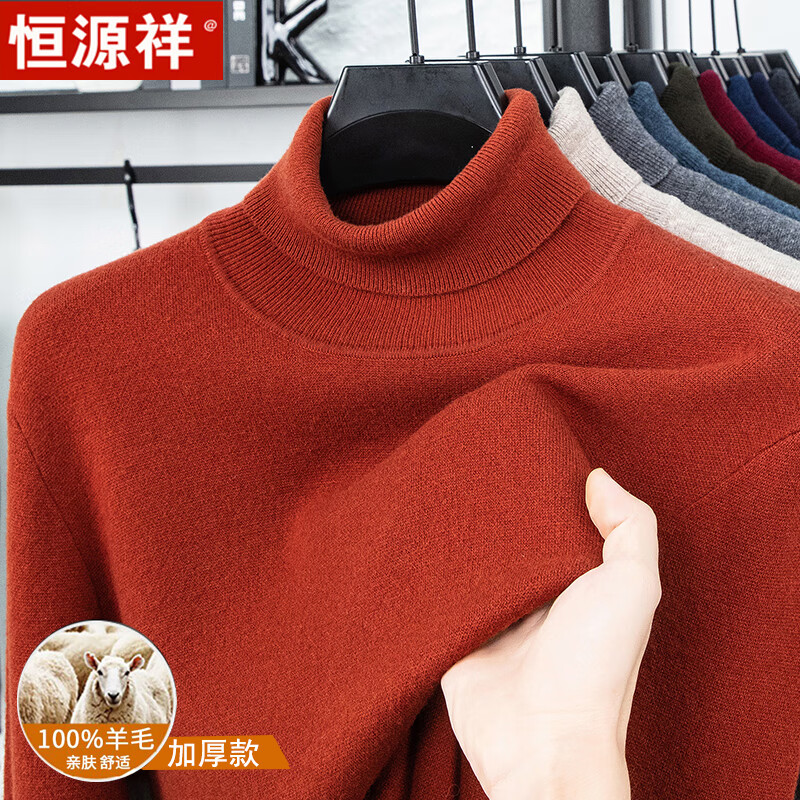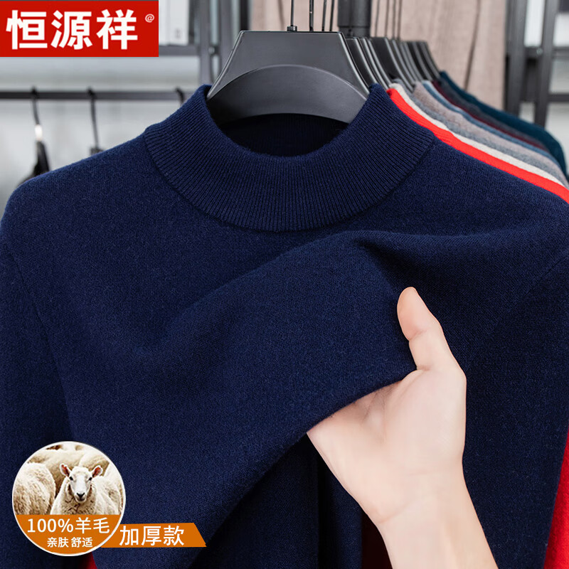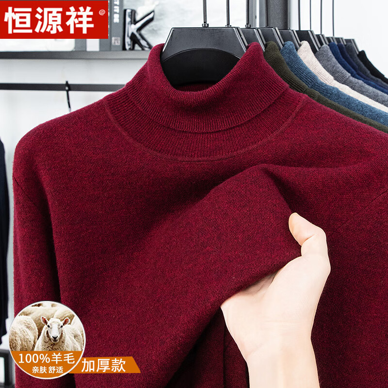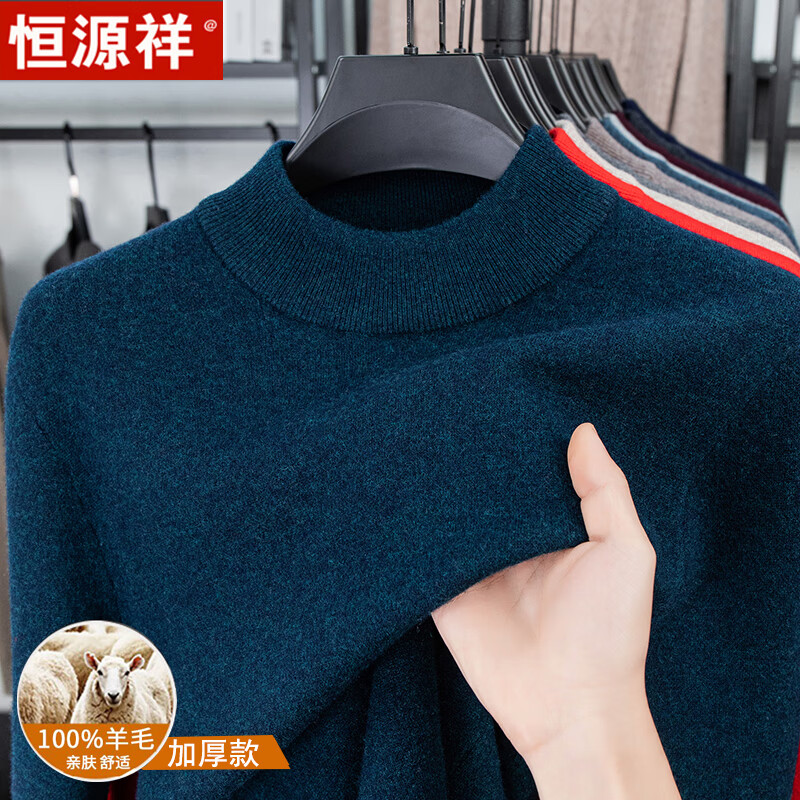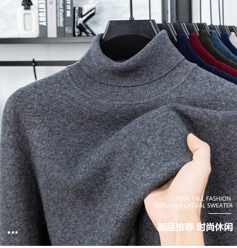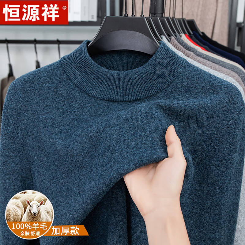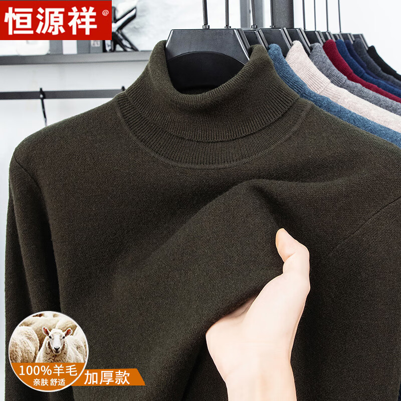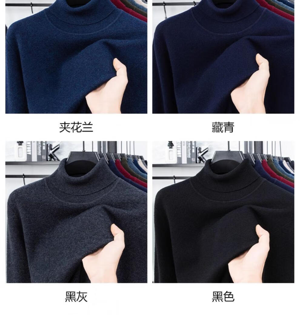 Hengyuanxiang autumn and winter pure woolen sweater for men, thickened and warm, turnable turtleneck bottoming sweater, pullover sweater for men, turtleneck - starry night gray L 170 recommended 120-135 Jin Jin equals 0.5 kg