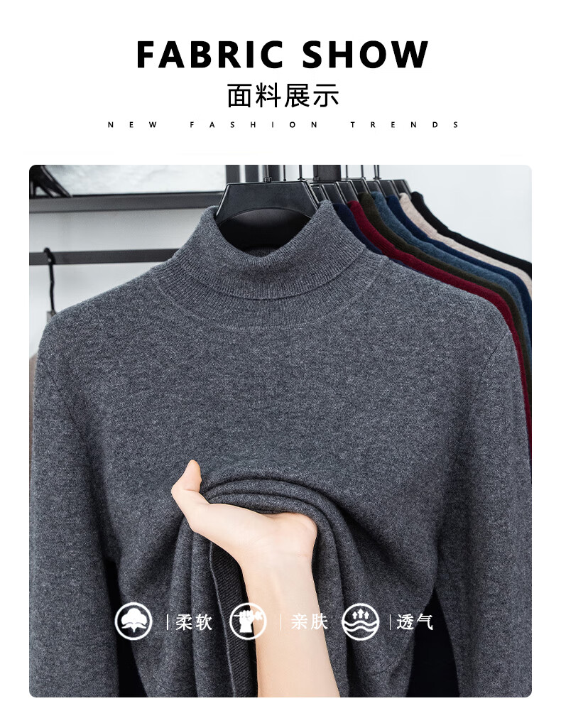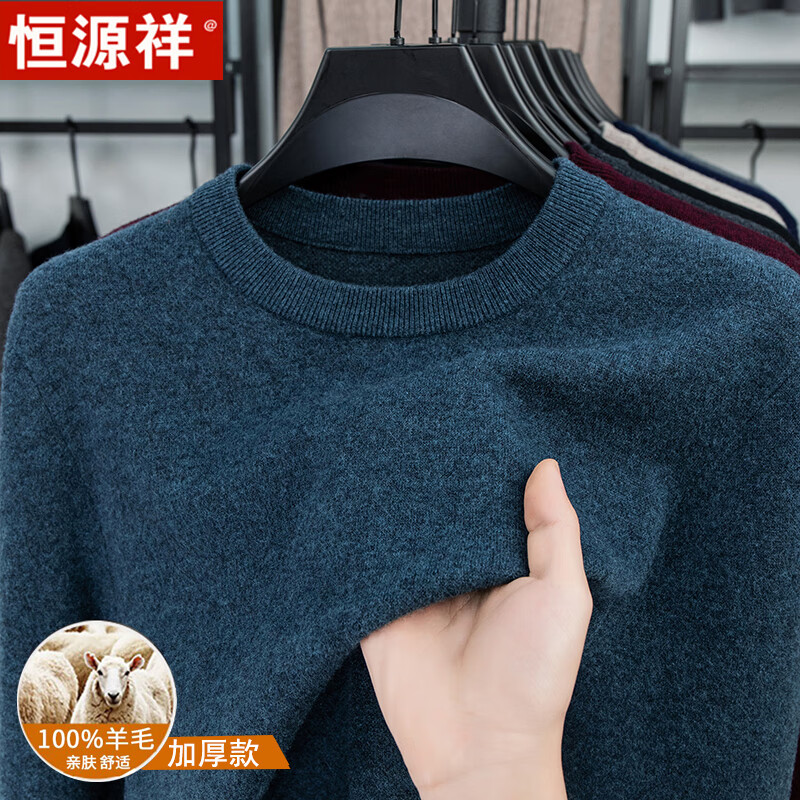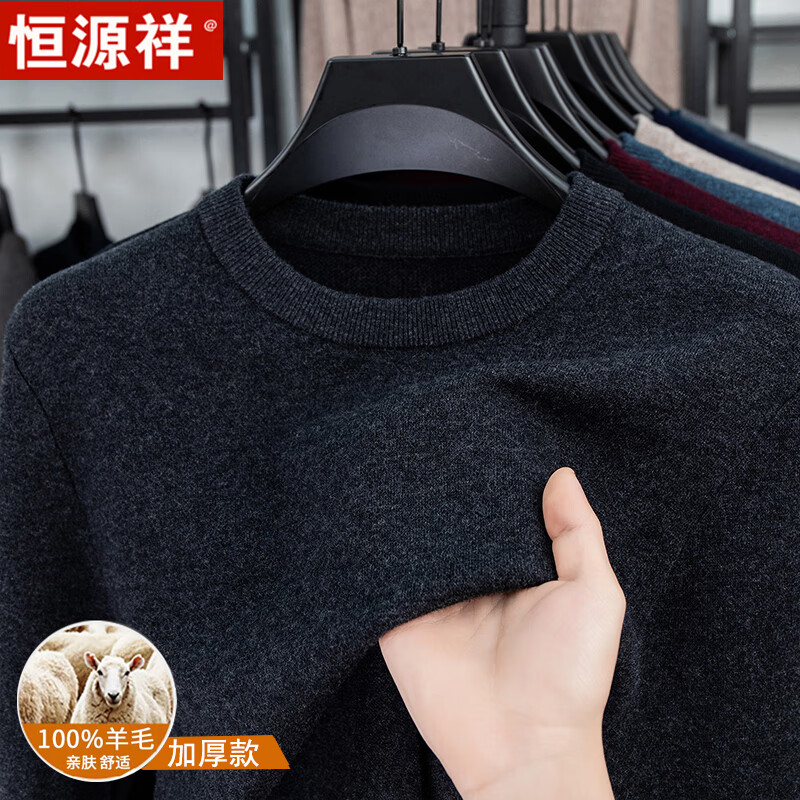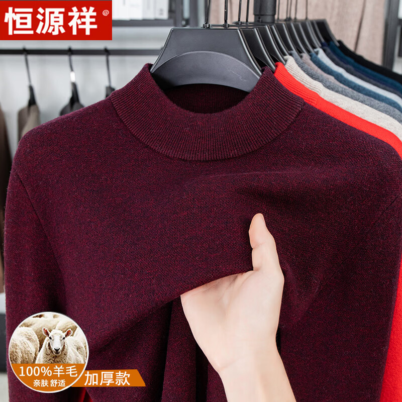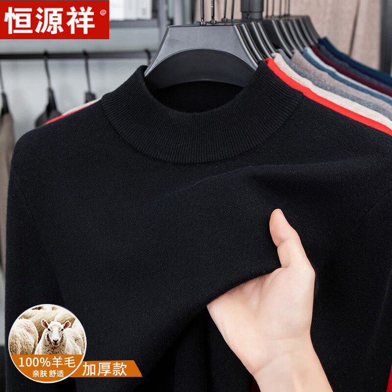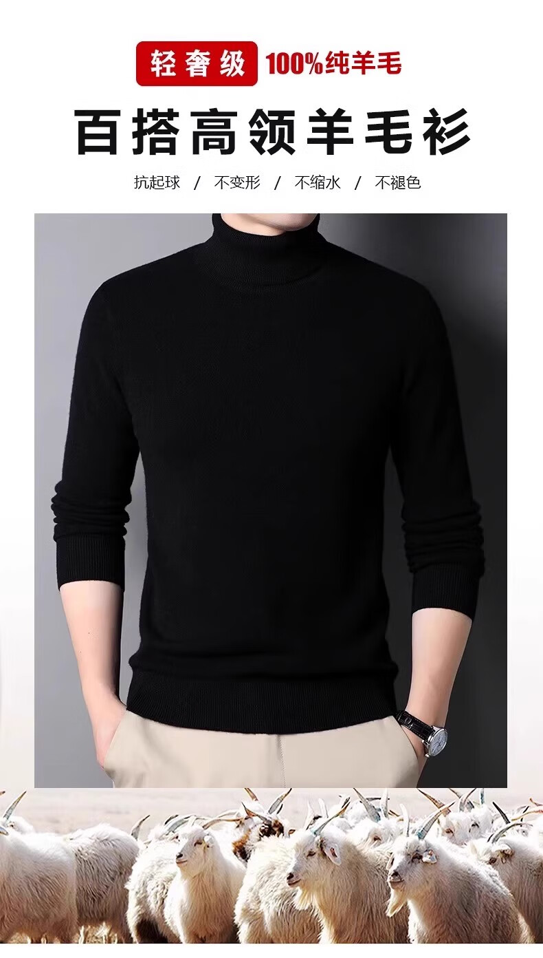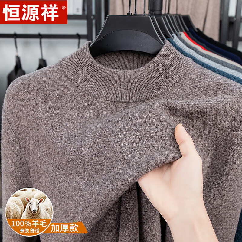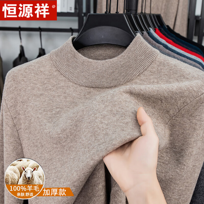 Hengyuanxiang autumn and winter pure woolen sweater for men, thickened and warm, turnable turtleneck bottoming sweater, pullover sweater for men, turtleneck - starry night gray L 170 recommended 120-135 Jin Jin equals 0.5 kg