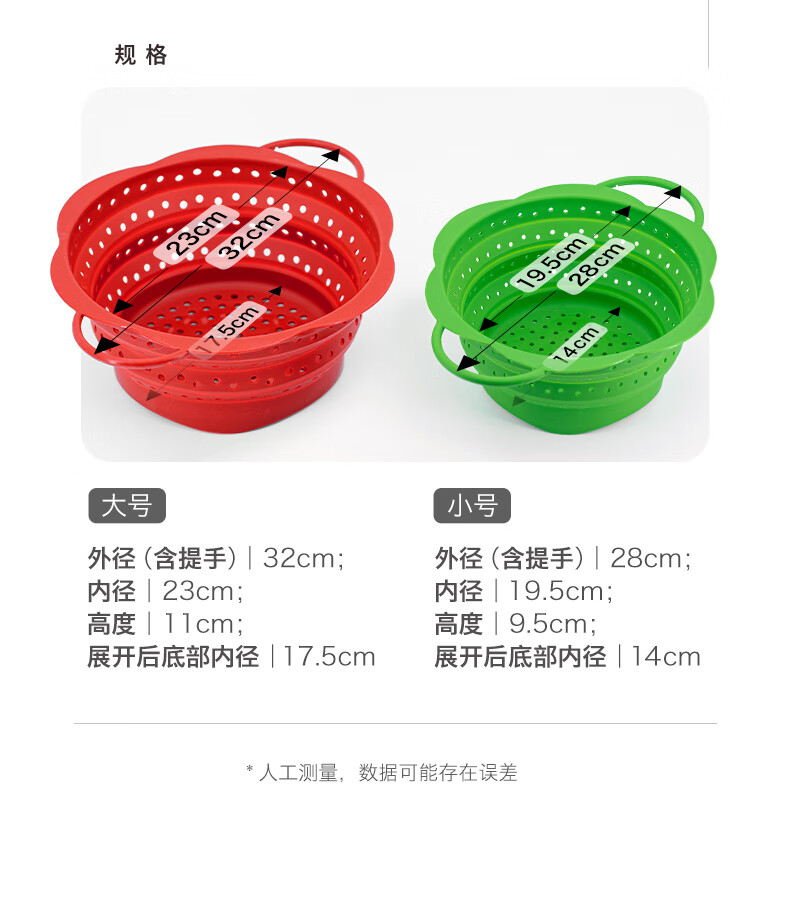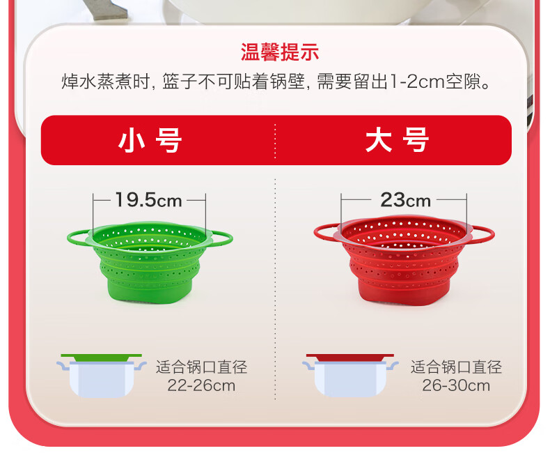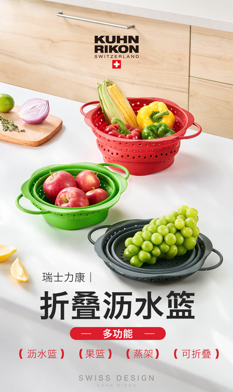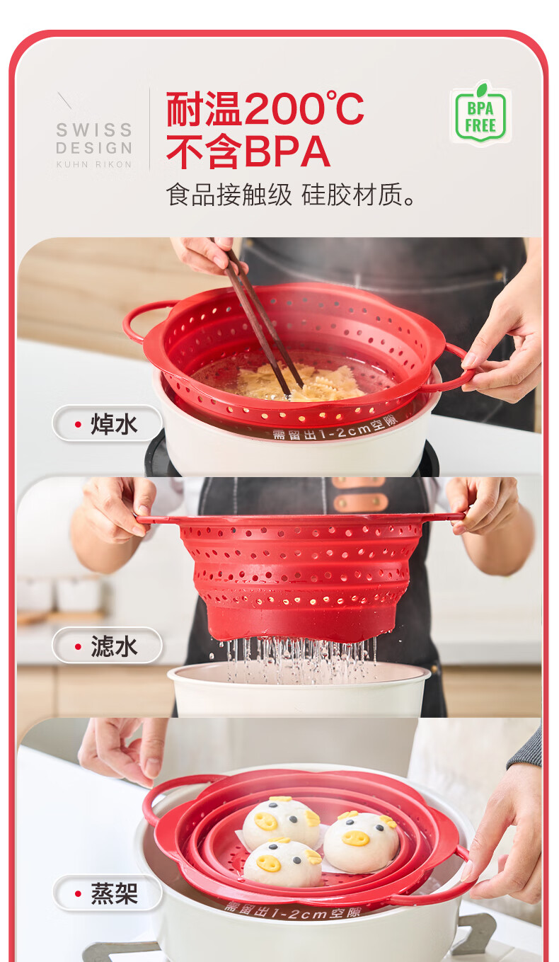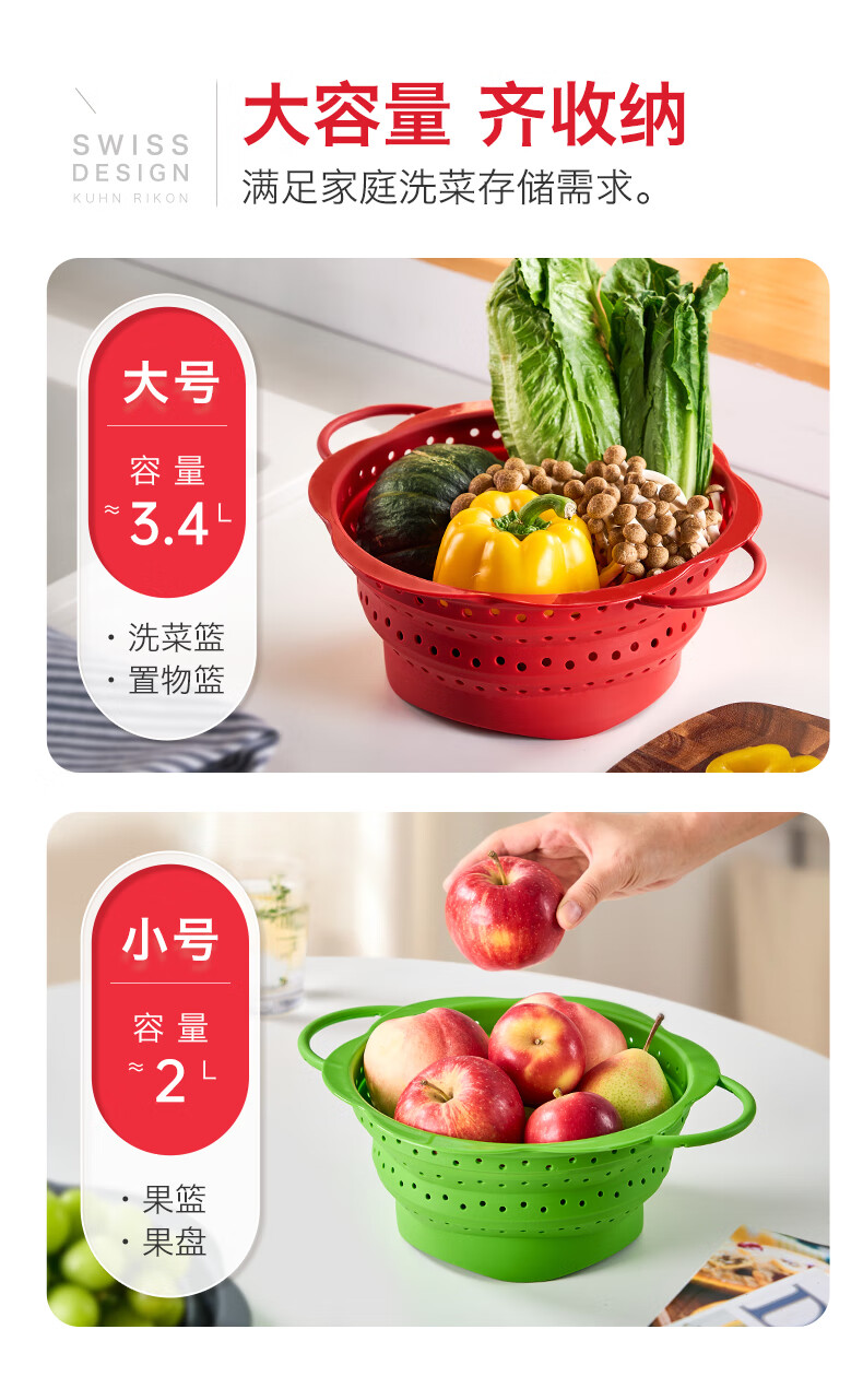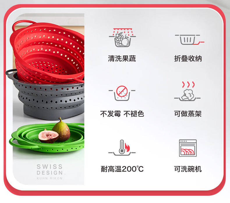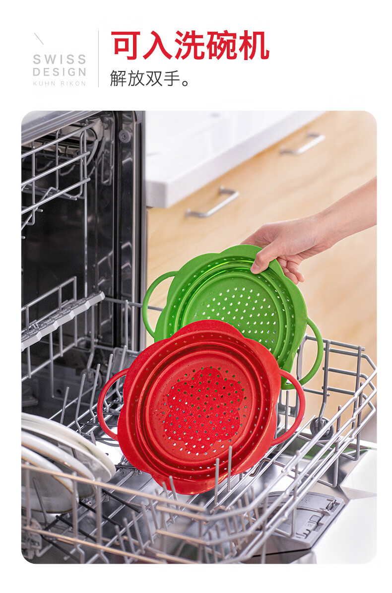 Swiss Likang folding silicone drain basket vegetable basket kitchen vegetable and fruit vegetable basin drain basket high temperature resistant food grade red large dishwasher
