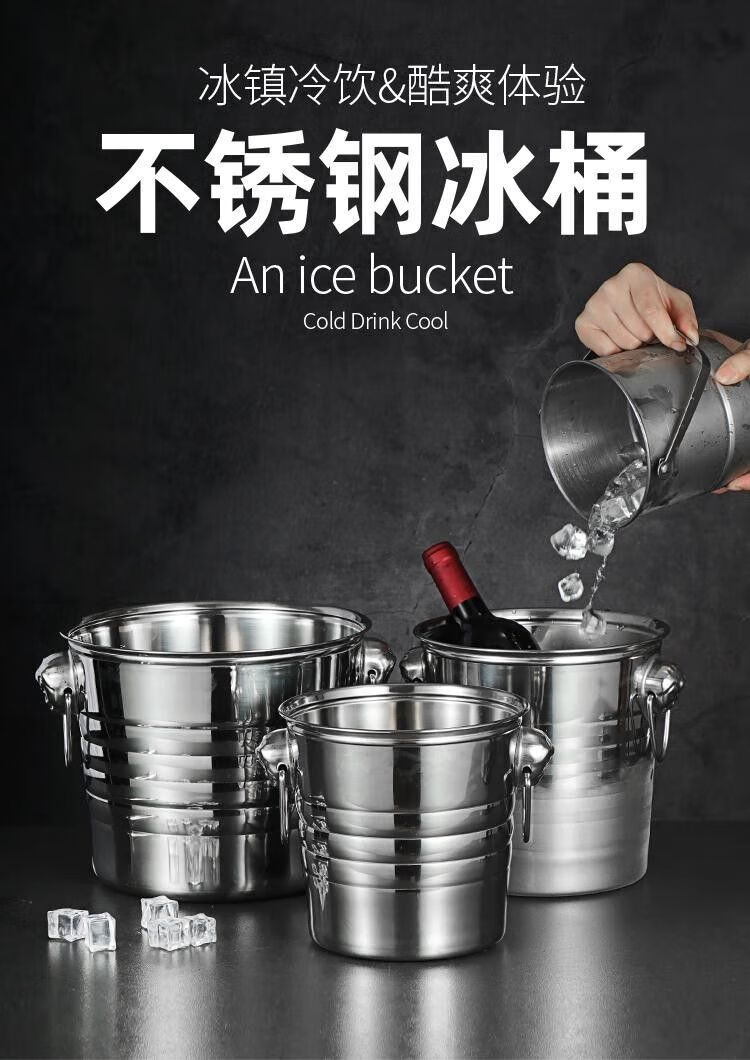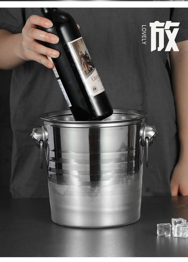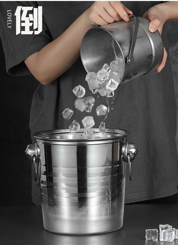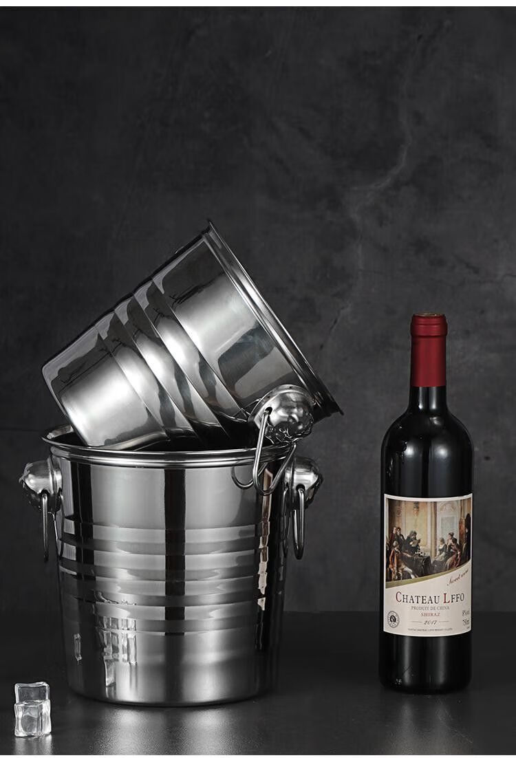 Chaosihui stainless steel tiger head ice bucket KTV ice bucket commercial frozen wine bucket champagne bucket ice bucket red wine ice bucket bar use ice bucket (1L) ice clip suitable for placing ice cubes