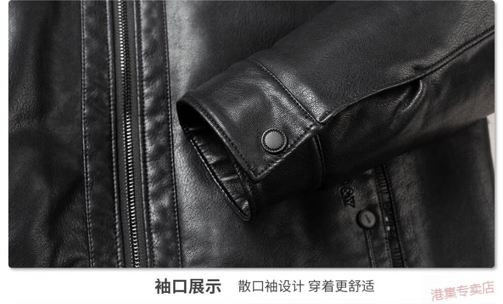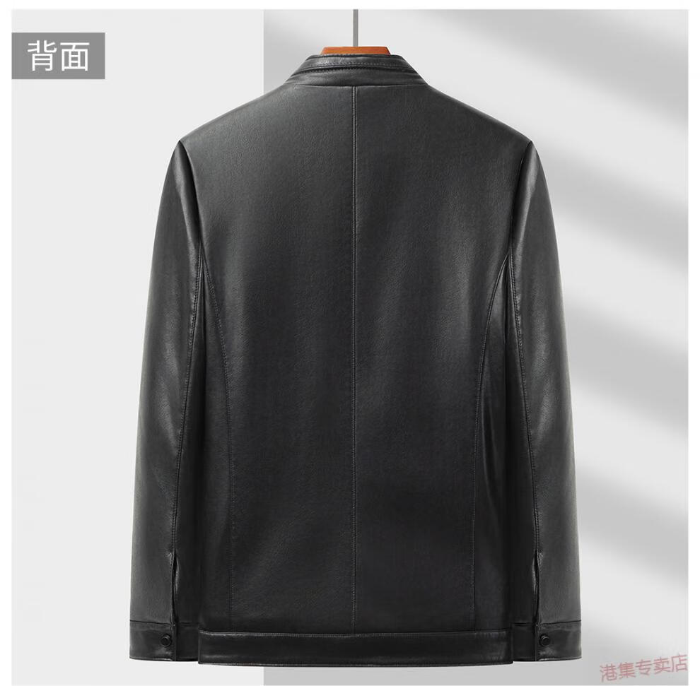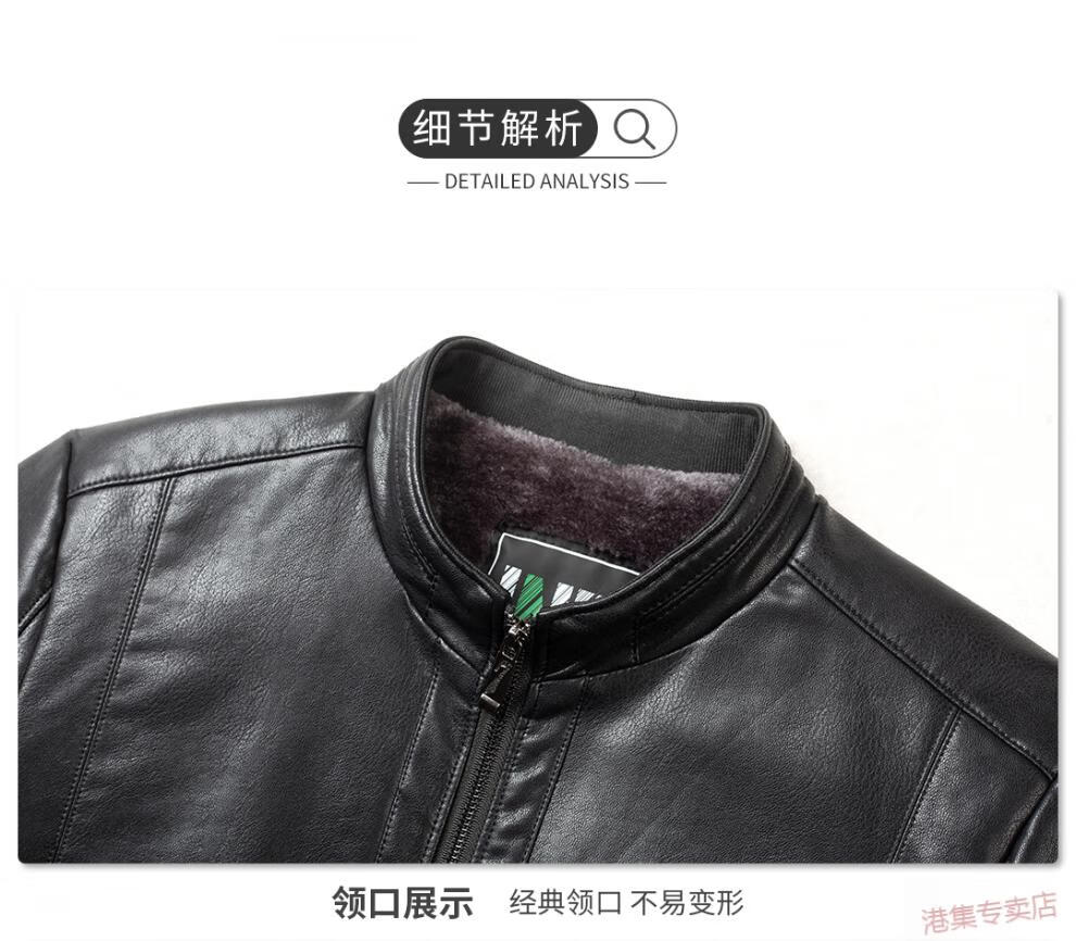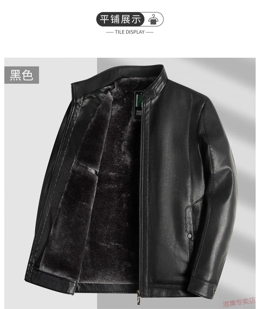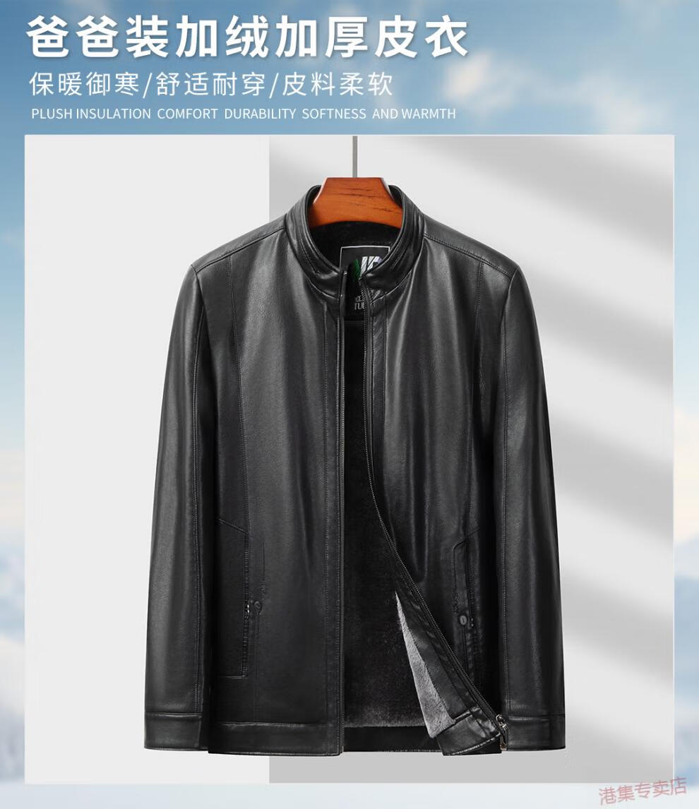 JEEP SPIRIT spring, autumn and winter middle-aged men's stand-up collar leather jacket, middle-aged and elderly dad's jacket, velvet and thickened grandpa leather jacket, black, velvet, thickened L 175 120Jin Jin is equal to 0.5 kg within
