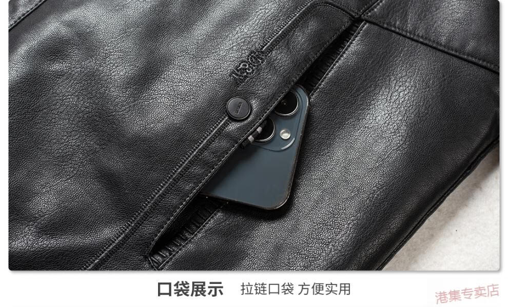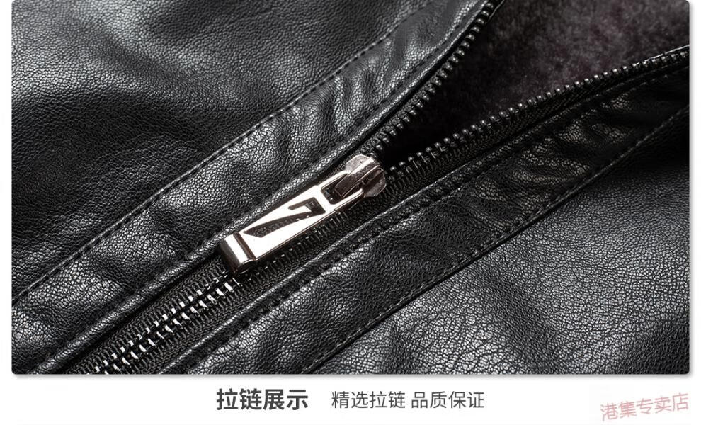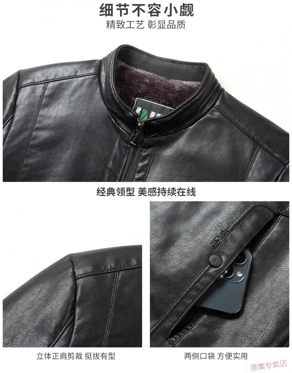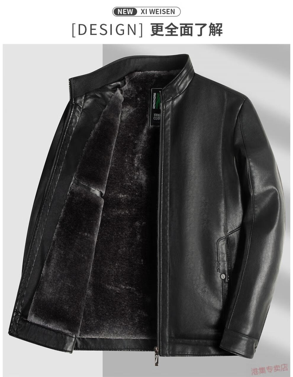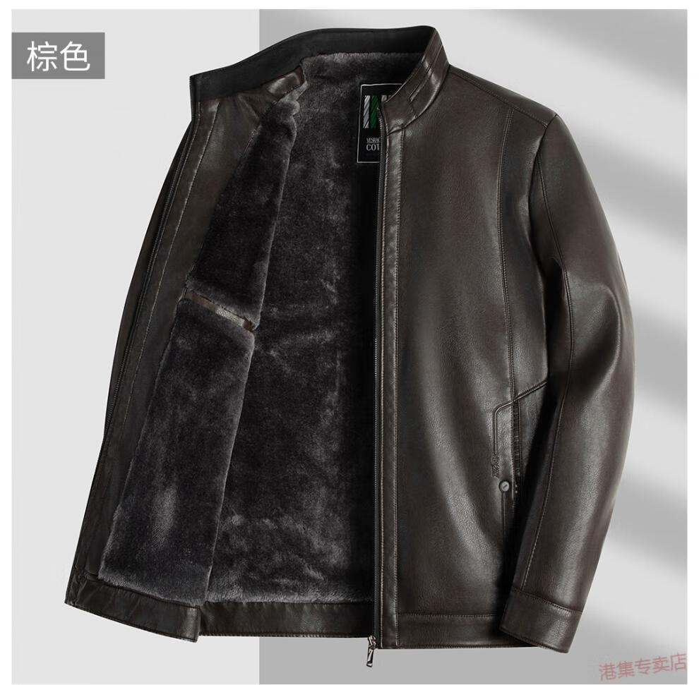 JEEP SPIRIT spring, autumn and winter middle-aged men's stand-up collar leather jacket, middle-aged and elderly dad's jacket, velvet and thickened grandpa leather jacket, black, velvet, thickened L 175 120Jin Jin is equal to 0.5 kg within
