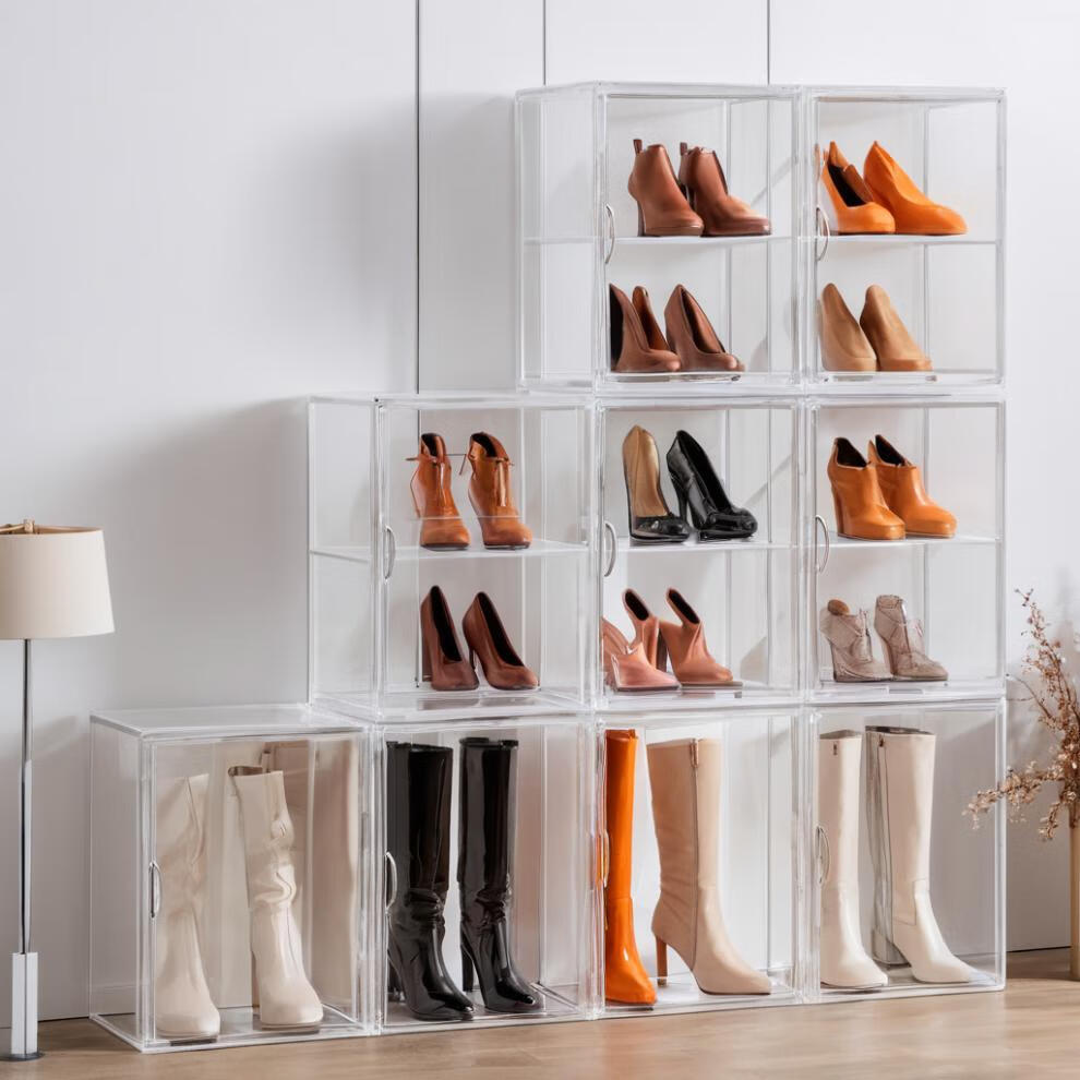 Japan Unprinted Shoe Cabinet Acrylic Shoe Box Transparent Home Door High Heel Rack Storage Artifact Long Boot Storage 1*1*1cm Default Value Default Value Fully Transparent Front Opening 6 pcs 6 pcs