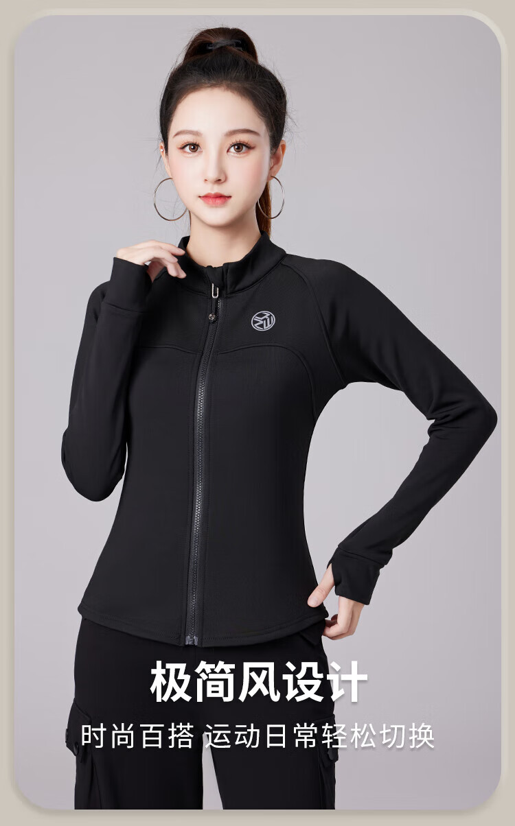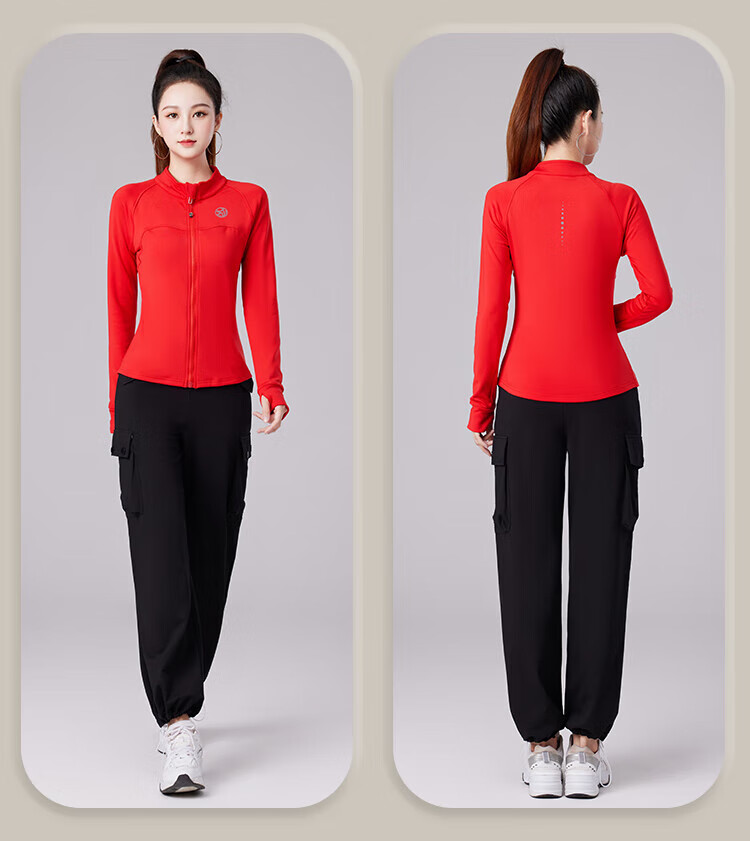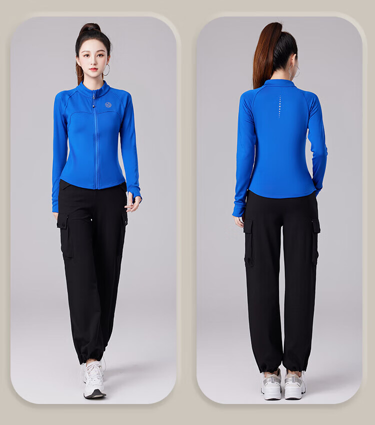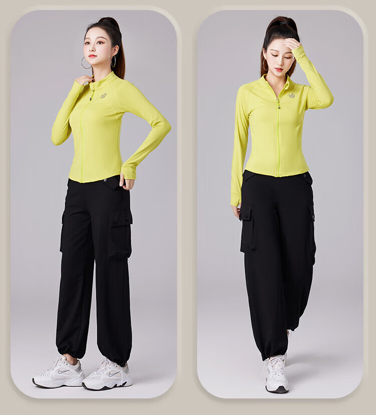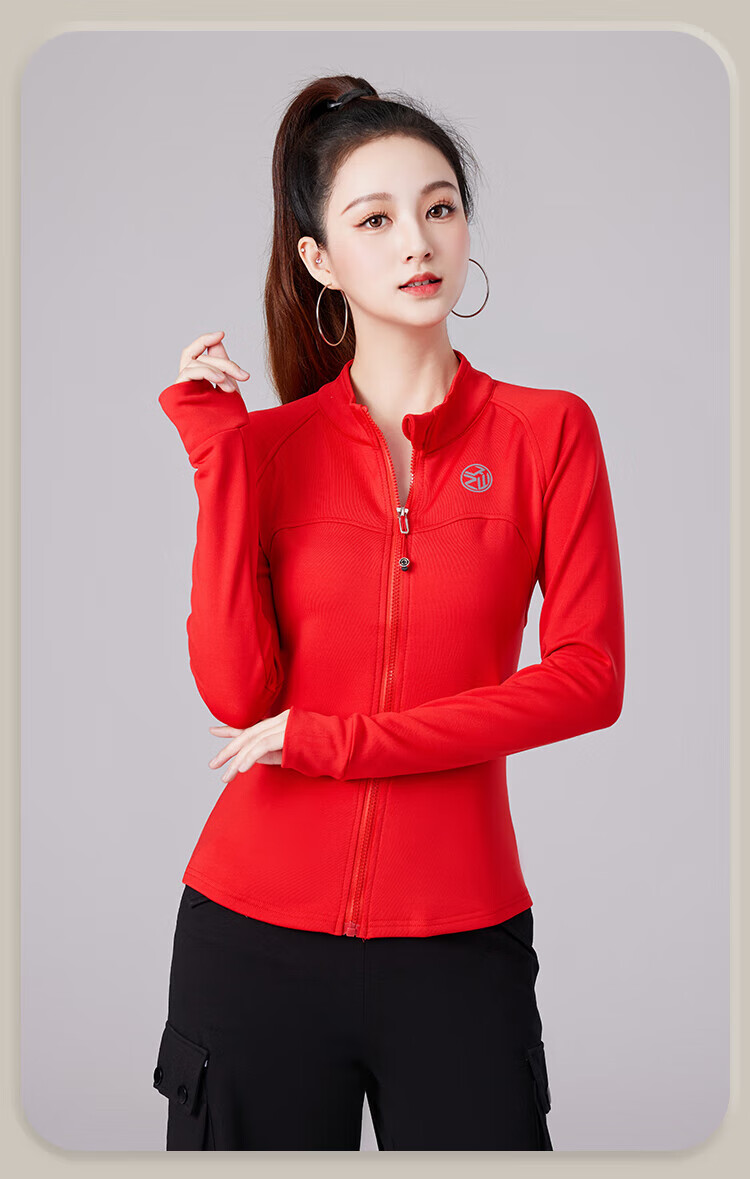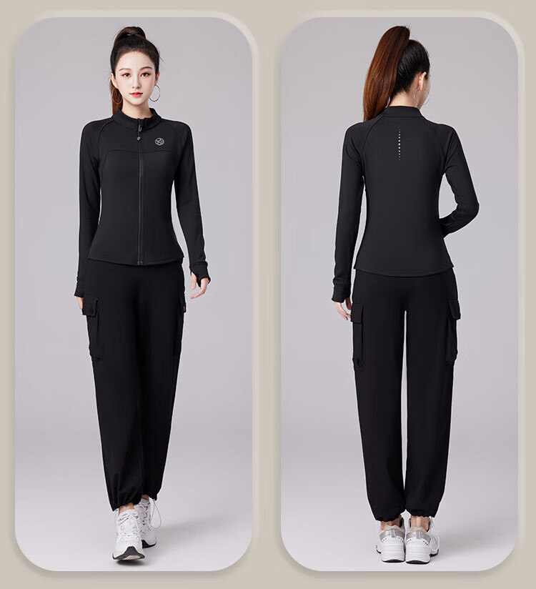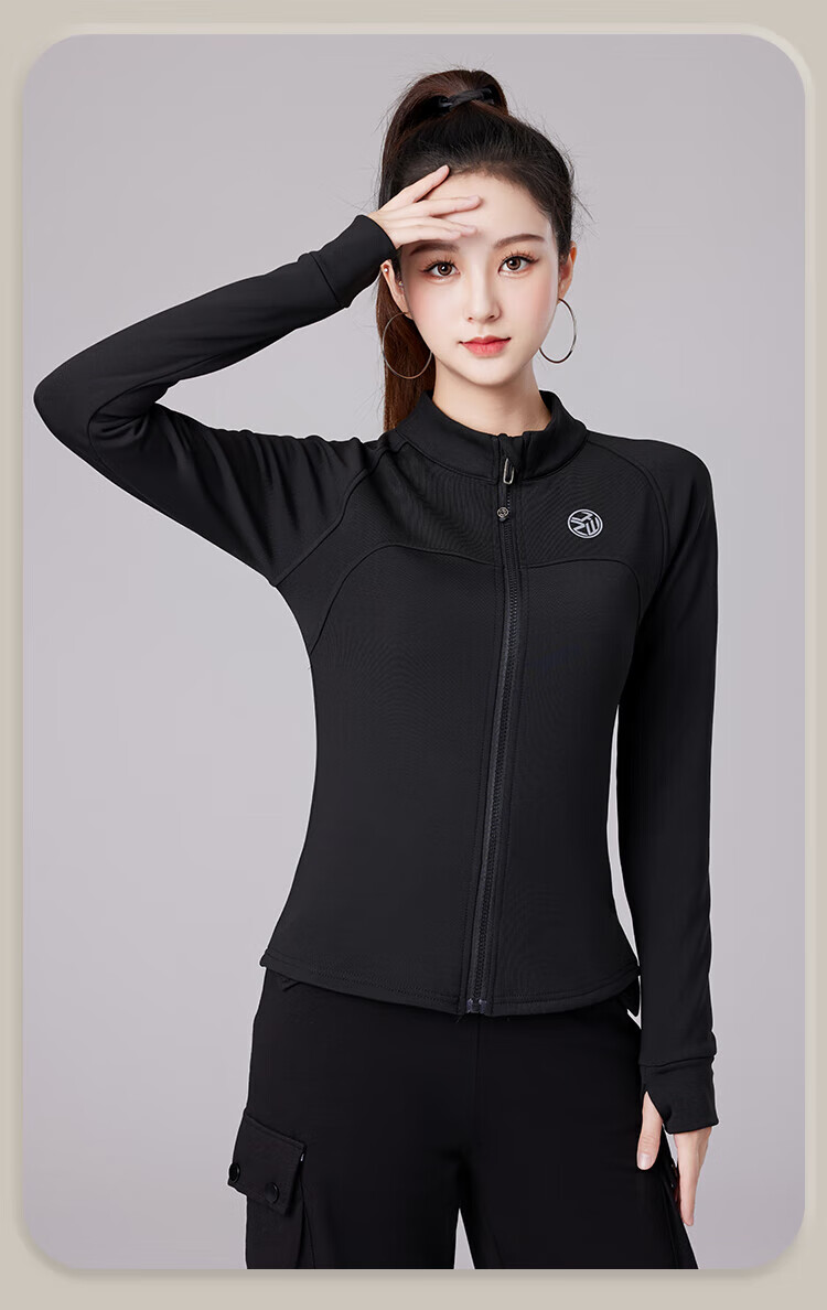 He Jiagong square dance clothing women's spring and autumn square dance aerobics long-sleeved tops women's quick-drying sports running aerobics performance black plus velvet M