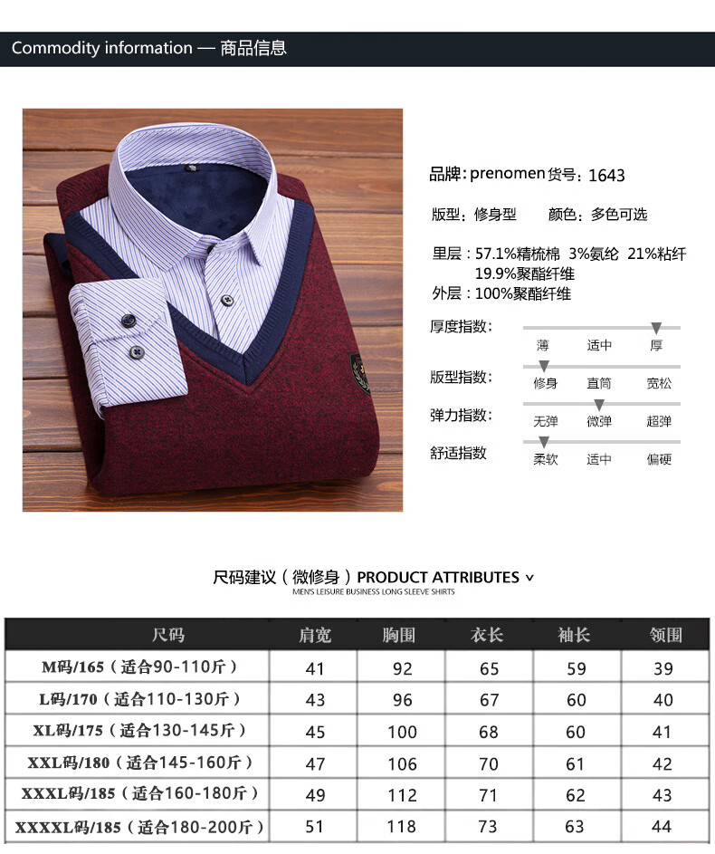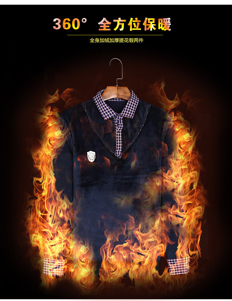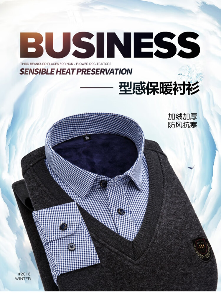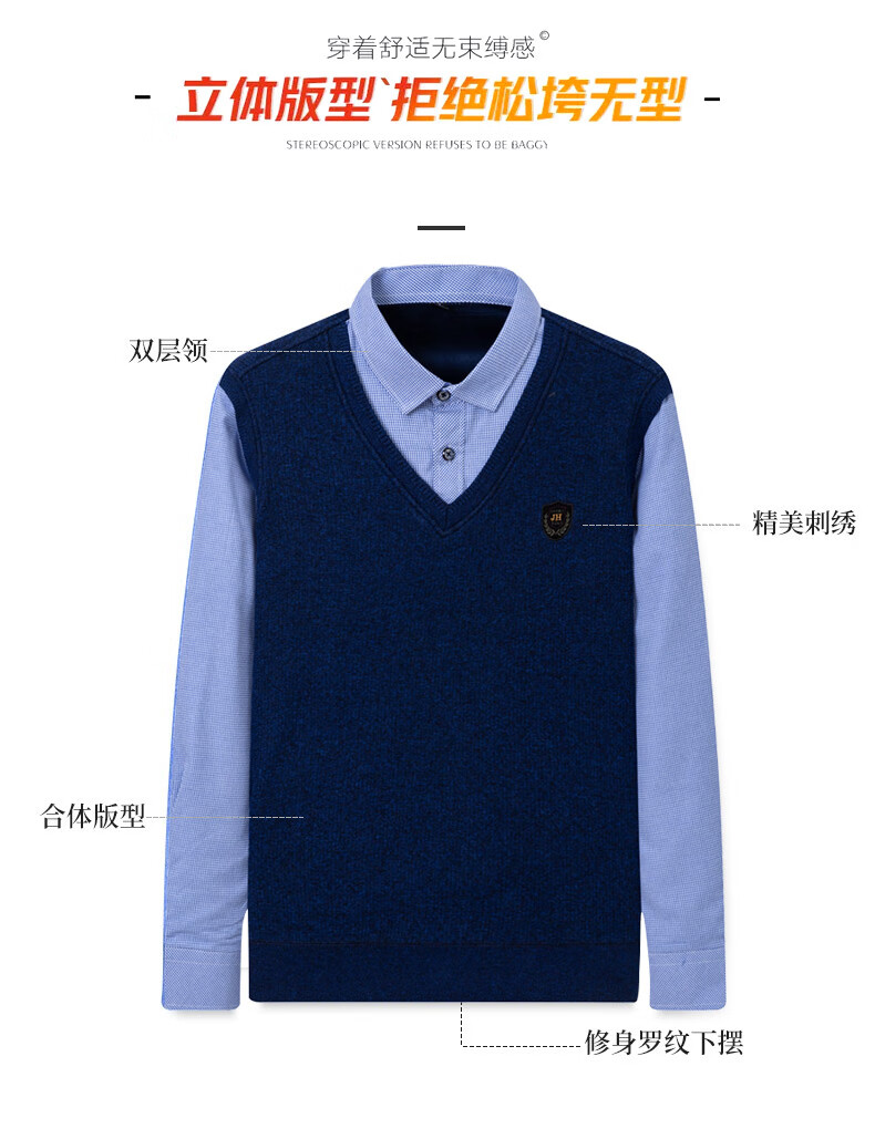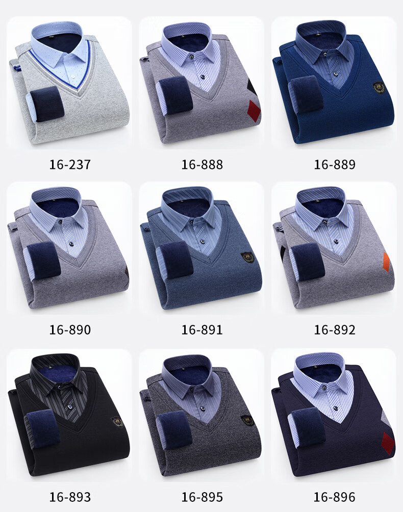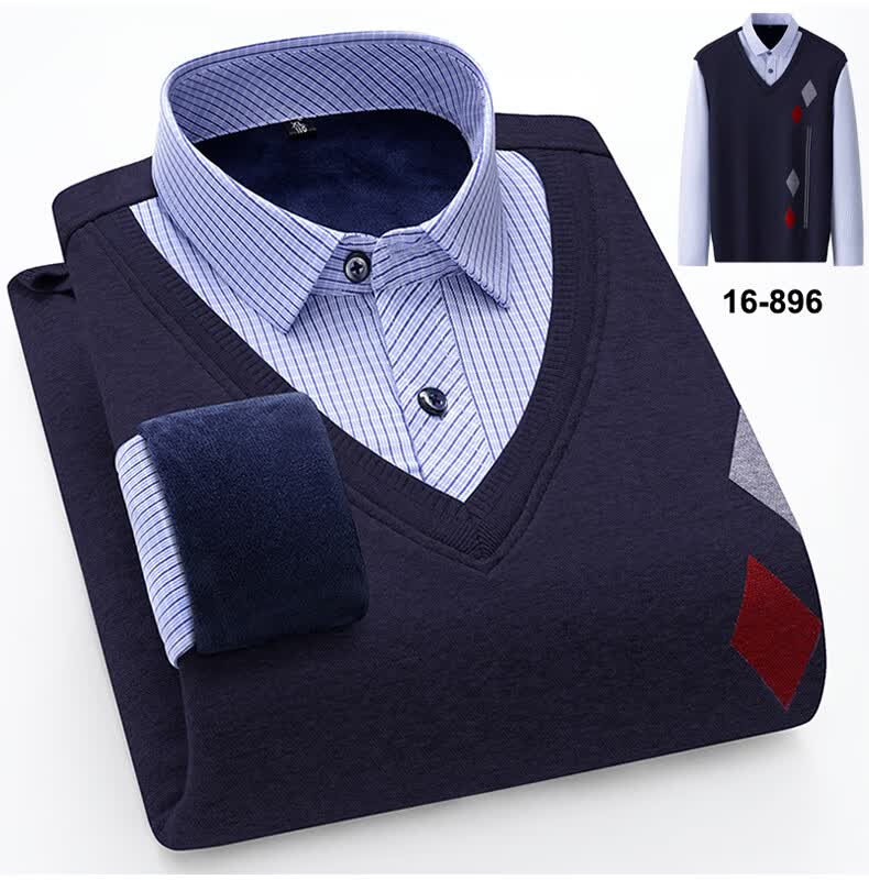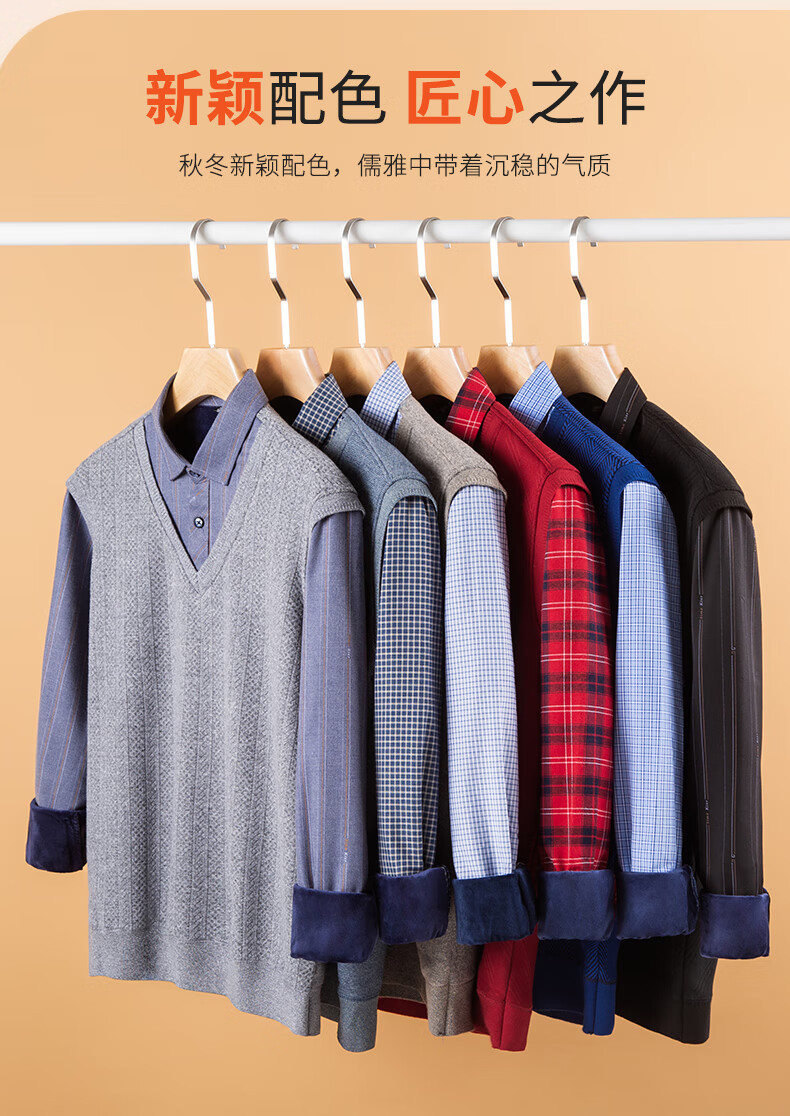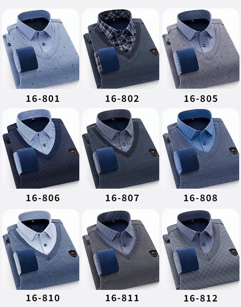 罗蒙(ROMON)冬季男士假两件套保暖衬衫领男长袖加厚加绒中年父亲装针织衫毛衣 灰色 1613 XL 【加绒加厚】