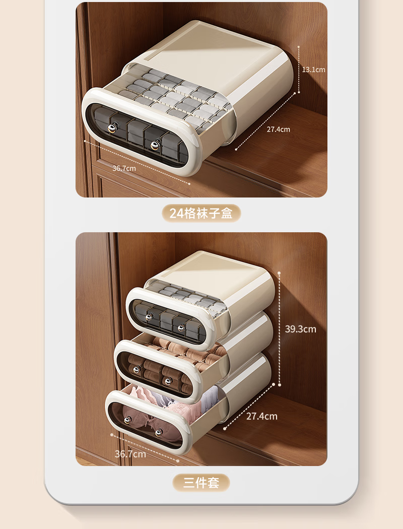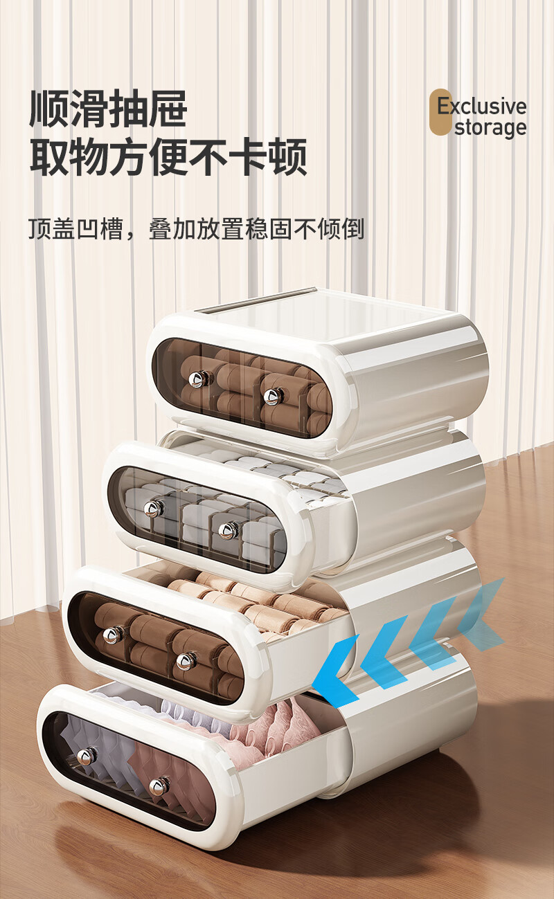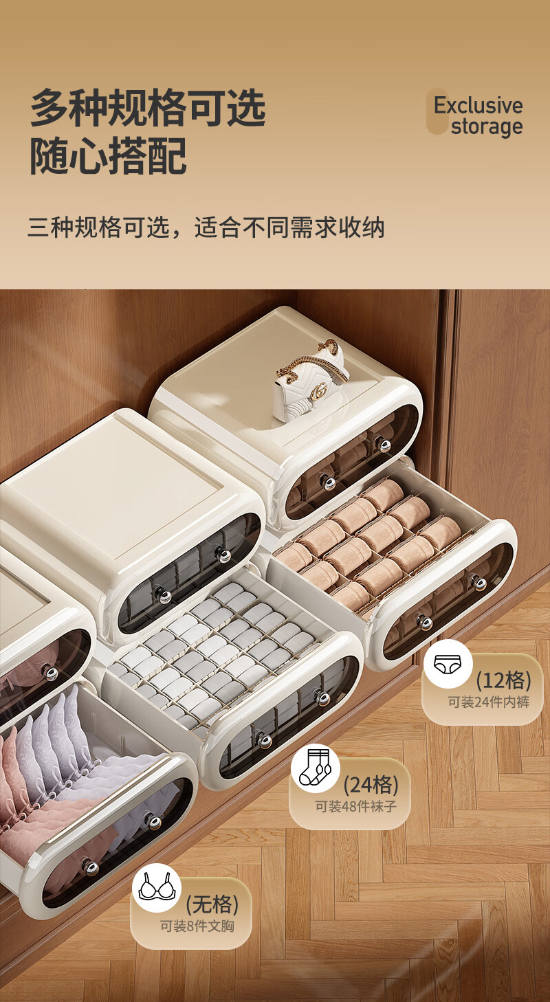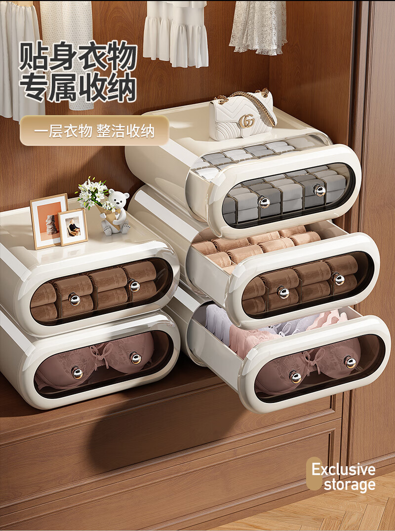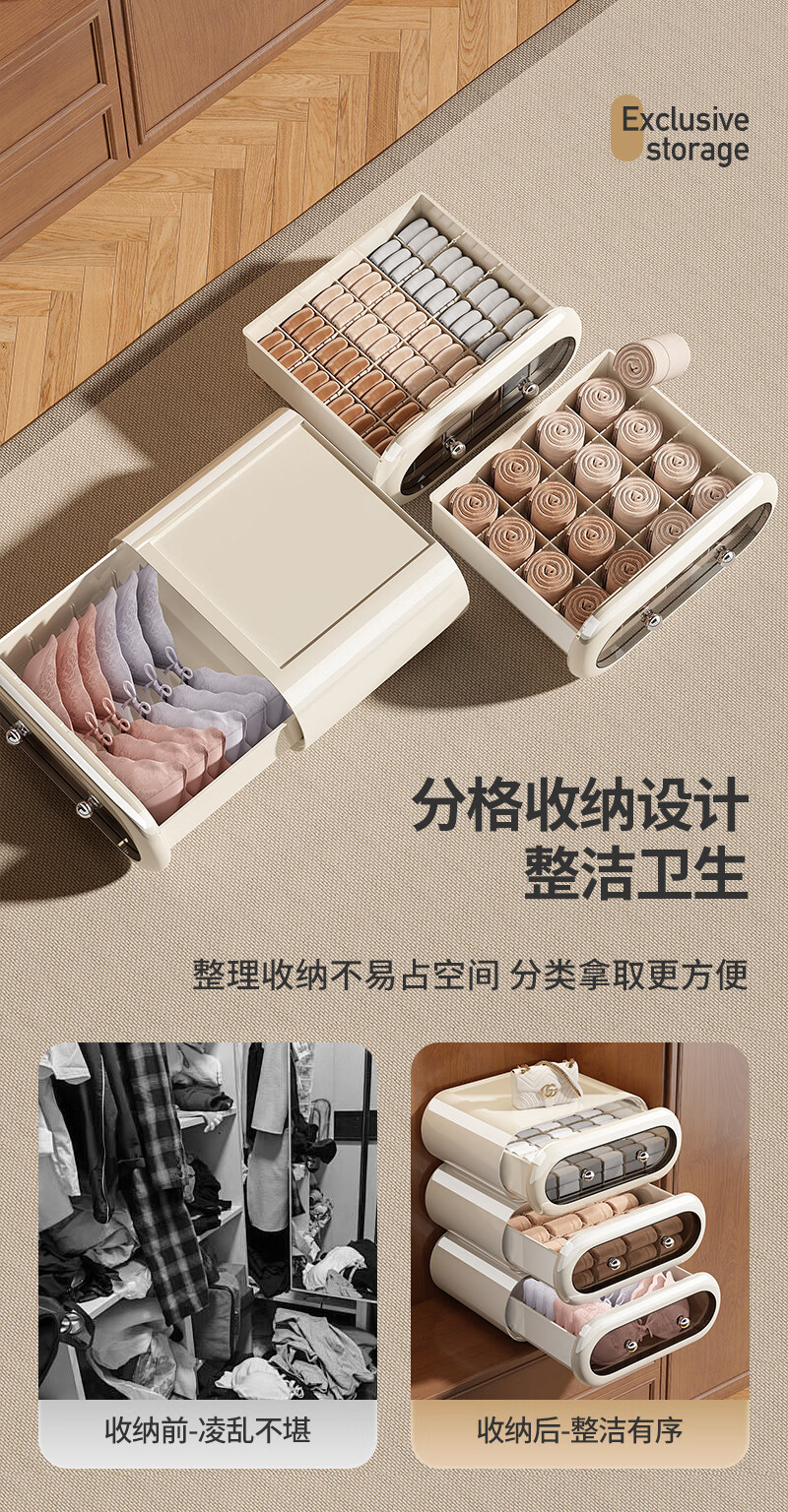 Japanese unprinted underwear storage box, socks, home drawer-type three-in-one organizing box, intimate clothing compartments 1*1*1cm Default value Default value Underwear box without compartments, classic black, smooth pull-out 1 piece