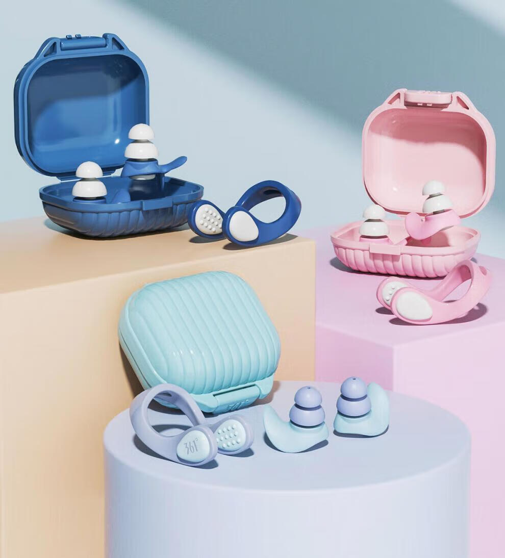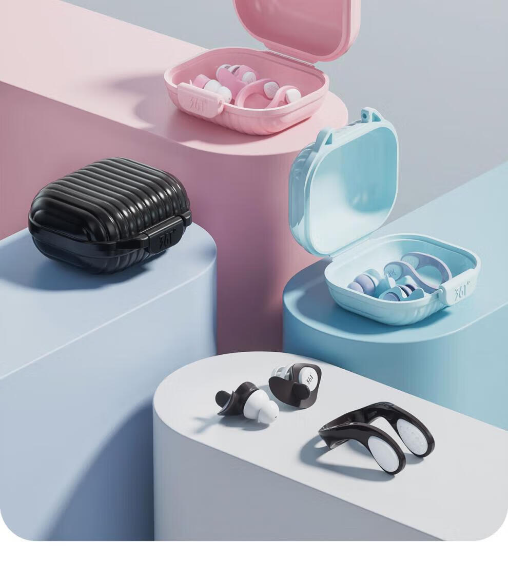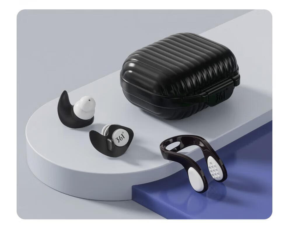 Universal children's earplugs, universal 361-degree swimming earplugs that block ears, prevent water ingress, and soundproof artifact nose clip set, silent black, nose clip earplugs + swimming goggles