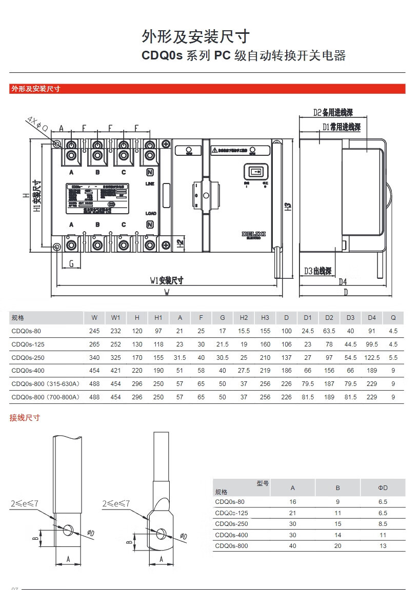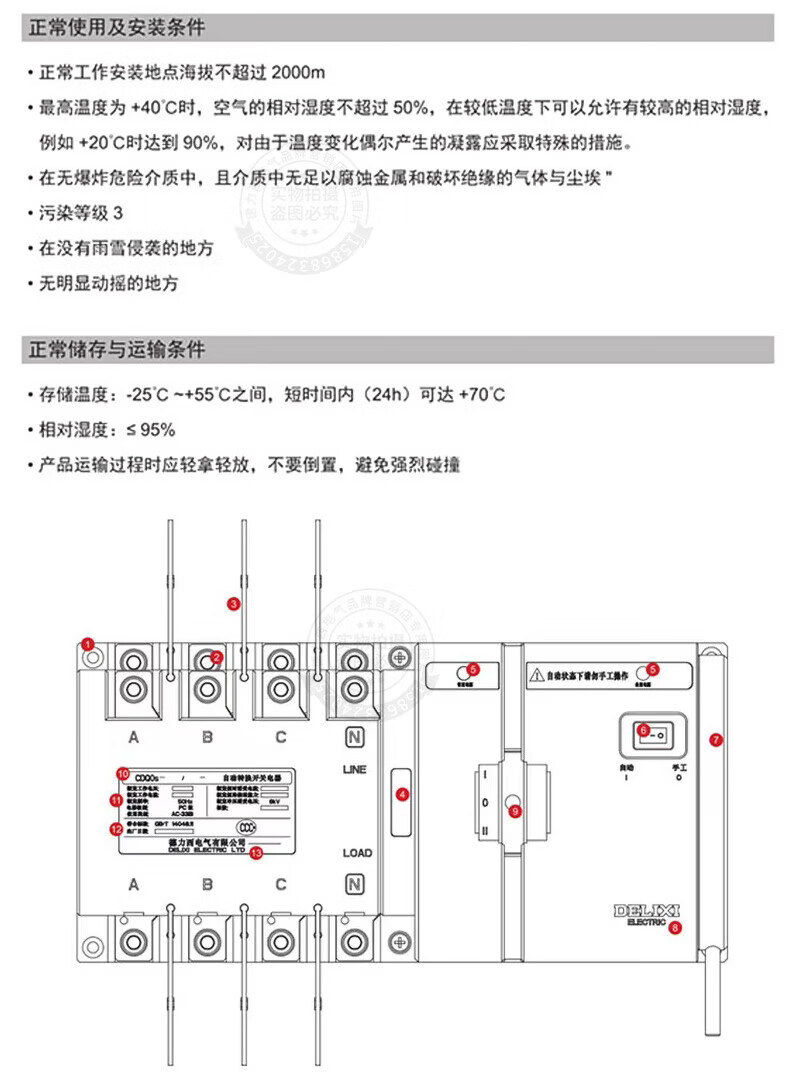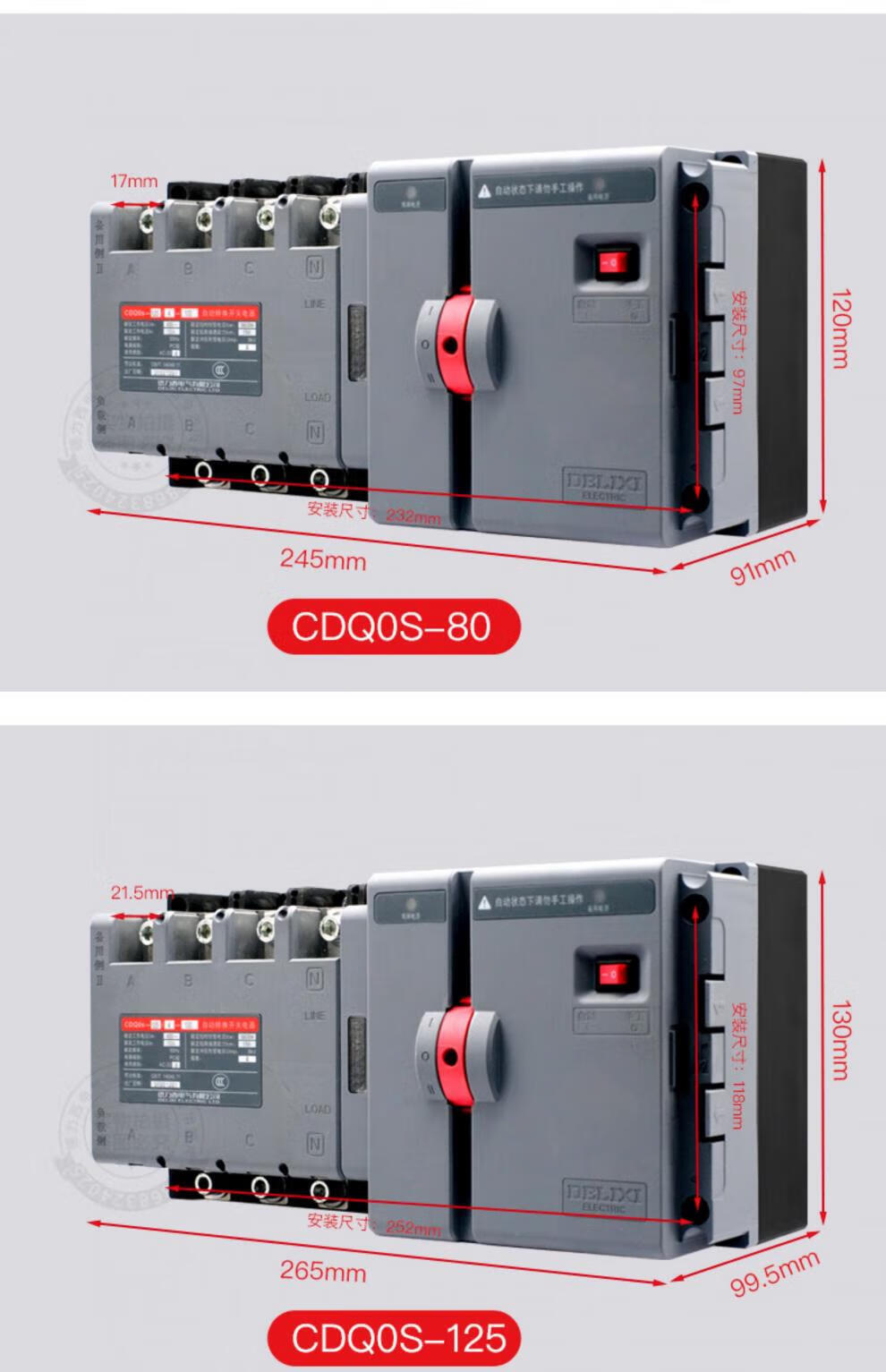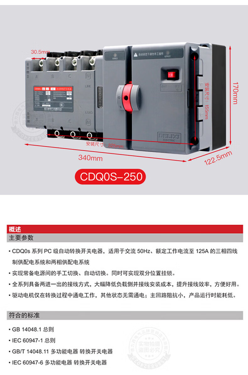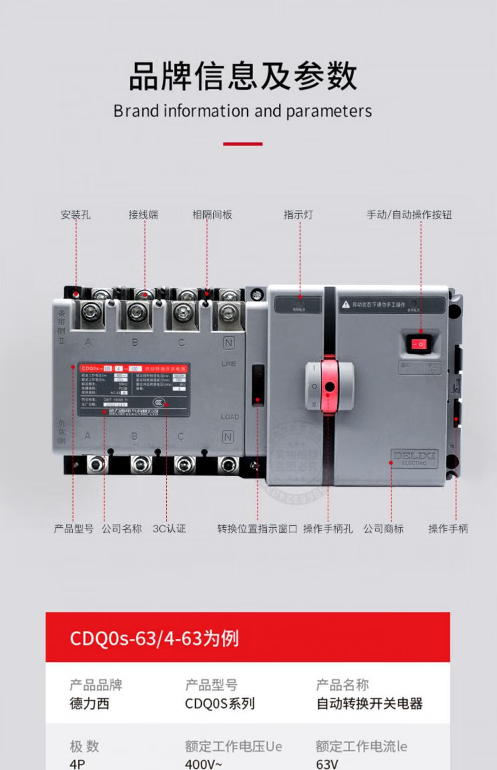 Delixi dual power automatic transfer switch isolation type switching PC level two in and one out 2P3P4P63A 800A 4p