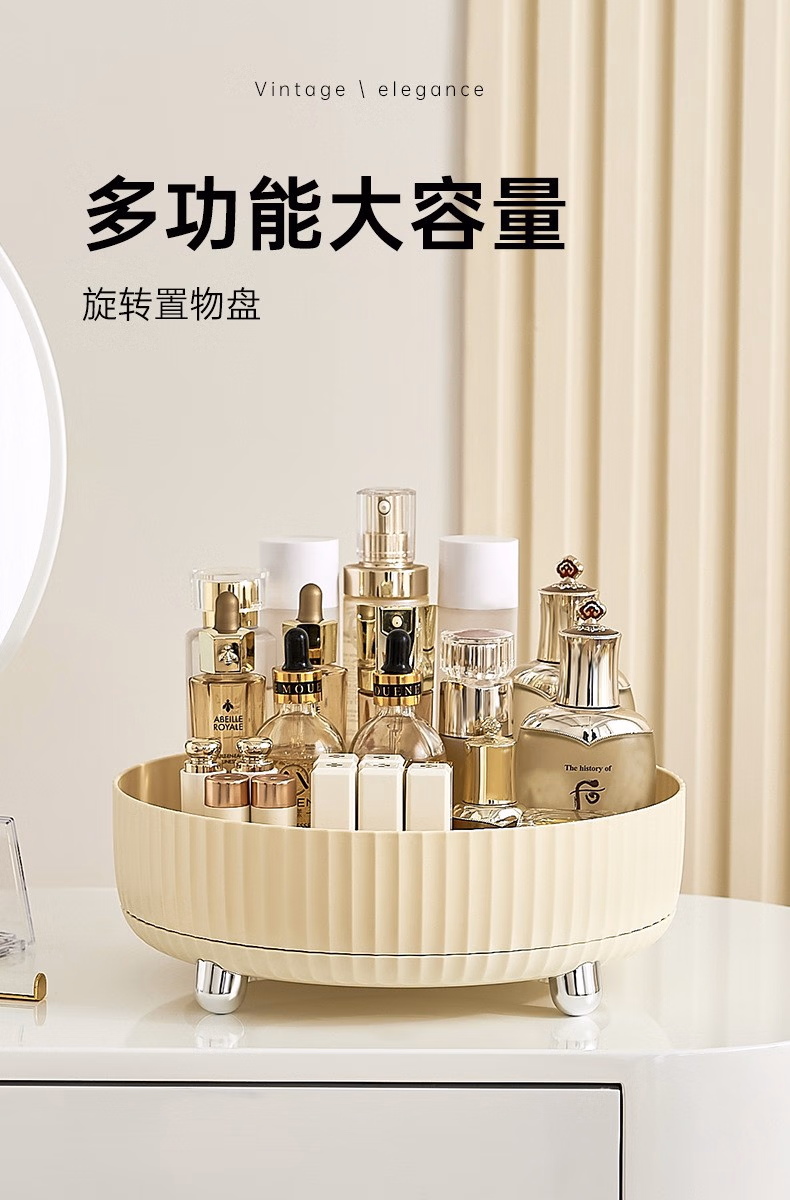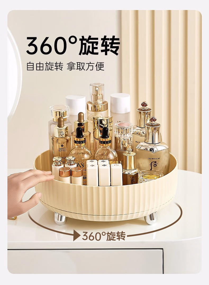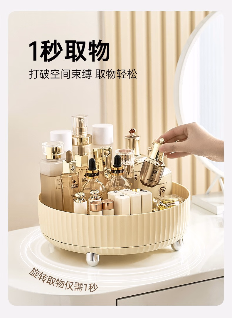 Miling cosmetics storage box household large-capacity rotatable desktop skin care products eye shadow lipstick plastic storage rack A hole cream white large size