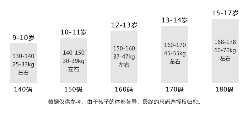 China (cm) 160-165/84-86 165-170 / 88-90 167-172 / 92-96 168-173 / 98-102 170-176 / 106-110