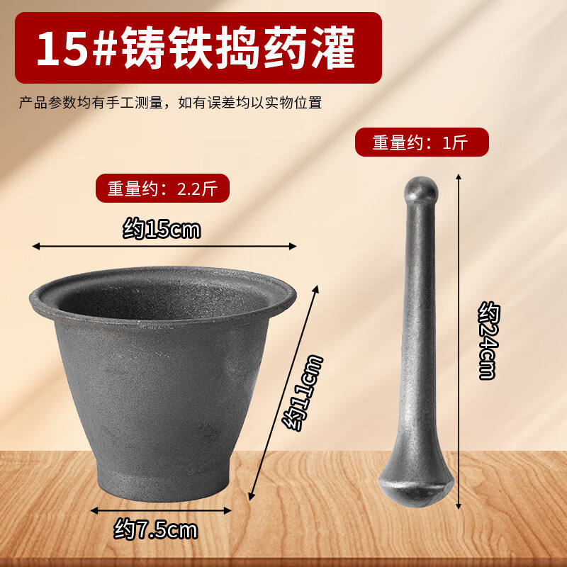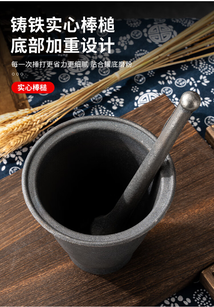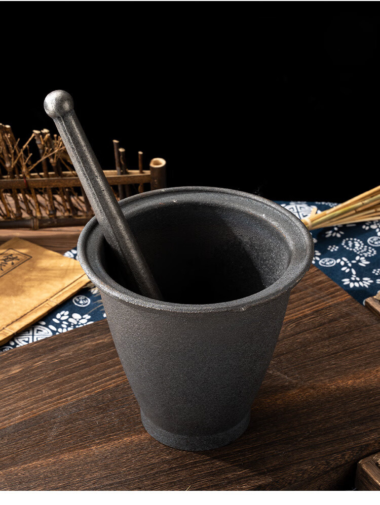 He Jiagong's old-fashioned chili pepper beating bowl, cast iron hammer, nest to nest, iron pound, Chinese medicine pound, iron pestle, mortar, medicine, cast iron thickened garlic pounding jar, extra large