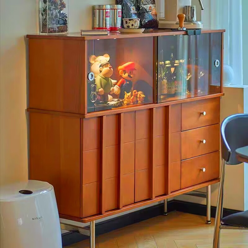 Yusenyi retro solid wood wine cabinet, antique glass cabinet, living room display cabinet, sofa side cabinet, stainless steel tea cabinet, side cabinet, antique pine wood