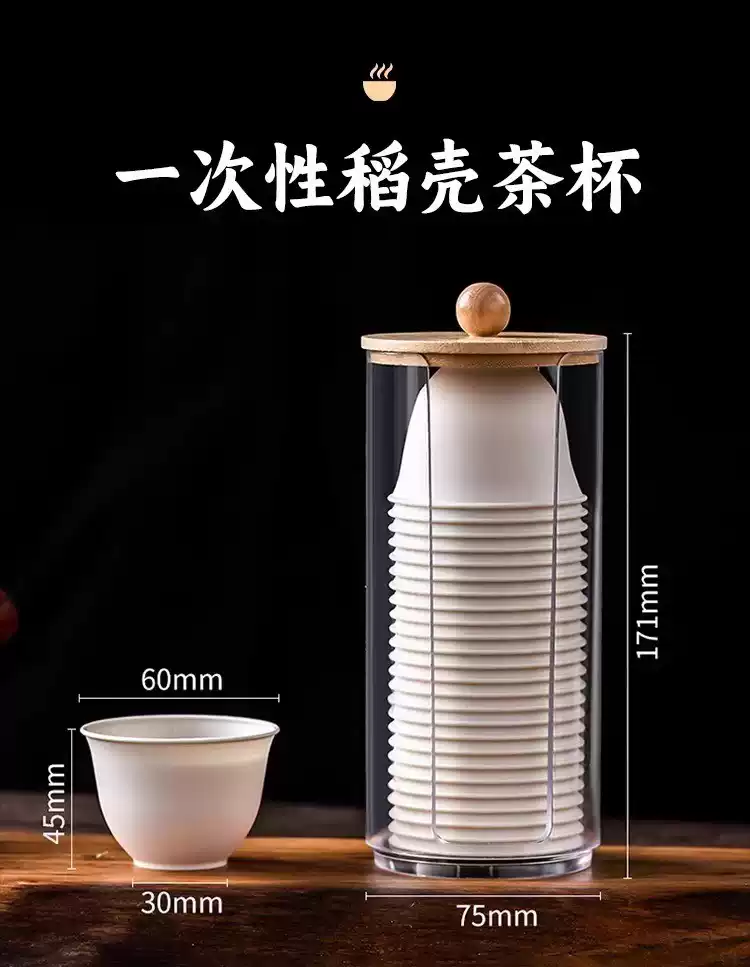 Fantasy disposable teacup rice husk kung fu tea cup thickened and high temperature resistant home travel portable tea set drinking tea cup living room 4 packs of 200 rice husk tea cups + dustproof cup holder