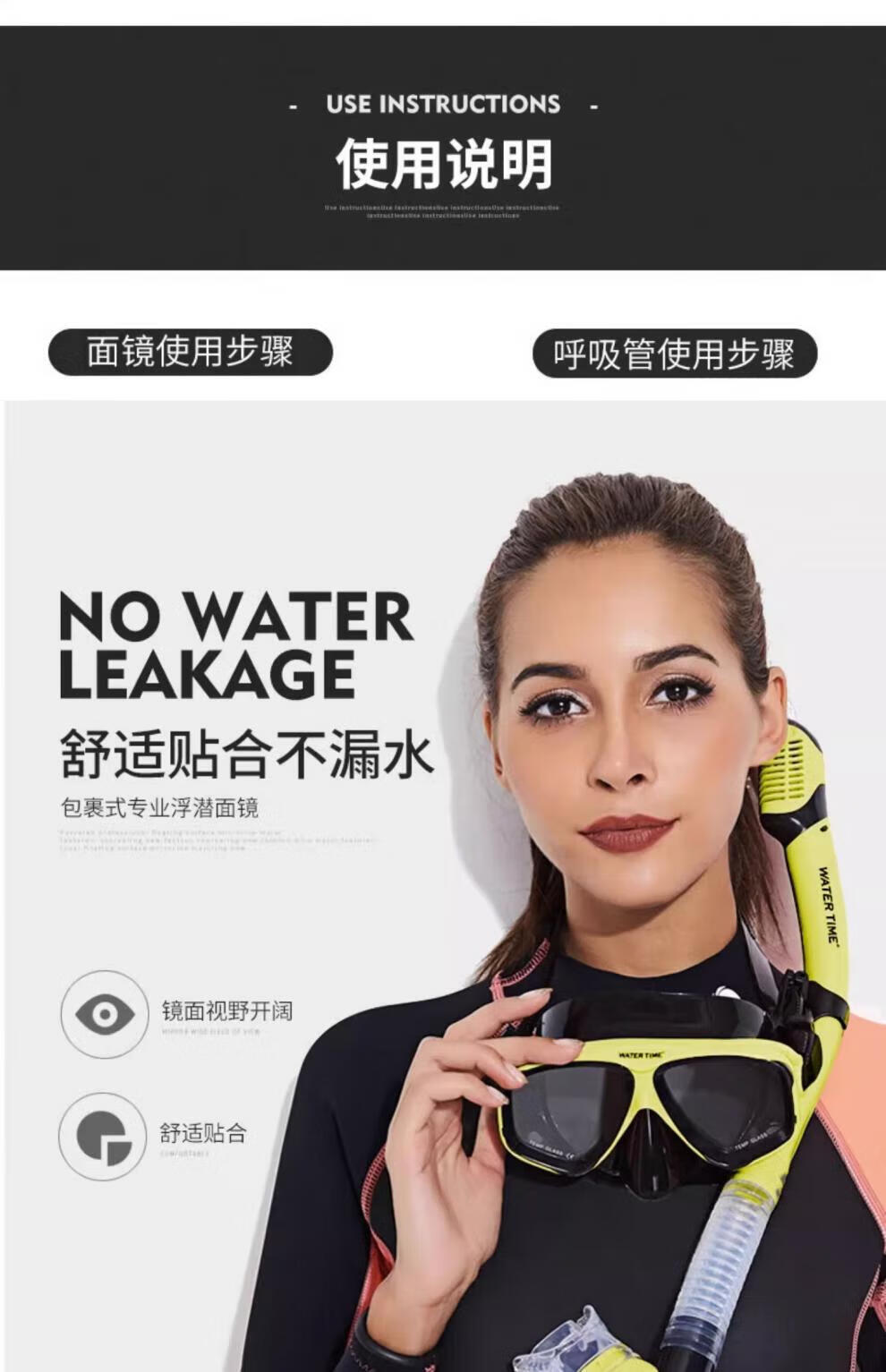 宰搂浮潜三宝潜水面罩防呛潜水镜水下呼吸管游泳镜装备 丛林绿套装硅胶-广角