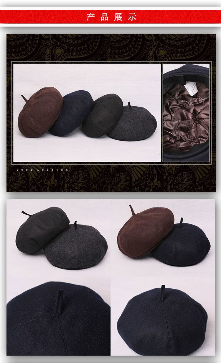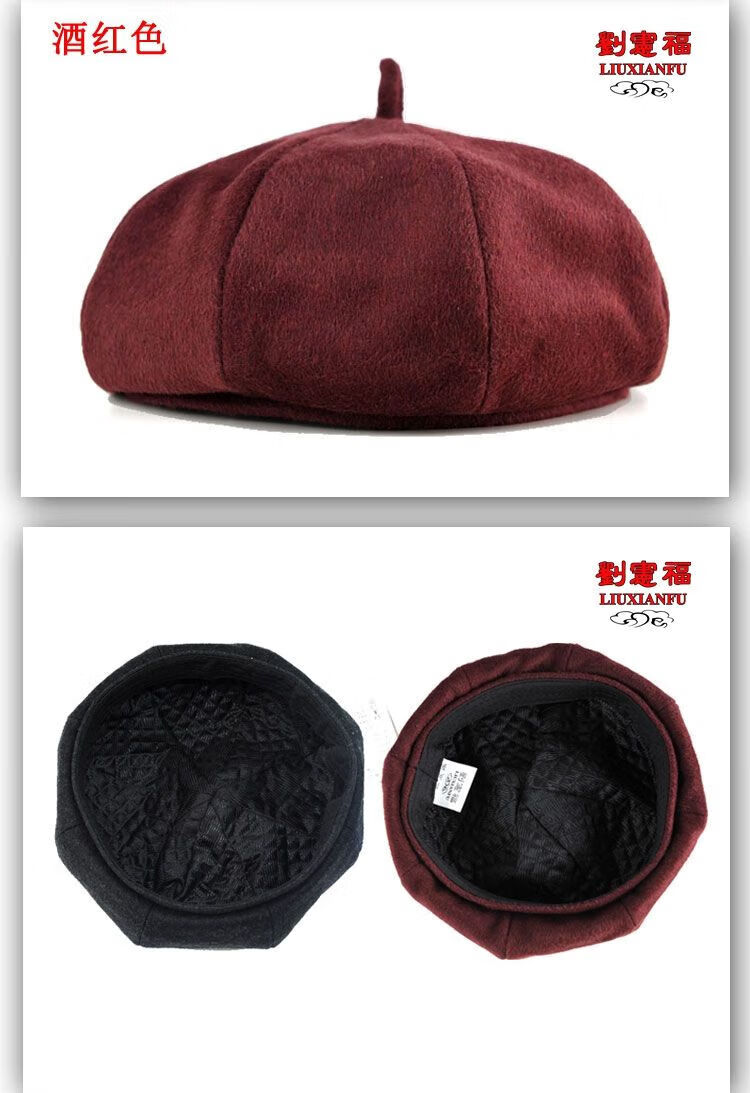 Fangtou pumpkin hat for middle-aged men, beret octagonal hat, doctor's hat, pumpkin hat for men, middle-aged and elderly hats, black woolen S small size (55-56)