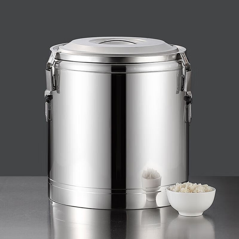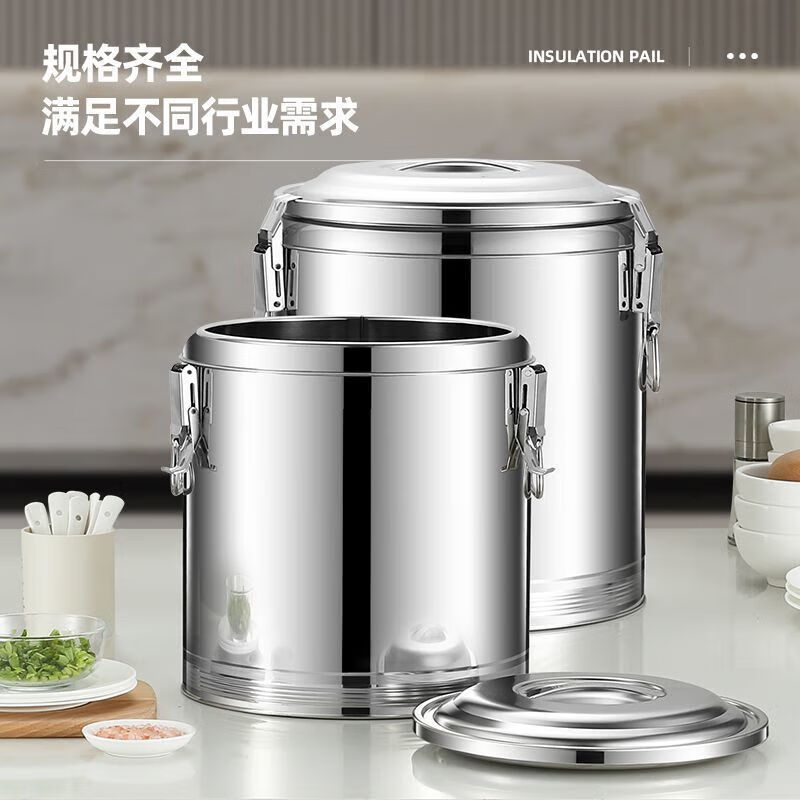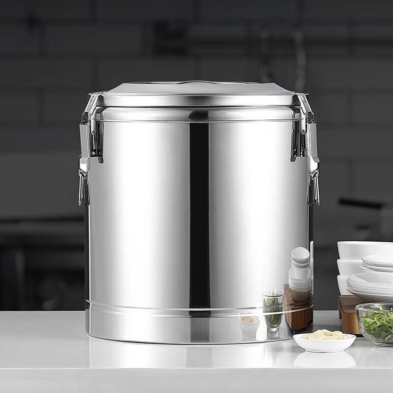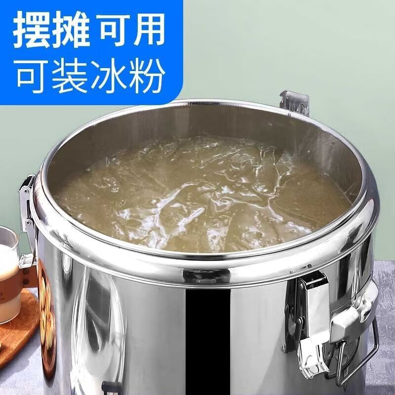 Xiongwochi stainless steel thickened insulated bucket, special rice bucket for commercial stalls, canteen soup bucket, large capacity soy milk bucket with lid, dragon-free model, can hold boiling water 7Jin Jin is equal to 0.5kg
