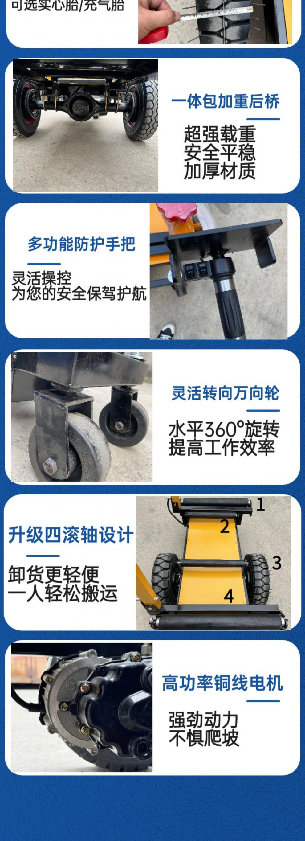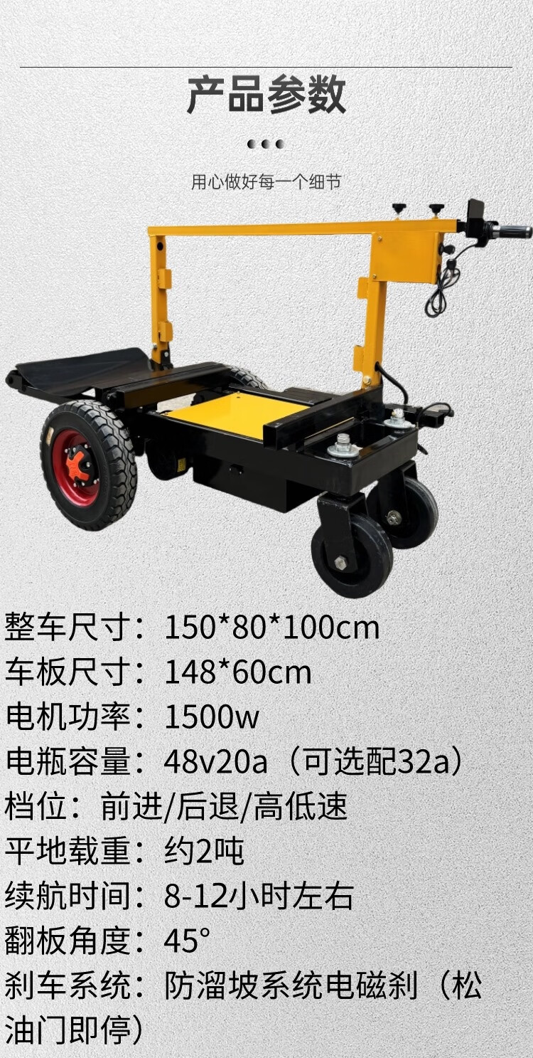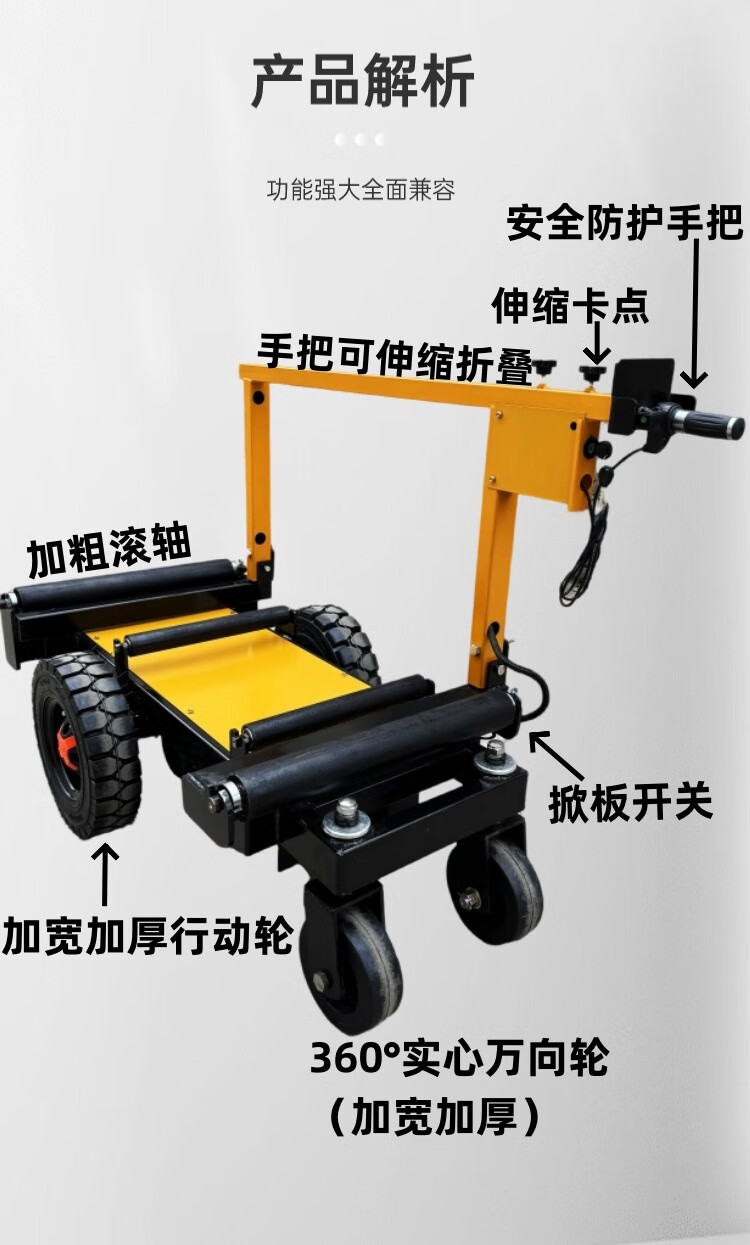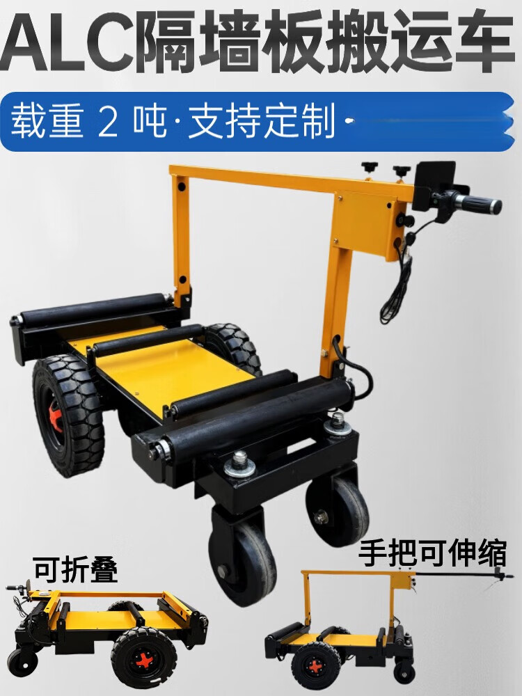 Jingxin construction site ALC partition panel electric pallet truck with load capacity of 2 tons, four-roller dump truck, folding transport flat truck, high configuration self-turning pallet truck (carrying 2 tons/four wheels) 20A widened wheels