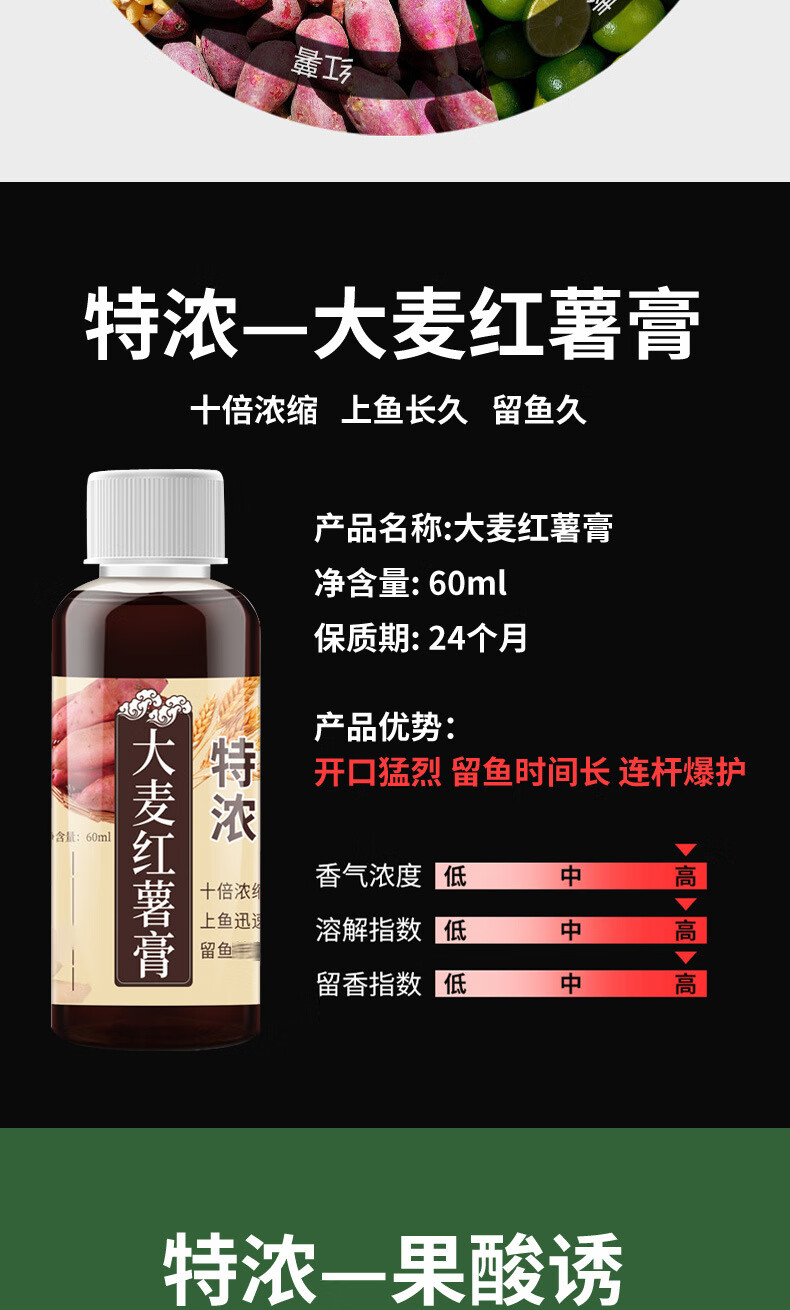 High concentration barley sweet potato paste black pit wild fishing medicine fruit acid carp crucian carp red worm bait concentrated additive high concentration 1 bottle 60ml lure fish quickly