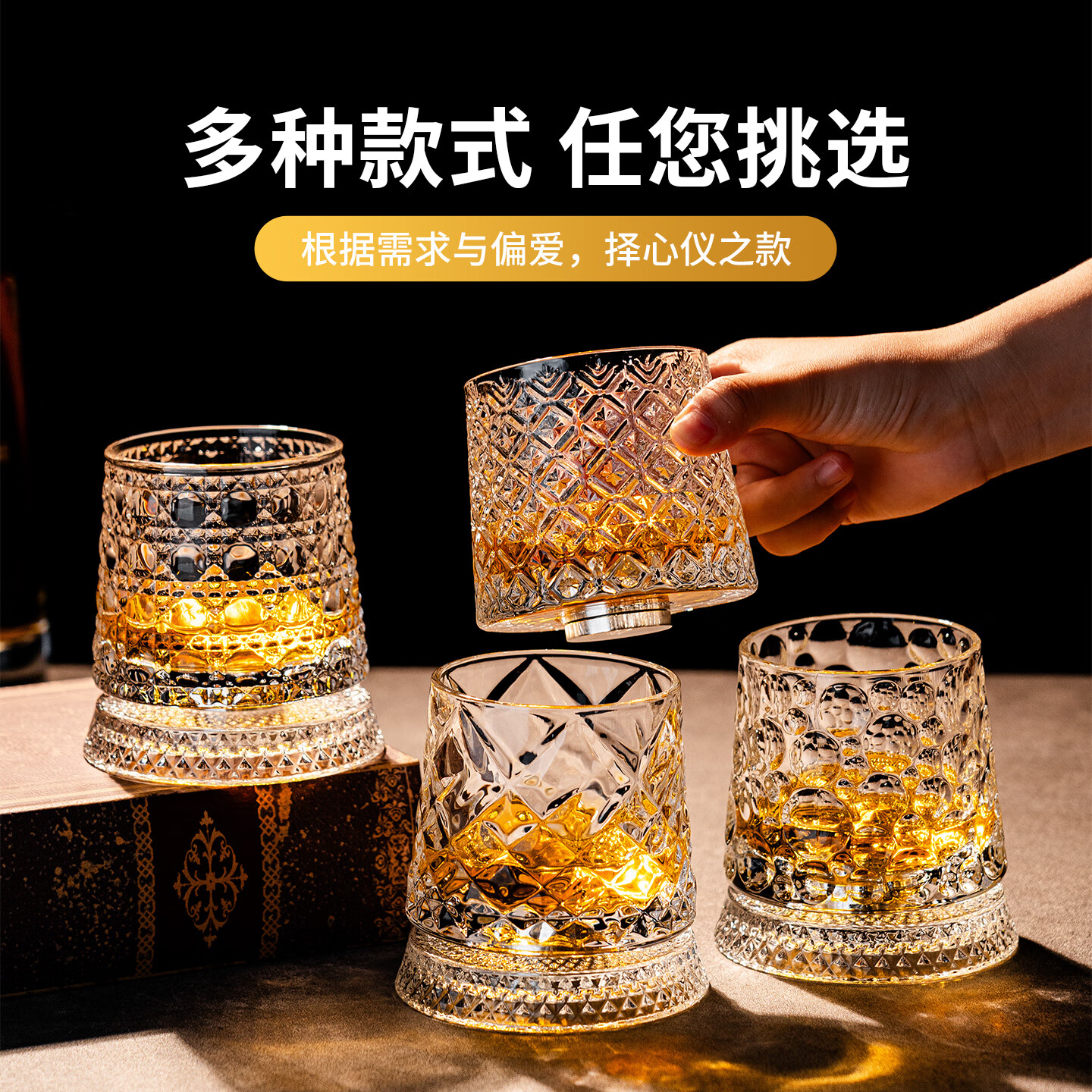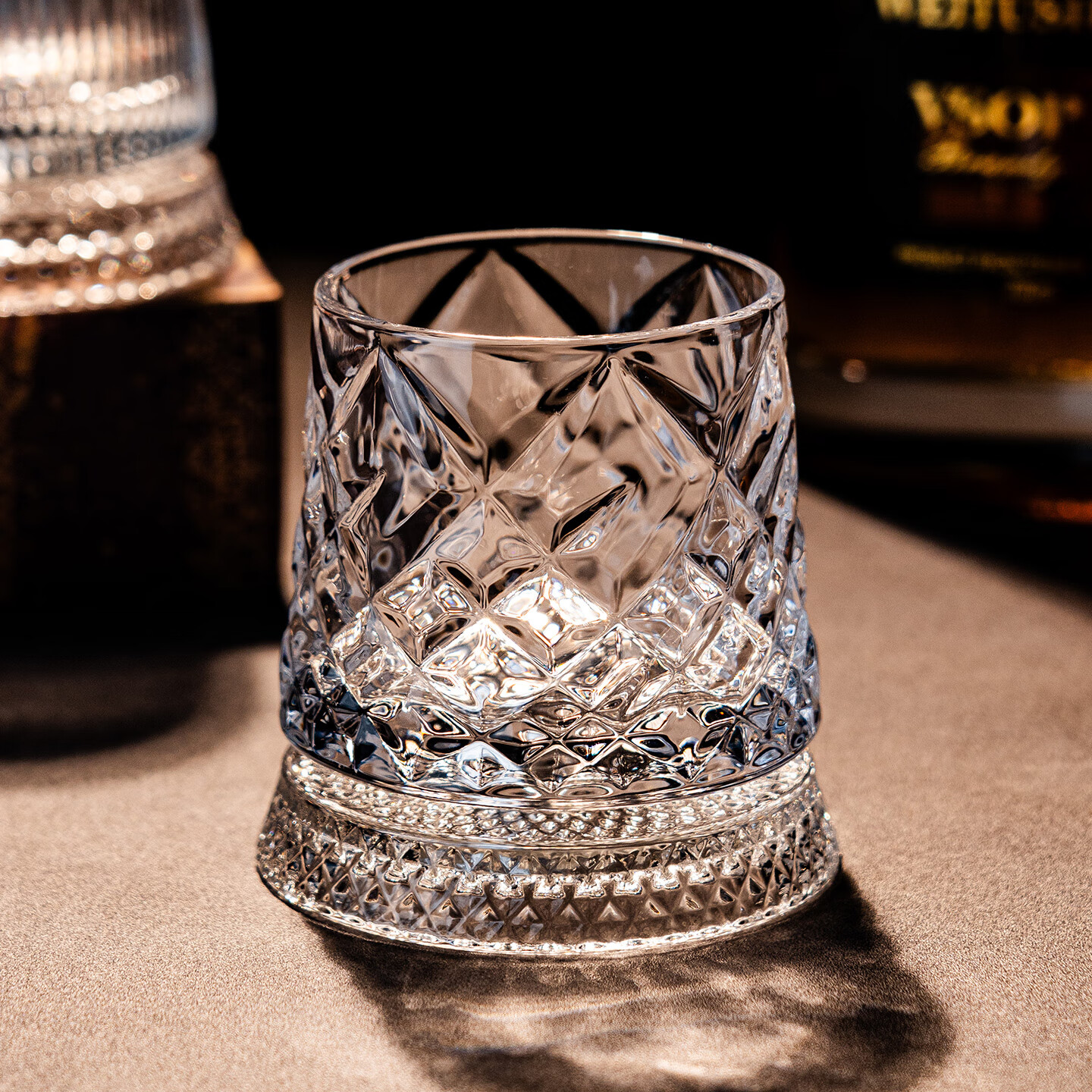 Bedojia crystal bottom rotating whiskey glass, high-end tumbler beer glass, home supplies, office high-end wineware, planet rotating cup with luminous coaster