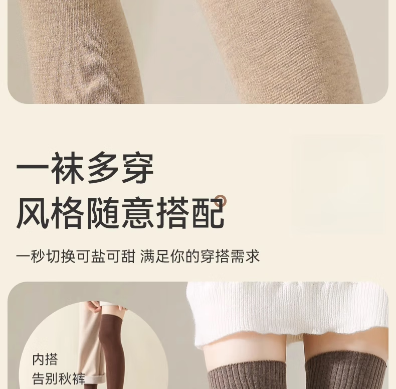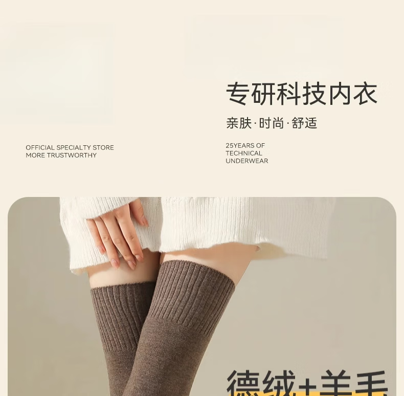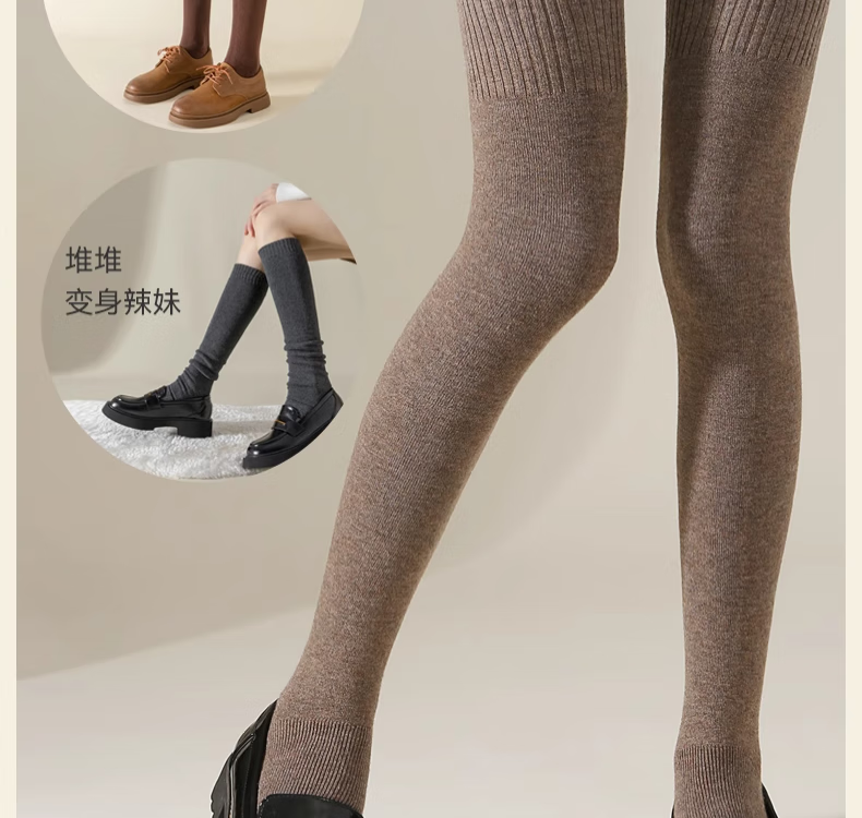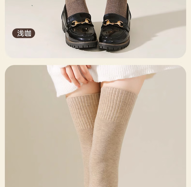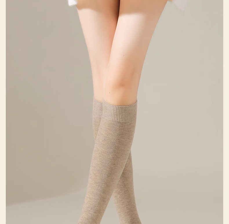 Yalu Knee Socks Women's No-Slip Wool Over-the-Knee Long Socks Women's Autumn and Winter Calf Thickened Extra Long Warm Thigh Socks Extended Version Wool Thigh Socks About 70CM Black One Size