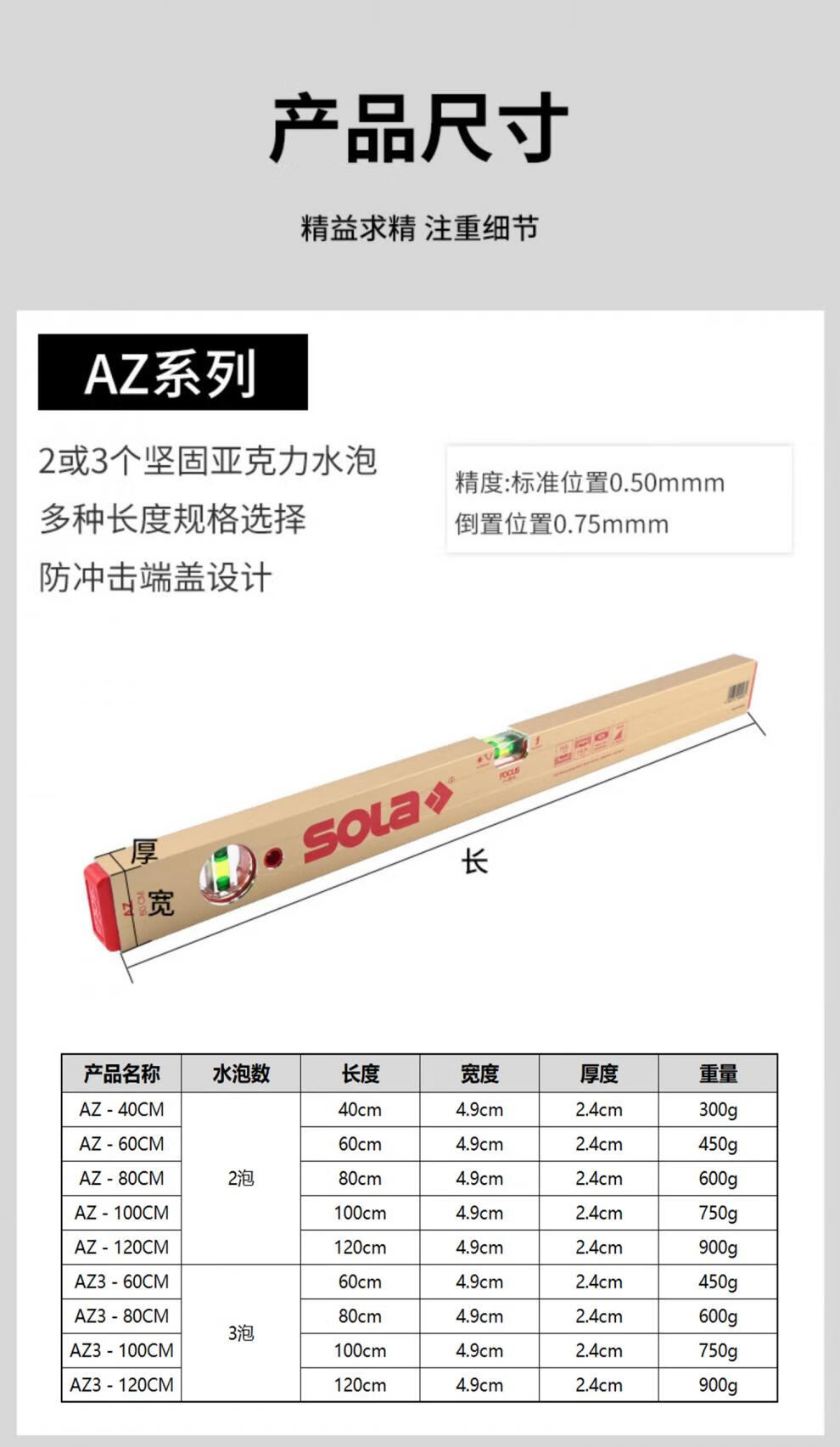 Level ruler sola/sola high-precision imported Aubao luminous local gold red head AZ series