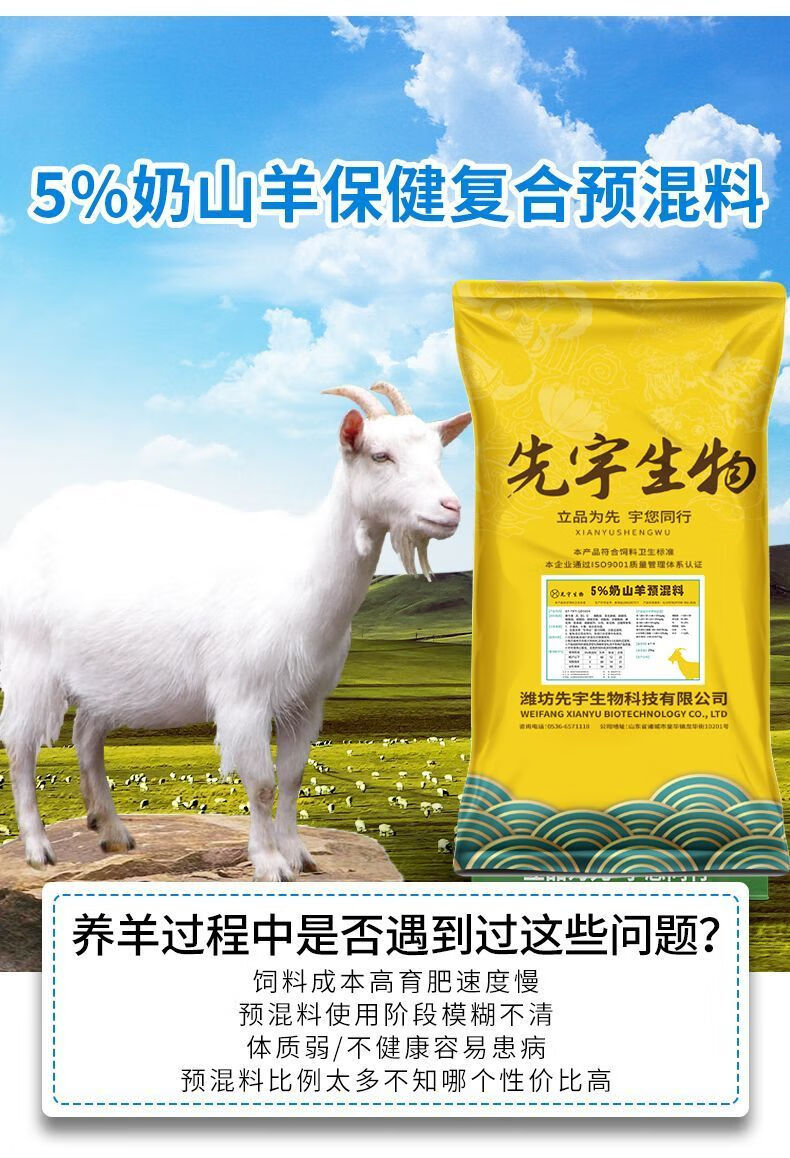 Xianyu Biotechnology 5% dairy goat premix 1 bag 25 kg of mix 1000Jin Jin is equal to 0.5 kg shipped in a ton 5% high yield dairy goat (mix 1000Jin Jin is equal to 0.5 kg)