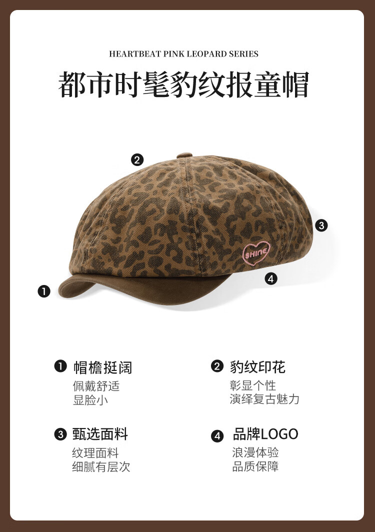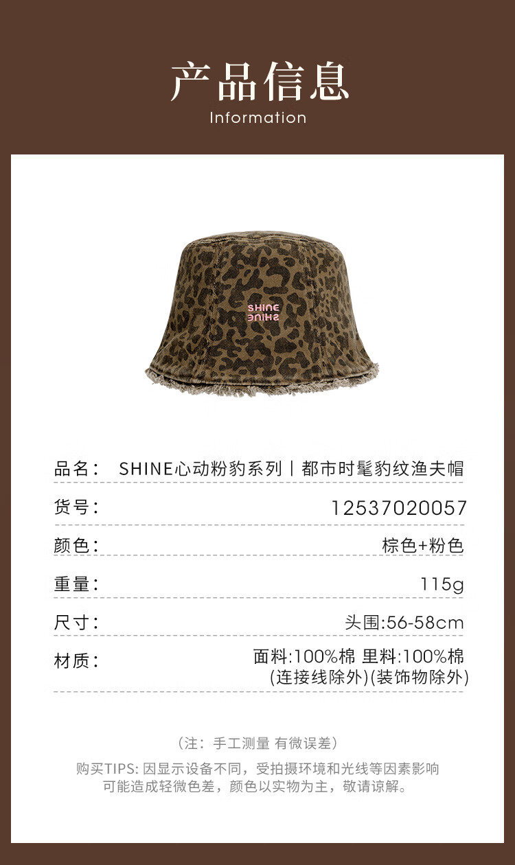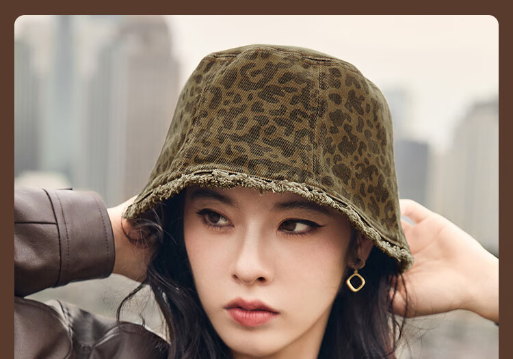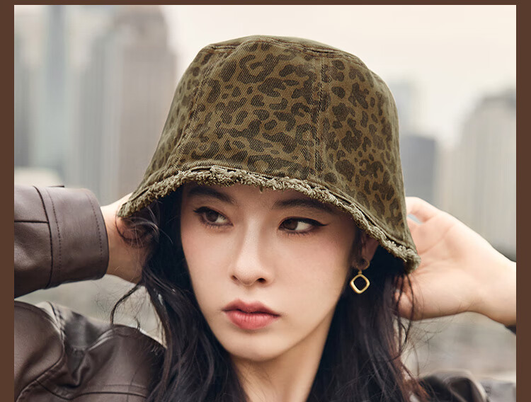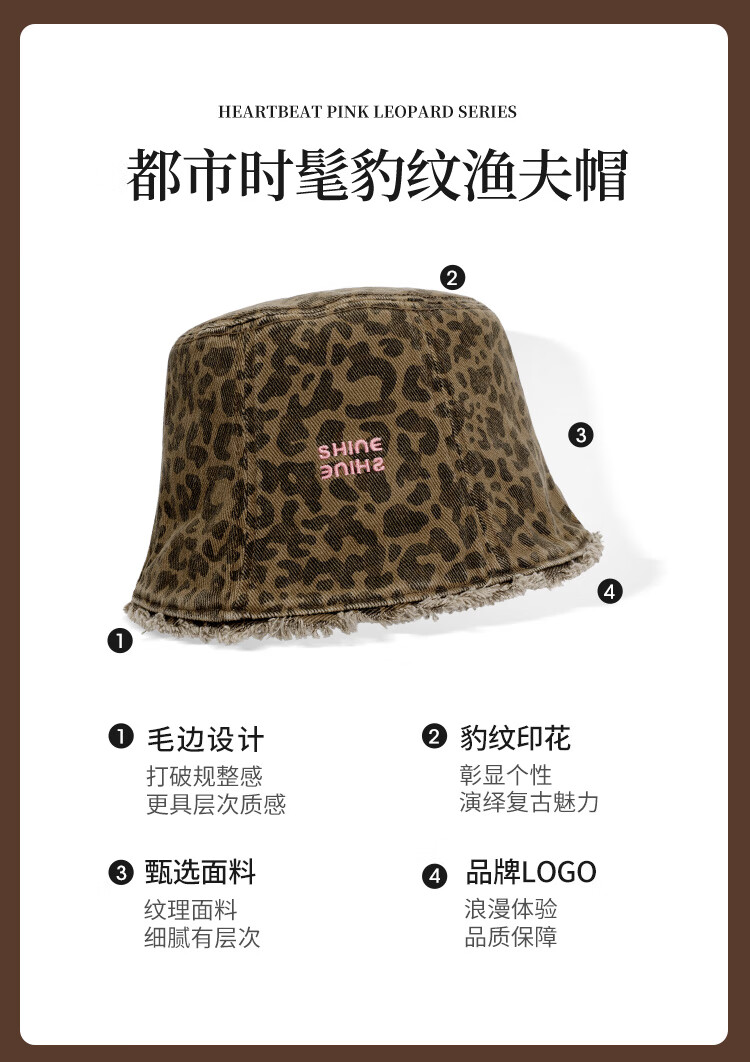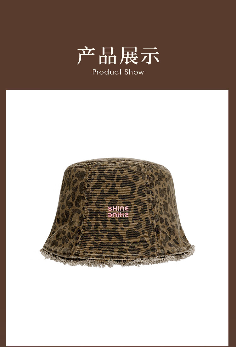 Xuanzi (SHINE) accessories pink leopard series fashionable leopard print double-sided bucket hat personalized forward hat newsboy hat bucket hat M (-cm)