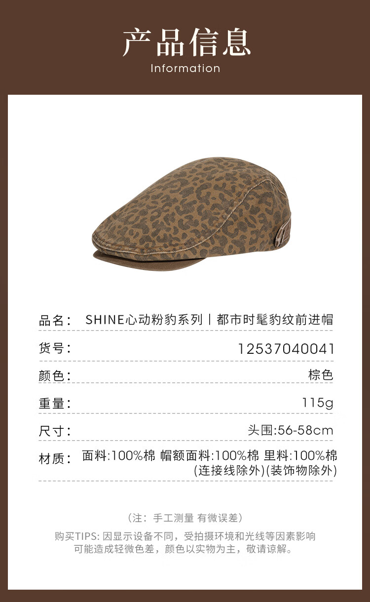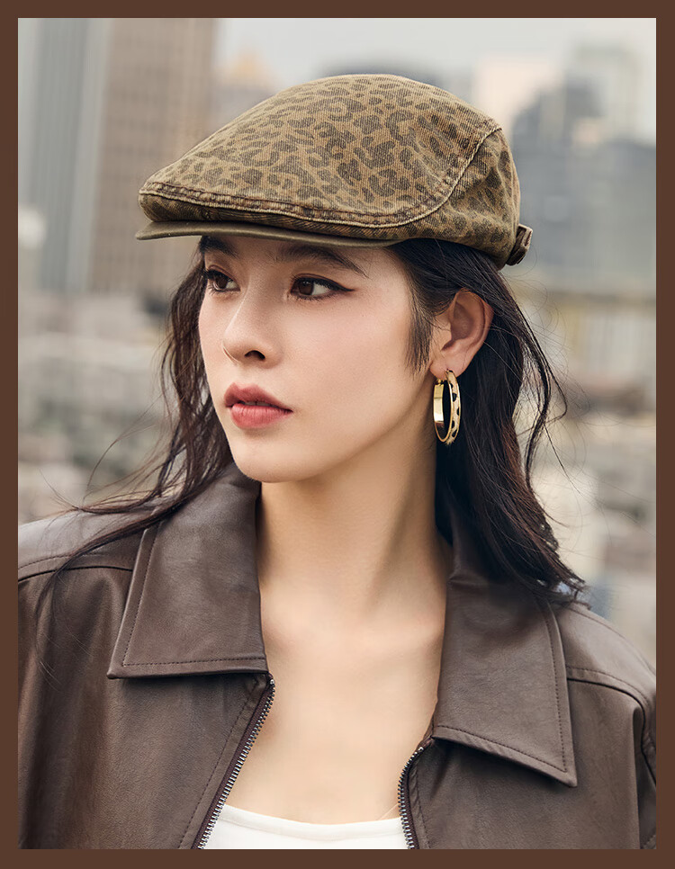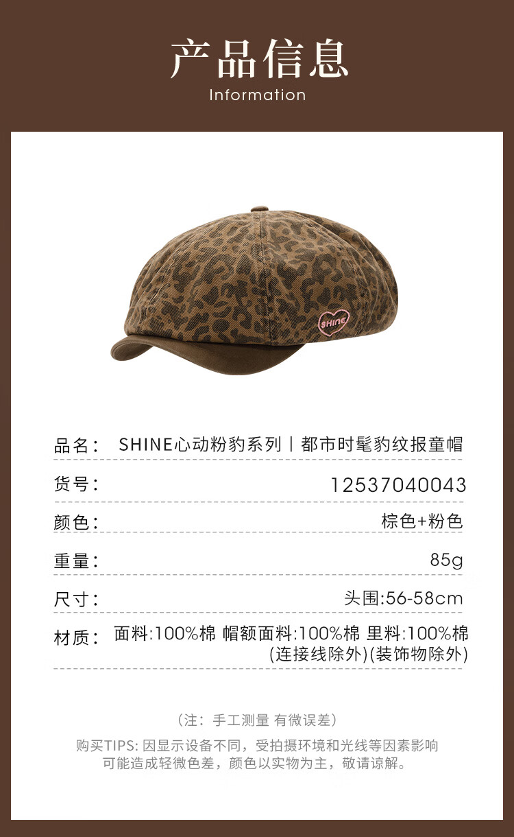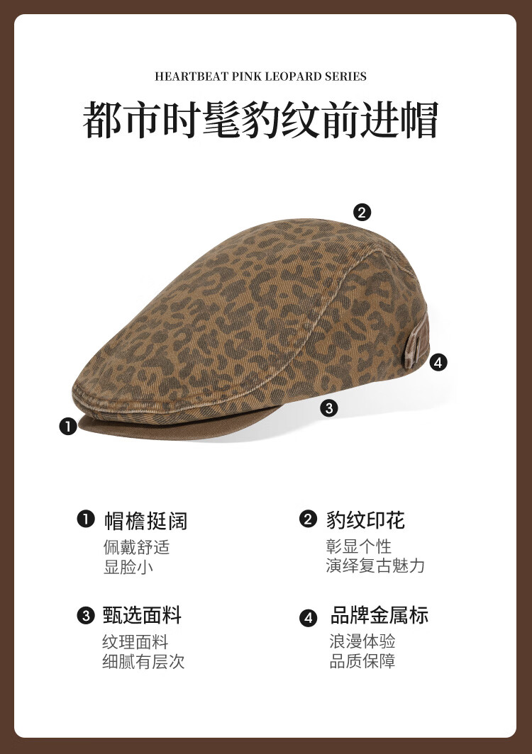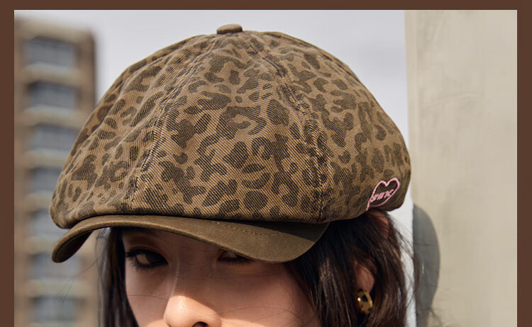 Xuanzi (SHINE) accessories pink leopard series fashionable leopard print double-sided bucket hat personalized forward hat newsboy hat bucket hat M (-cm)
