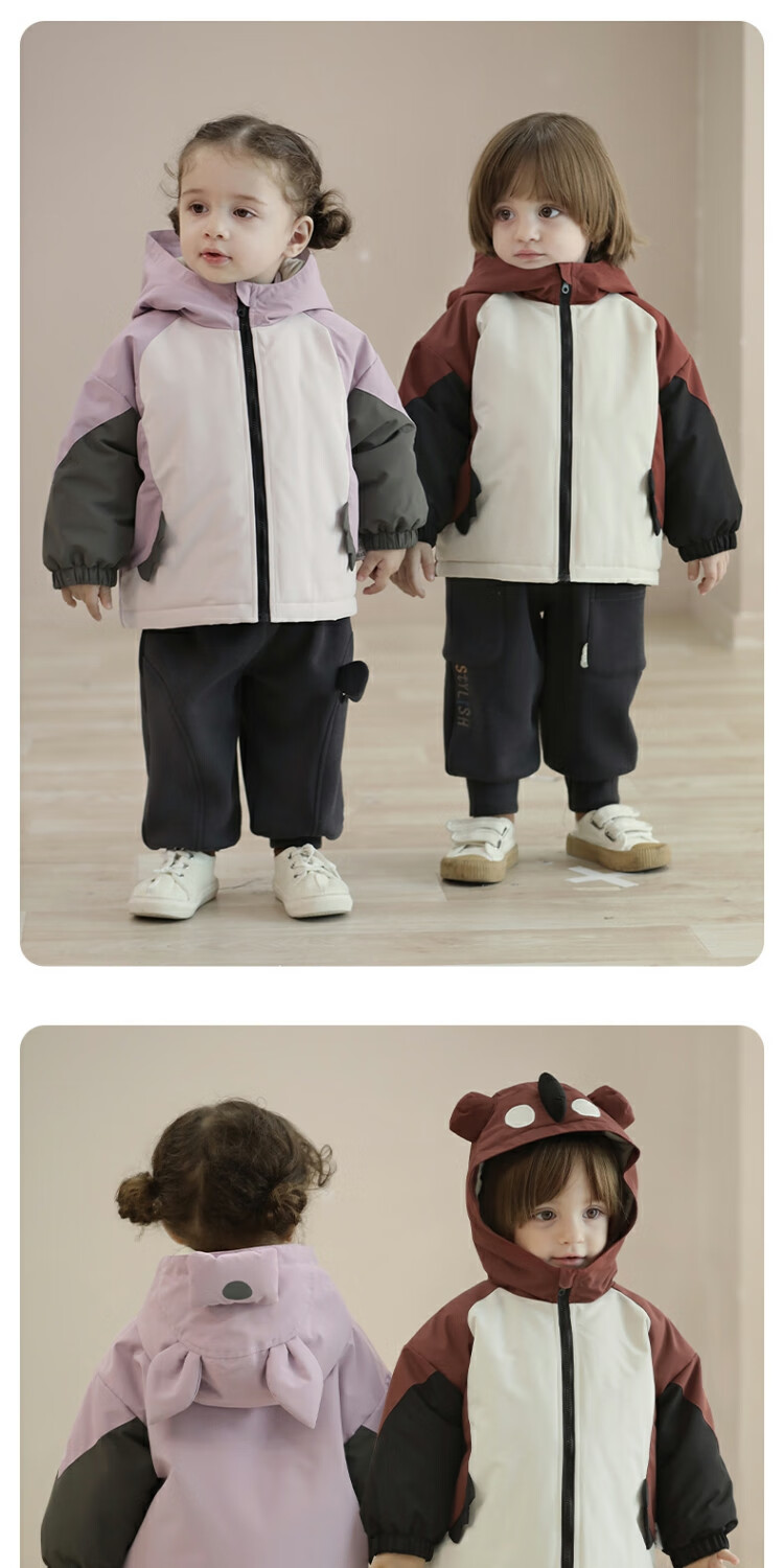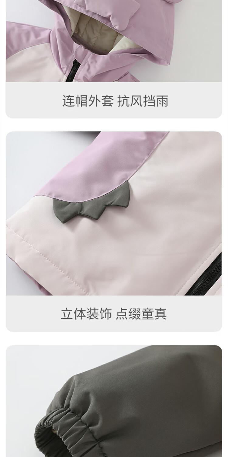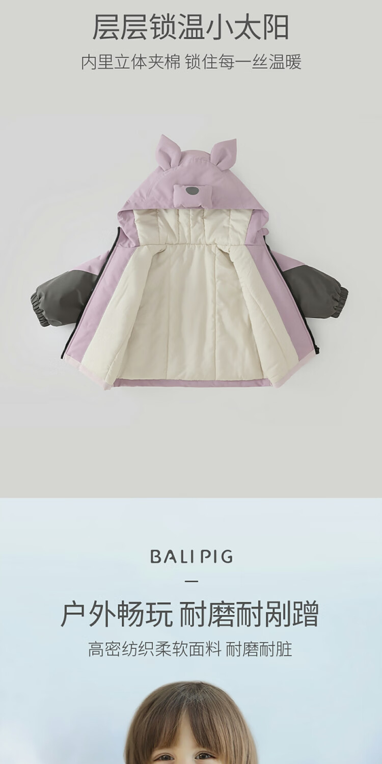 Bali Piggy Children's Charge Cotton Clothes Three-in-One Autumn and Winter Three-Proof Jacket for Boys and Girls Padded Thickened Warm Cotton Jacket Baby Winter Clothes Taro Purple 100
