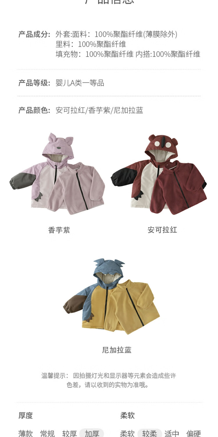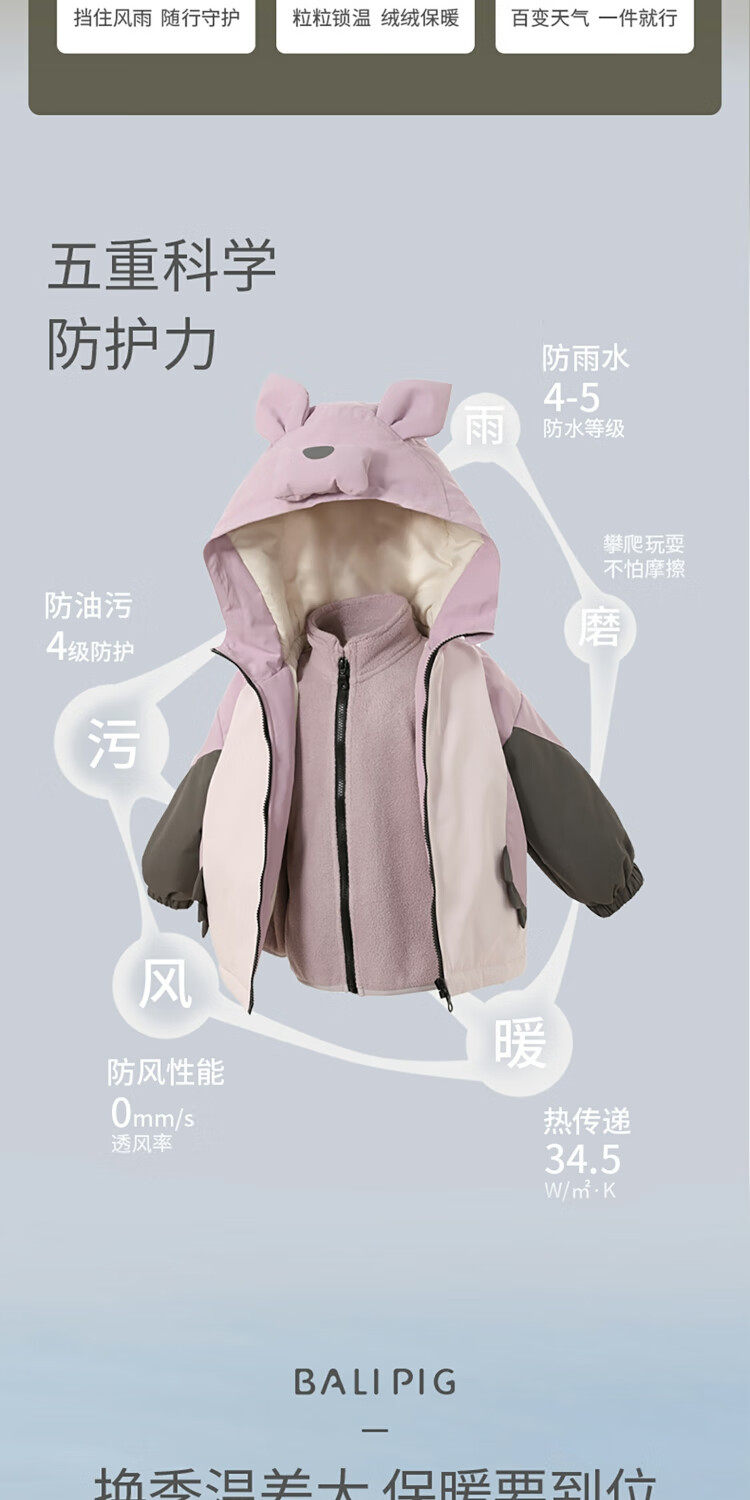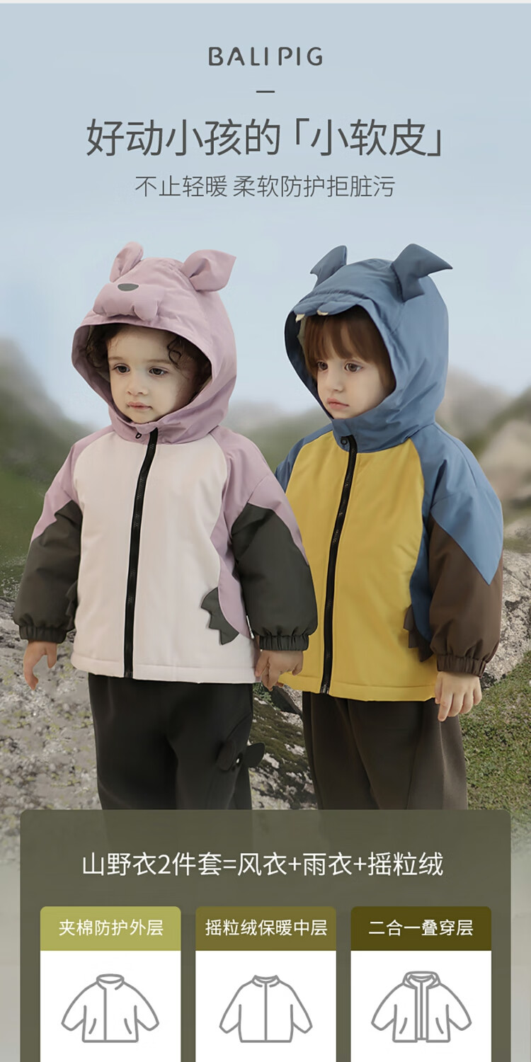 Bali Piggy Children's Charge Cotton Clothes Three-in-One Autumn and Winter Three-Proof Jacket for Boys and Girls Padded Thickened Warm Cotton Jacket Baby Winter Clothes Taro Purple 100