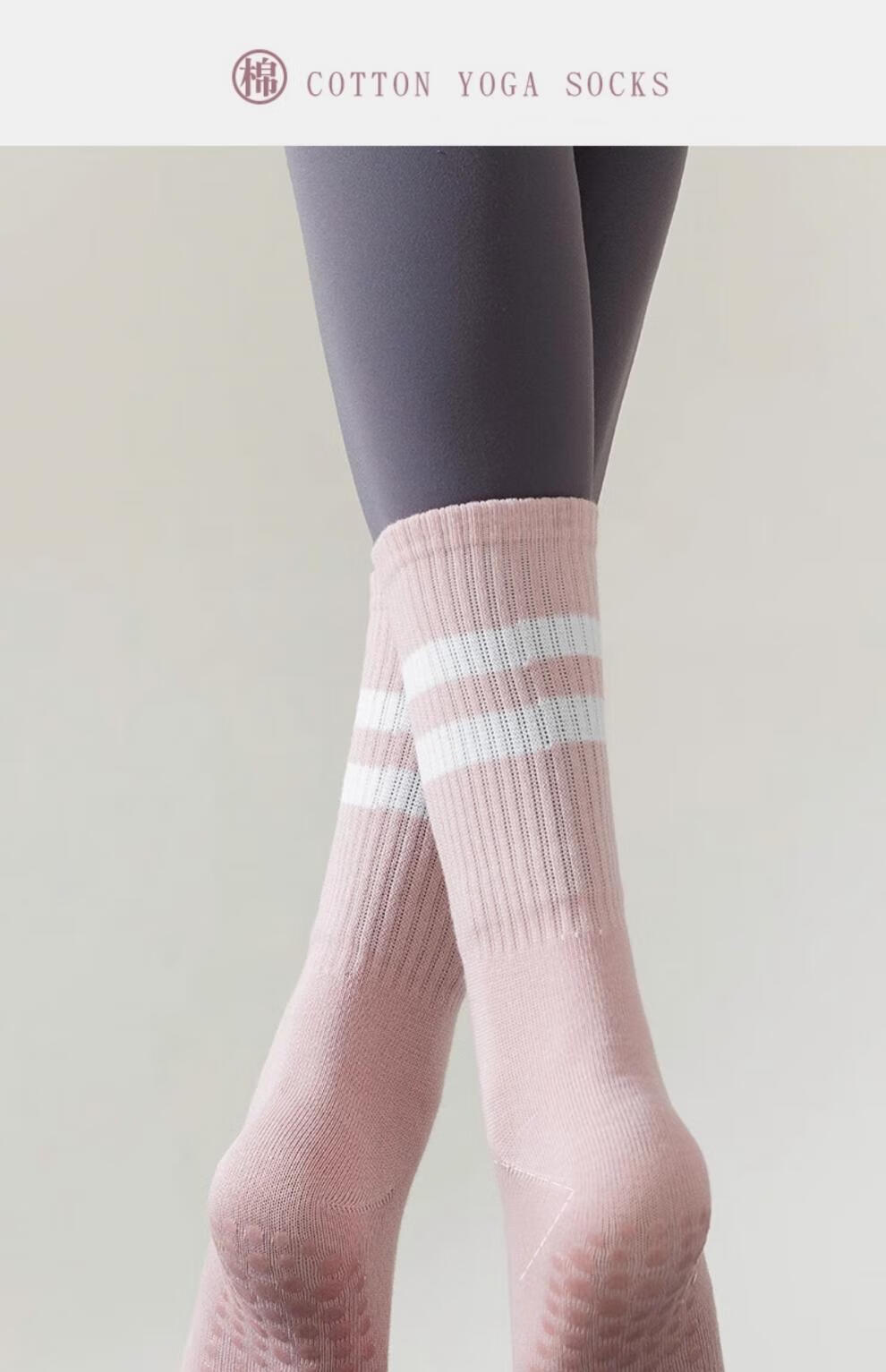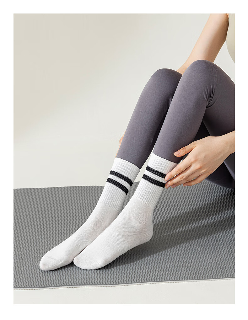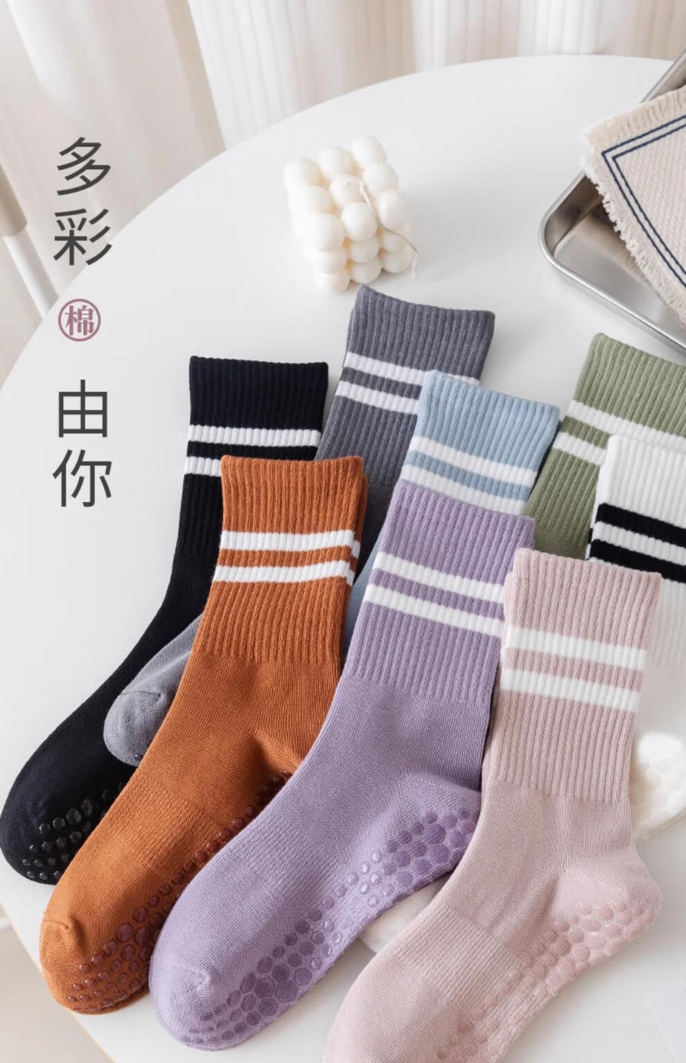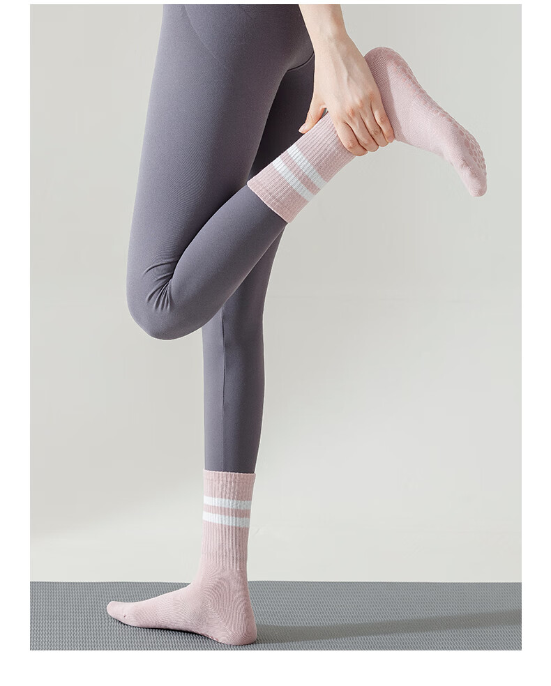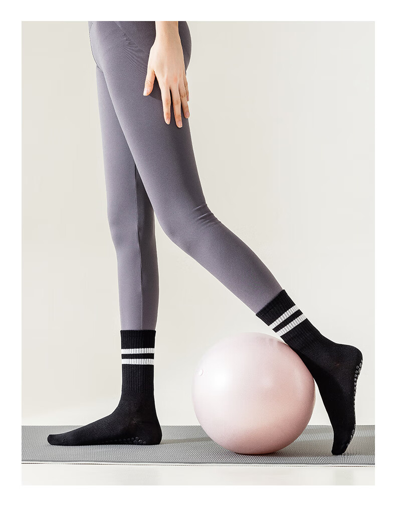 Yalu yoga socks for women, professional non-slip autumn and winter mid-calf socks, boneless Pilates fitness high-leg sports floor outer wear stockings, regular style, black 1 gray 1 white 1, a total of 3 pairs, one size fits all, 35-40 yoga socks/silicone non-slip mute