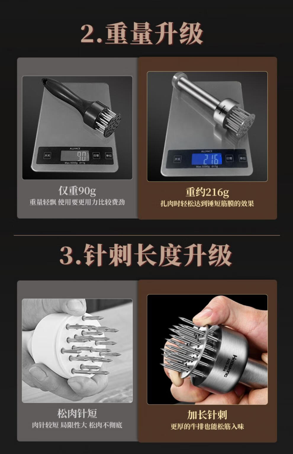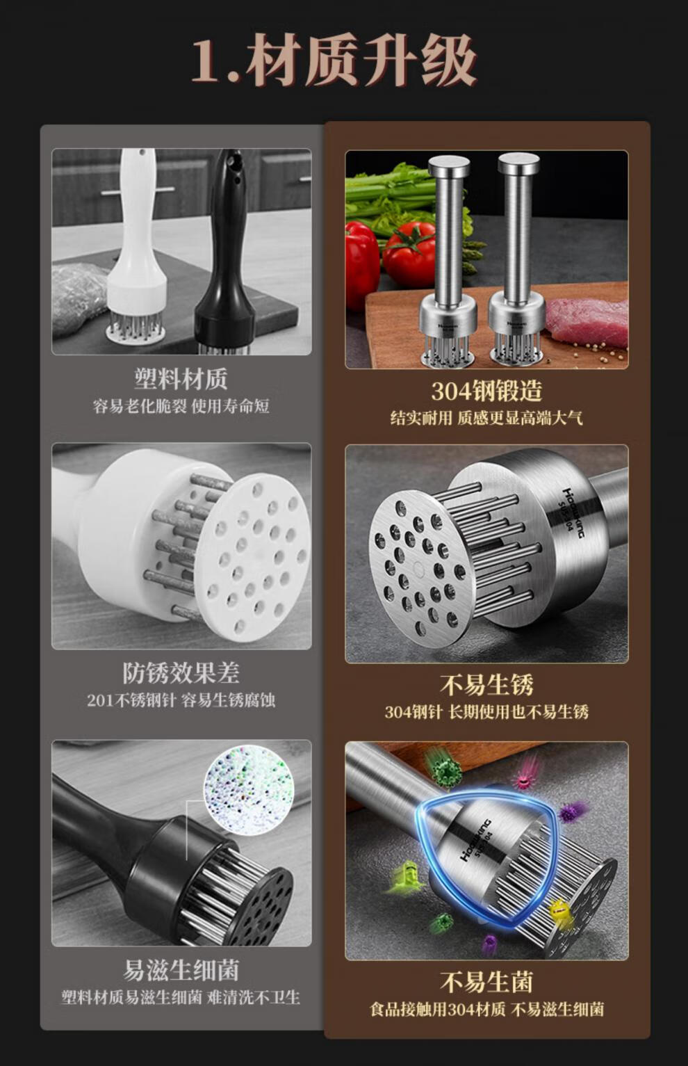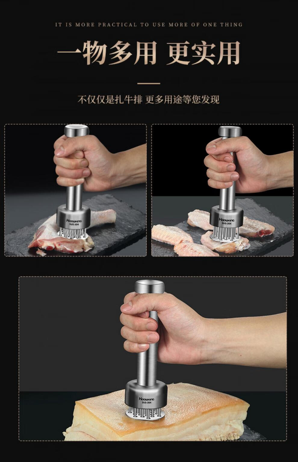 Heqing 304 stainless steel meat loosening needle, kitchen meat cutting needle, household beef steak needle, meat tenderizing meat breaking and tendon cutting device, round meat loosening needle, 304 stainless steel
