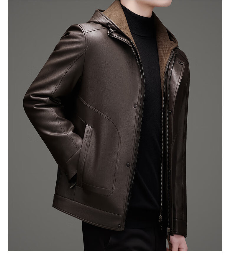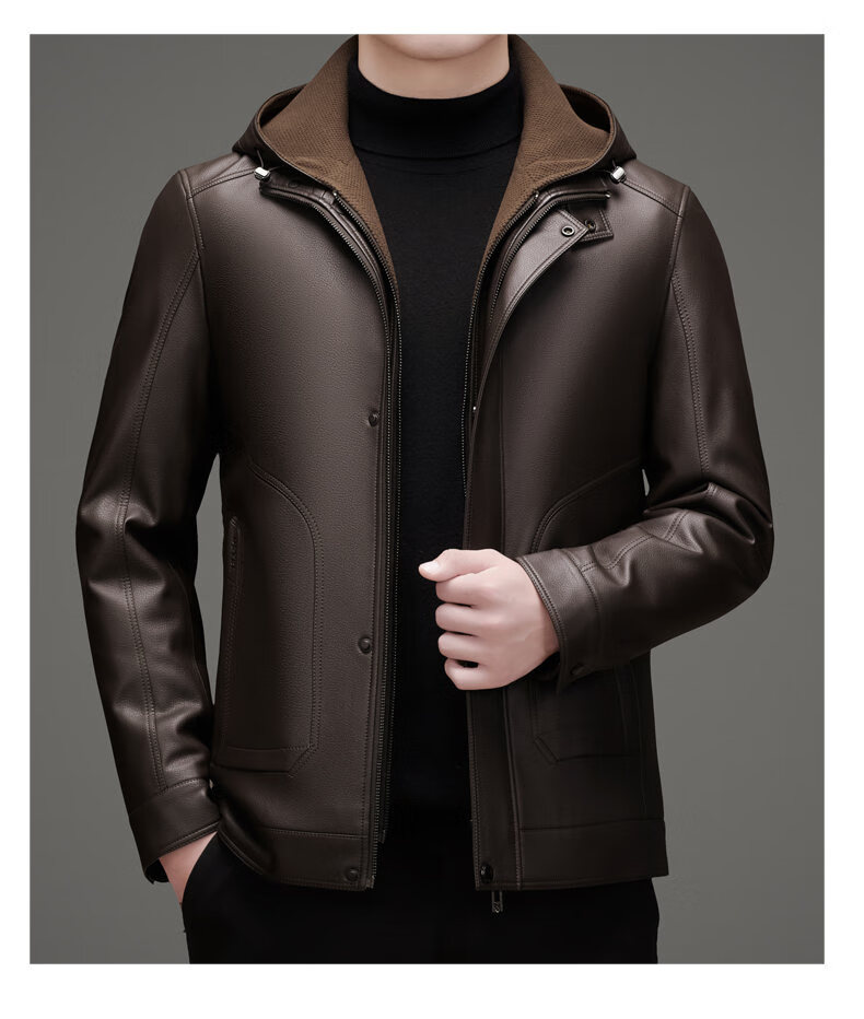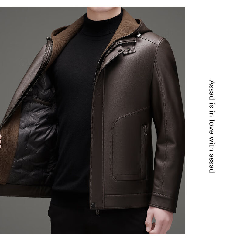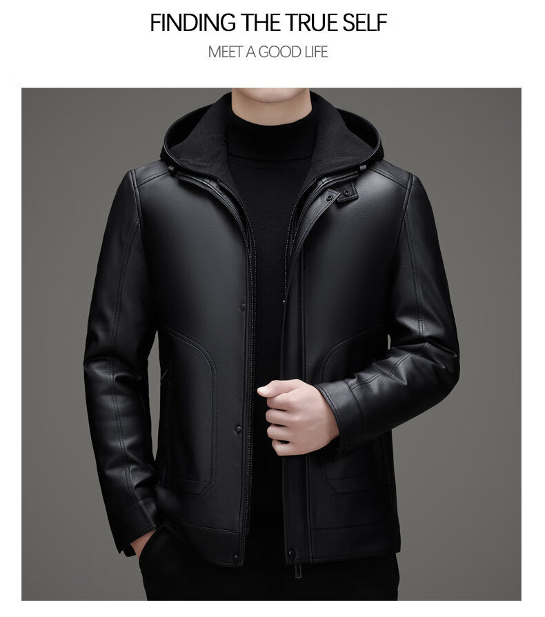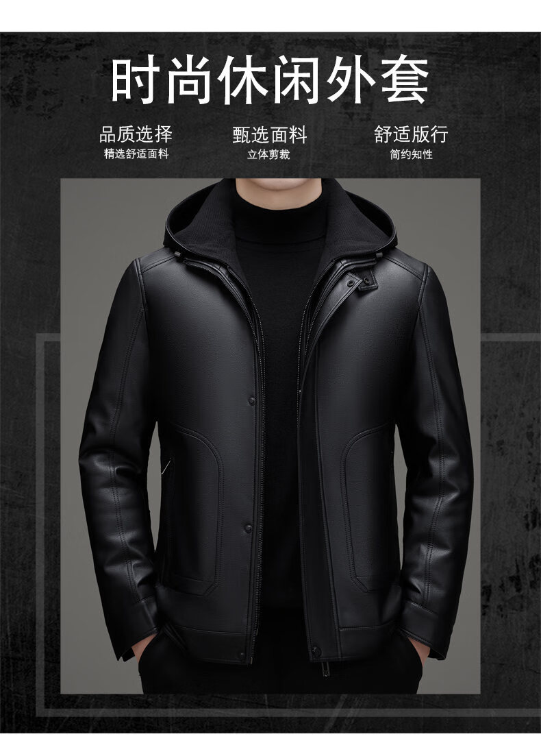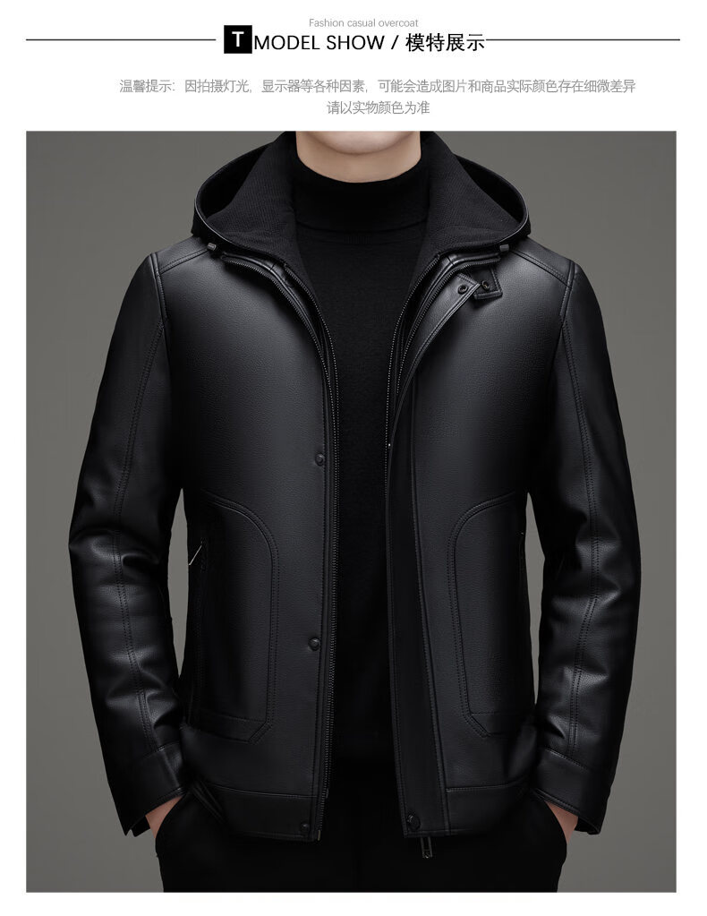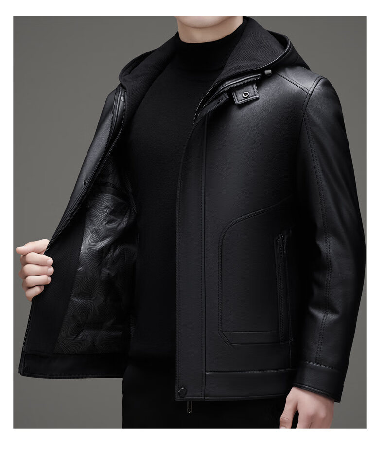 ROMON leather jacket men's winter new style plus velvet thickened warm and cold-proof jacket men's light business men's down jacket black XL /180 recommended 140-155Jin Jin equals 0.5 kg