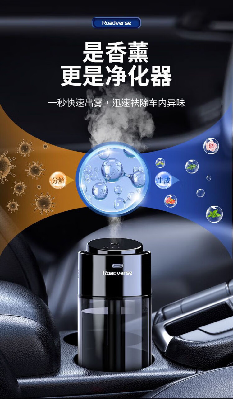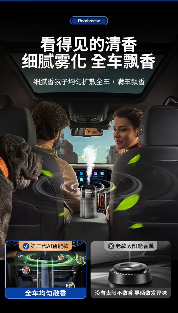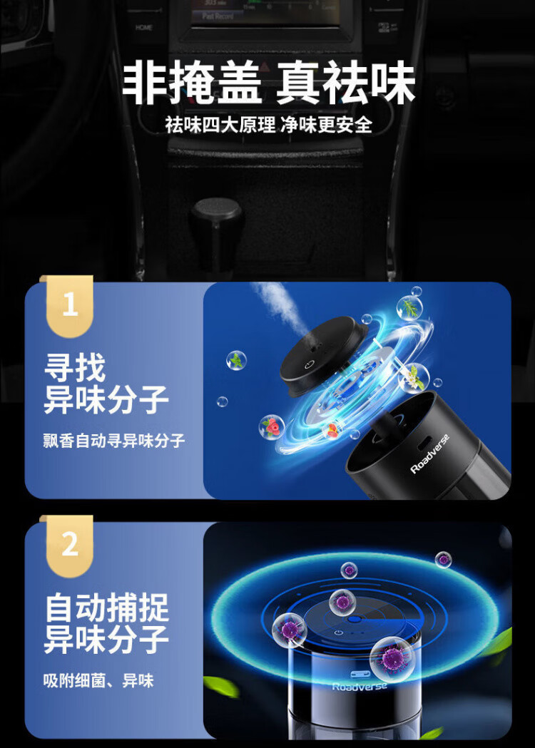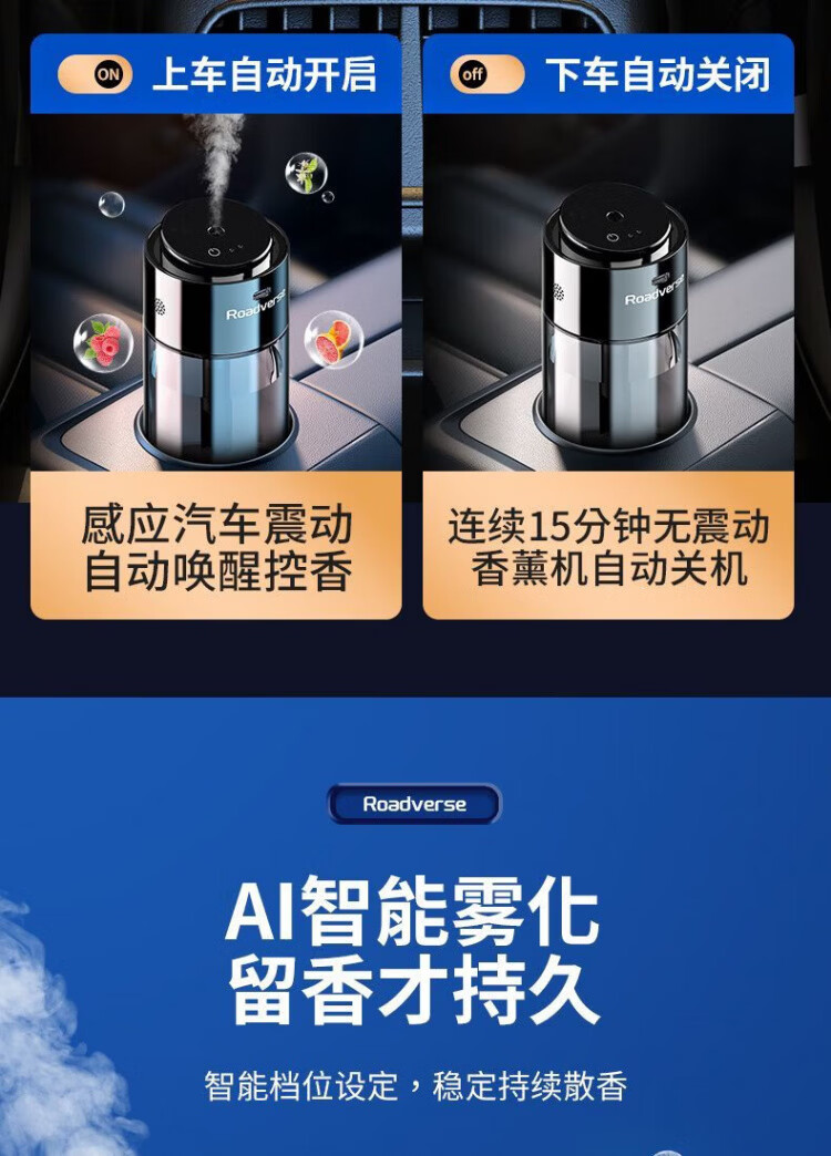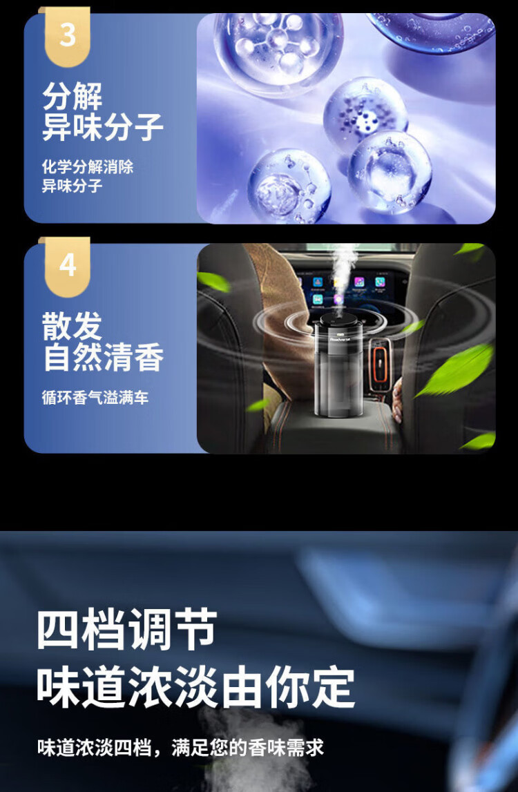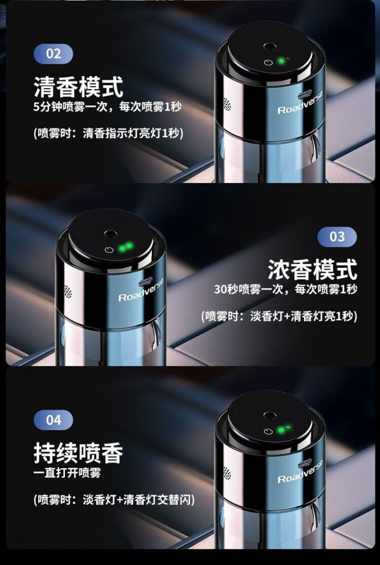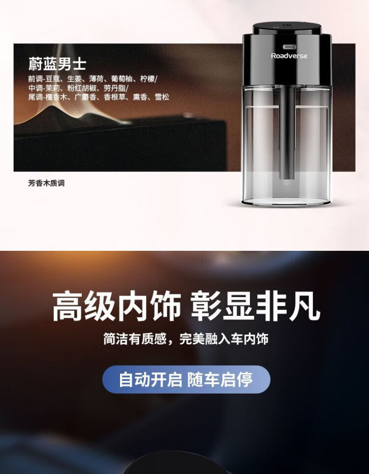 Road Defender Intelligent Car Aromatherapy Car Perfume Car Air Purification Humidifier Fully Automatic Fragrance and Odor Elimination for Motorcycles AI Intelligent Car Start-Stop Charging Model Vitality Ocean Bottle of 150ML Aromatherapy Liquid
