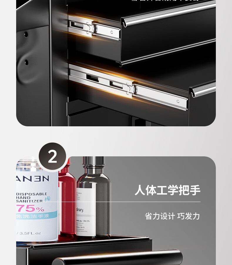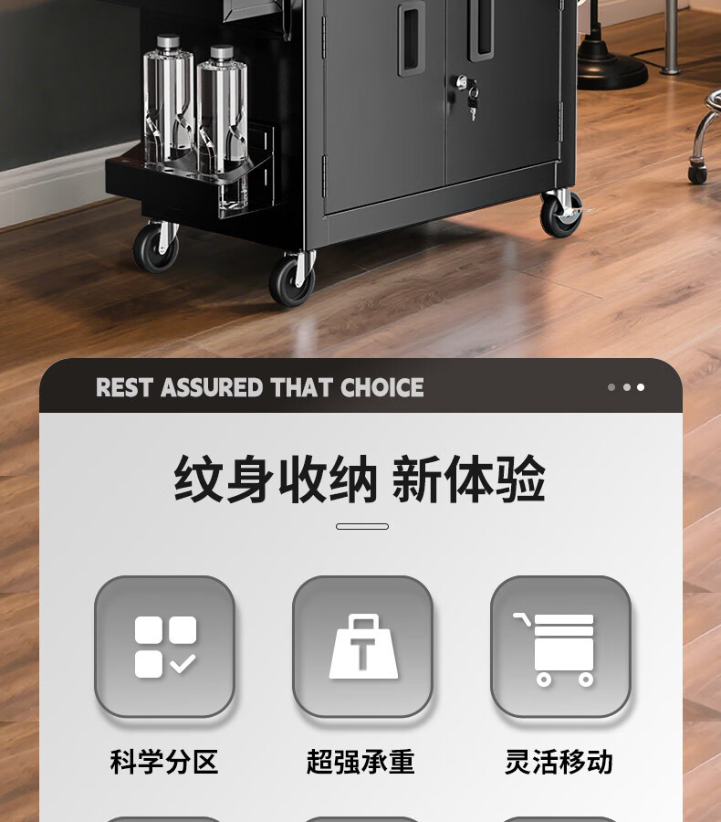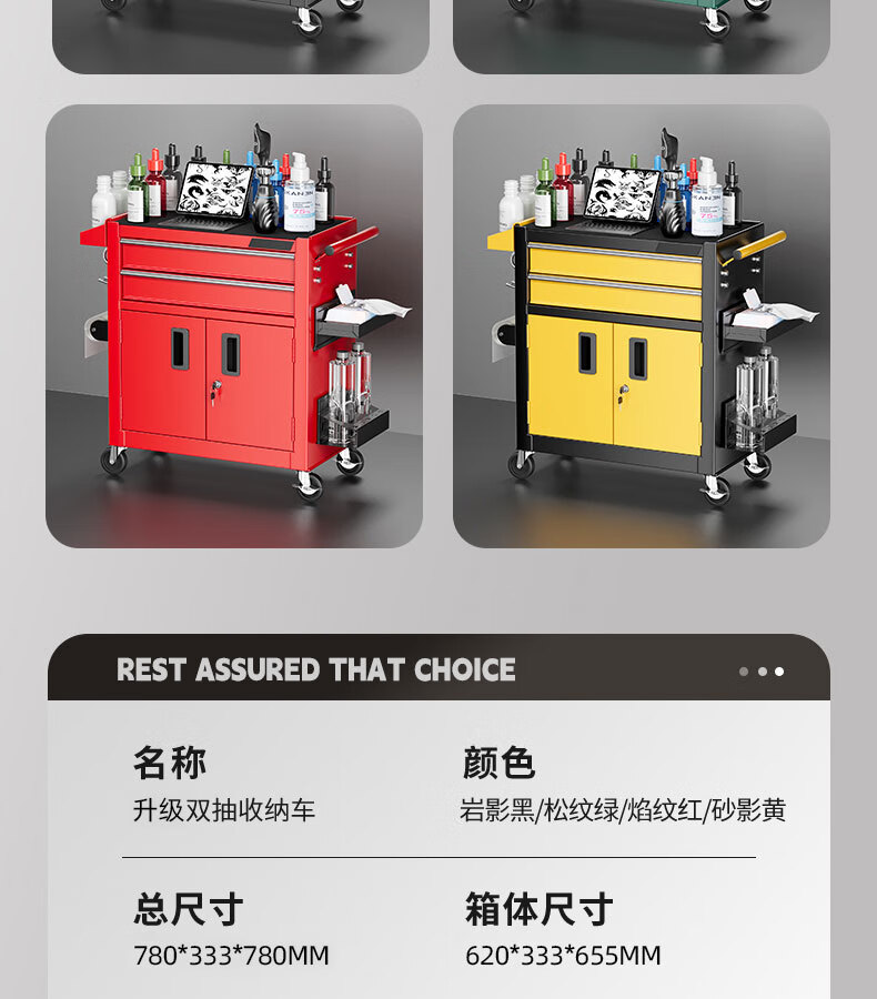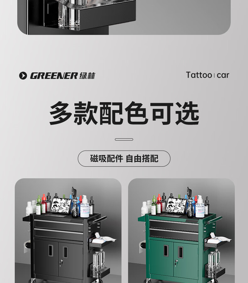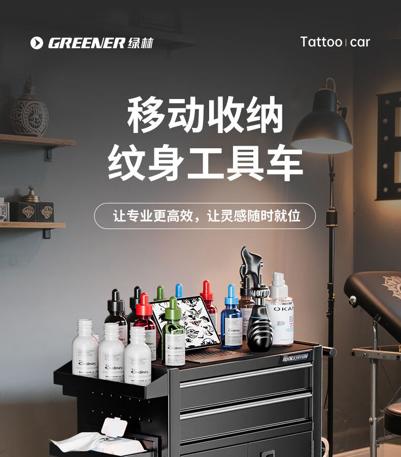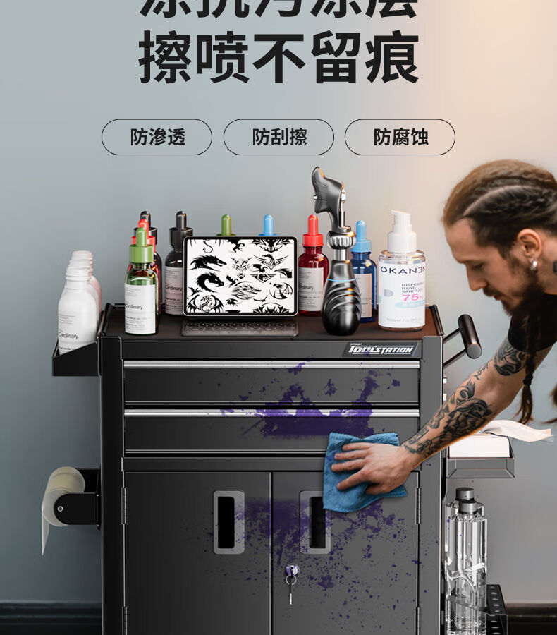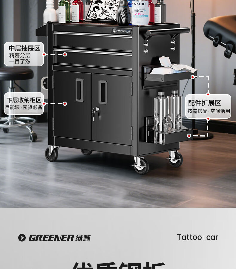 GREENER Tattoo Workbench Drawer-type Movable Tool Trolley Tool Cabinet Hairdressing Tool Holder Table Tool Trolley Large Double Drawing Rock Shadow Black Silent Slide + Anti-Slip Pad + Hook