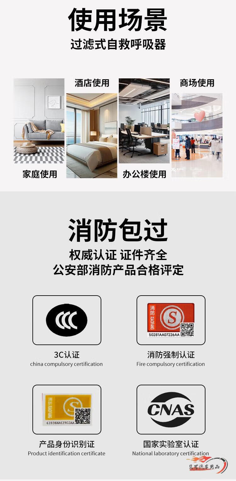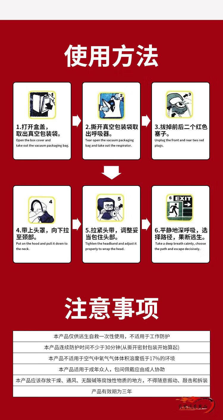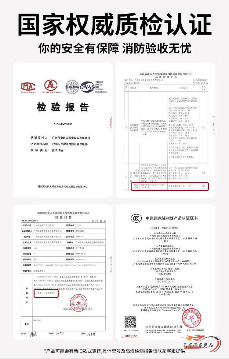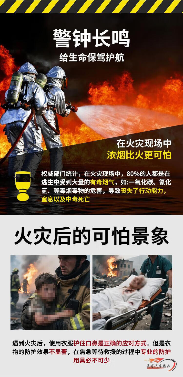 Fire mask national standard 3c certified fire-proof, smoke-proof and gas mask hotel home fire escape self-rescue respirator Guian fire mask TZL30