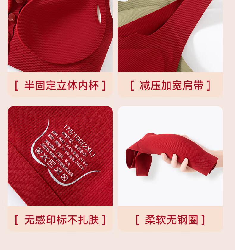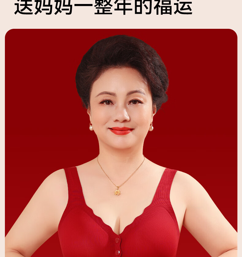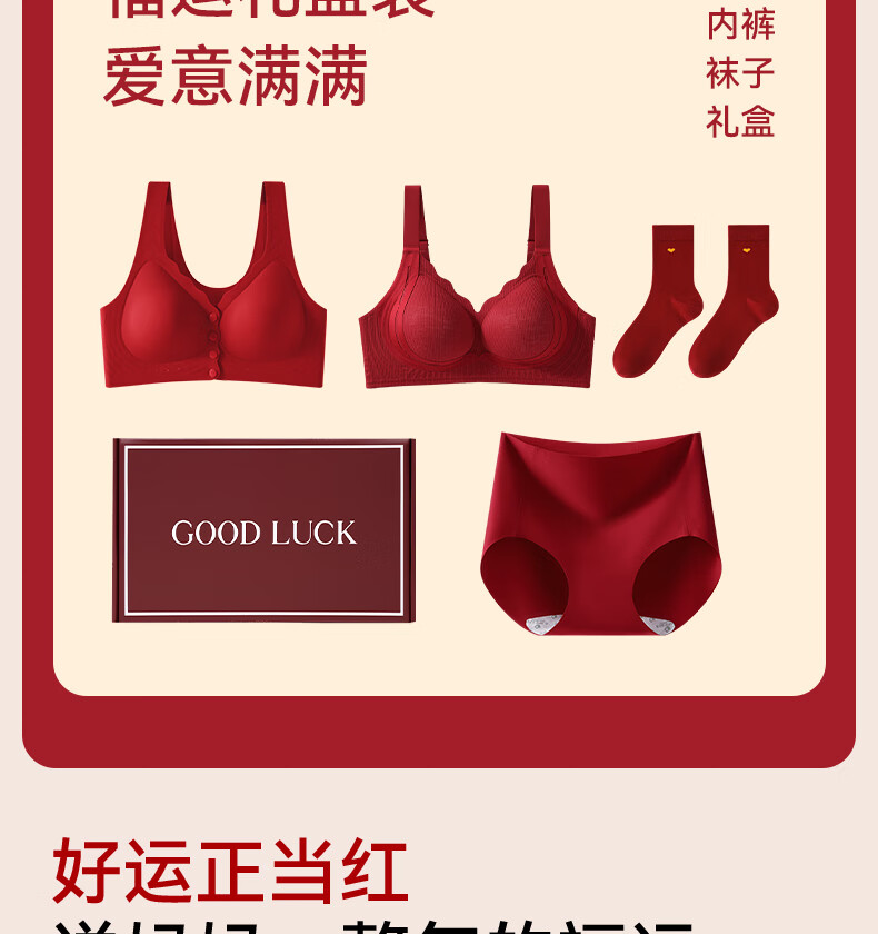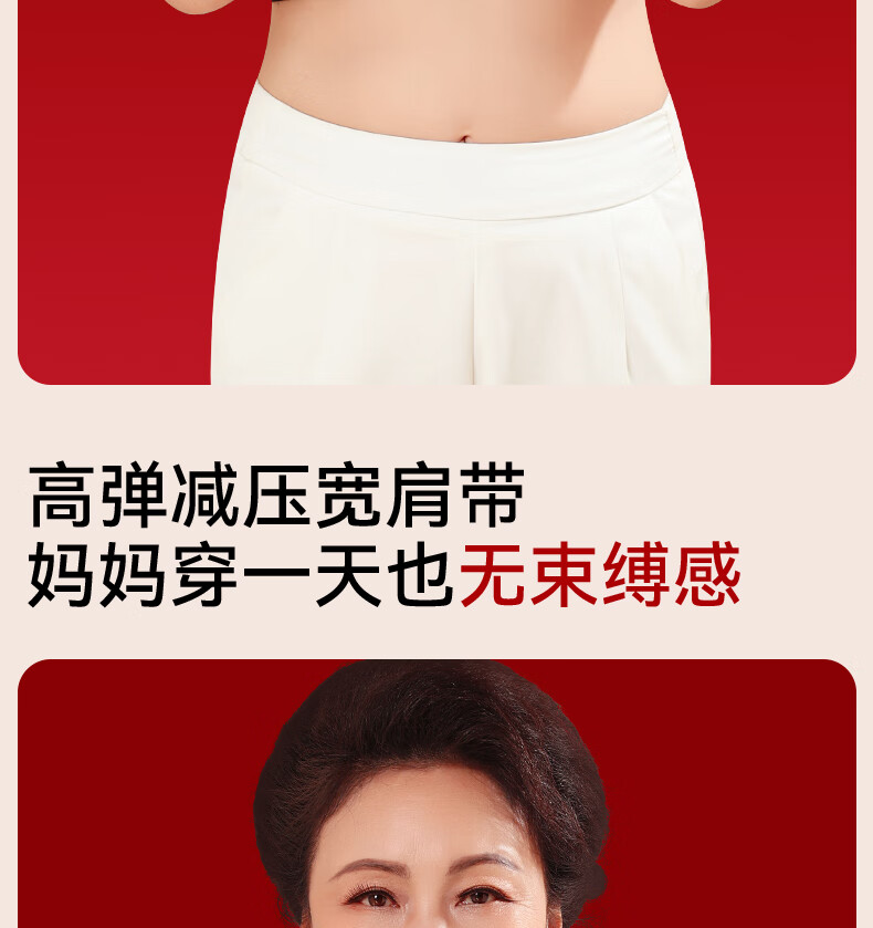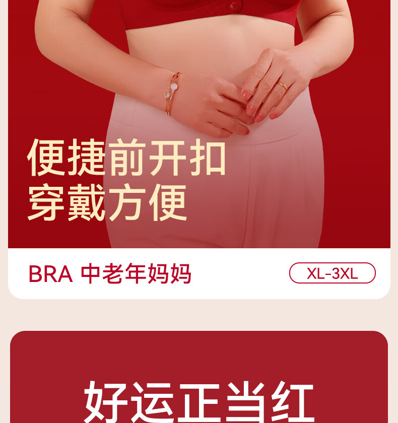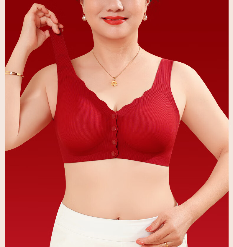 Good Luck Mom's Zodiac Year Underwear Set Women's Large Size Red Front Button Bra Seamless Underwear for Middle-aged and Elderly People New Year's Gift Front Deduction Underwear + Gift Box XL Front Deduction 100-120/Back Deduction 120-135