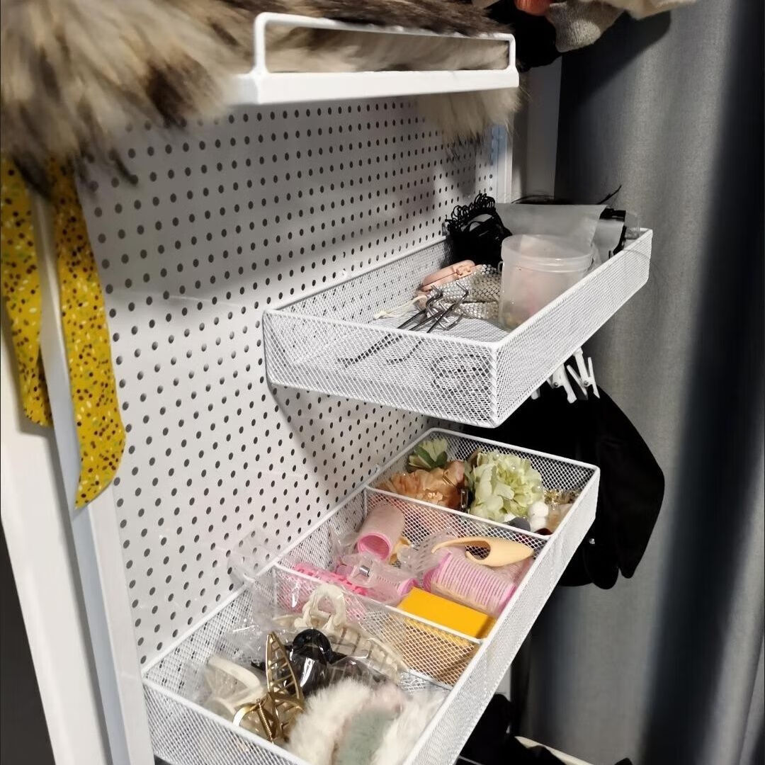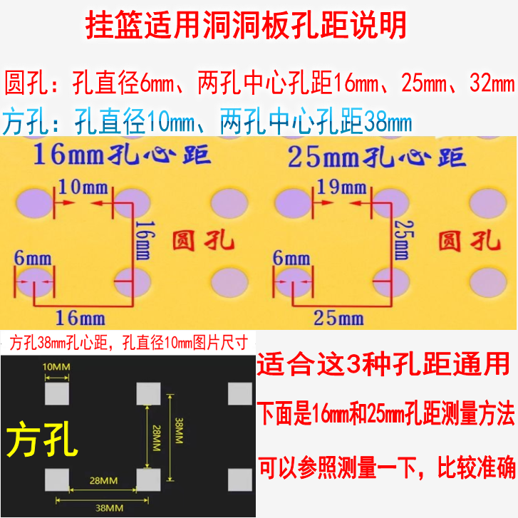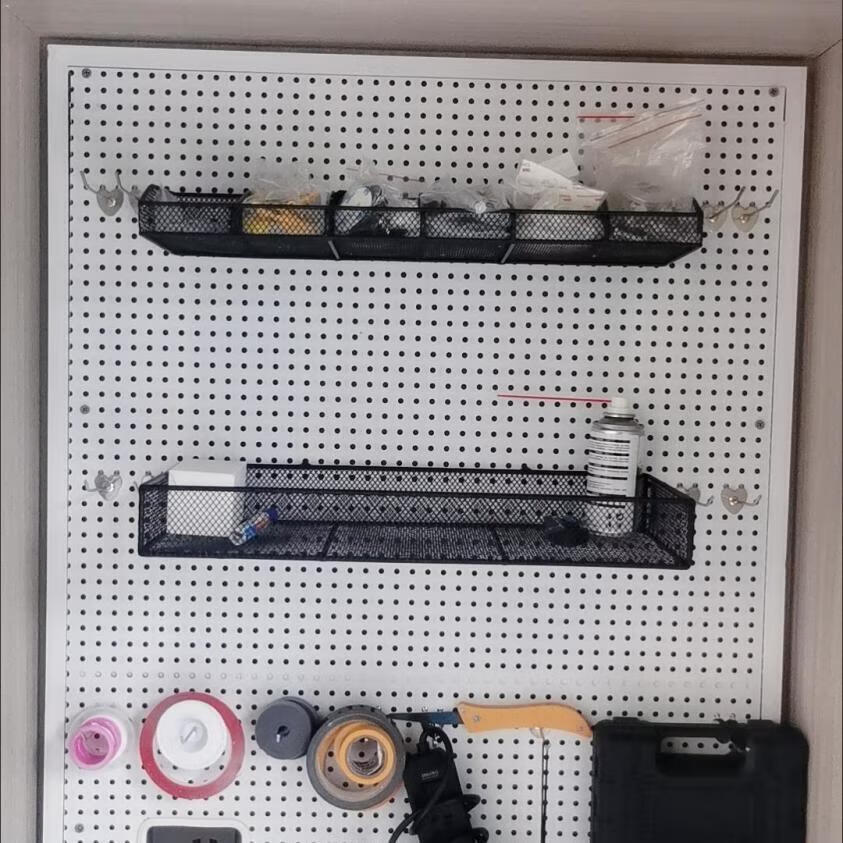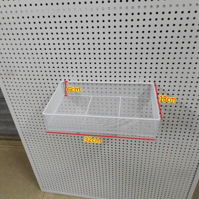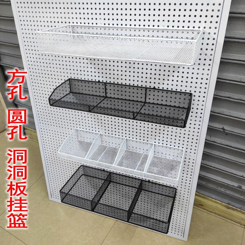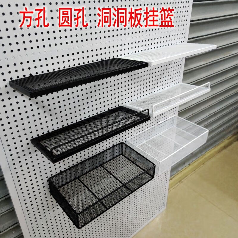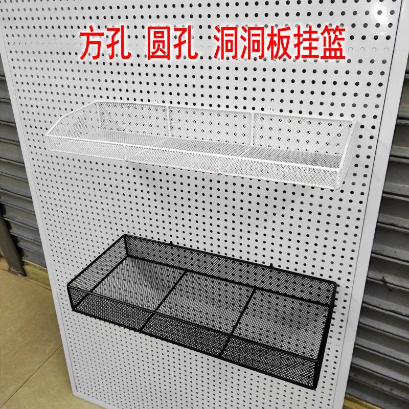 Perforated board hanging basket square hole round hole hole board accessories grid hanging basket iron storage board supermarket shelf storage blue white (square hole round hole hole board universal) round hole special three-sided hanging basket 39*15m