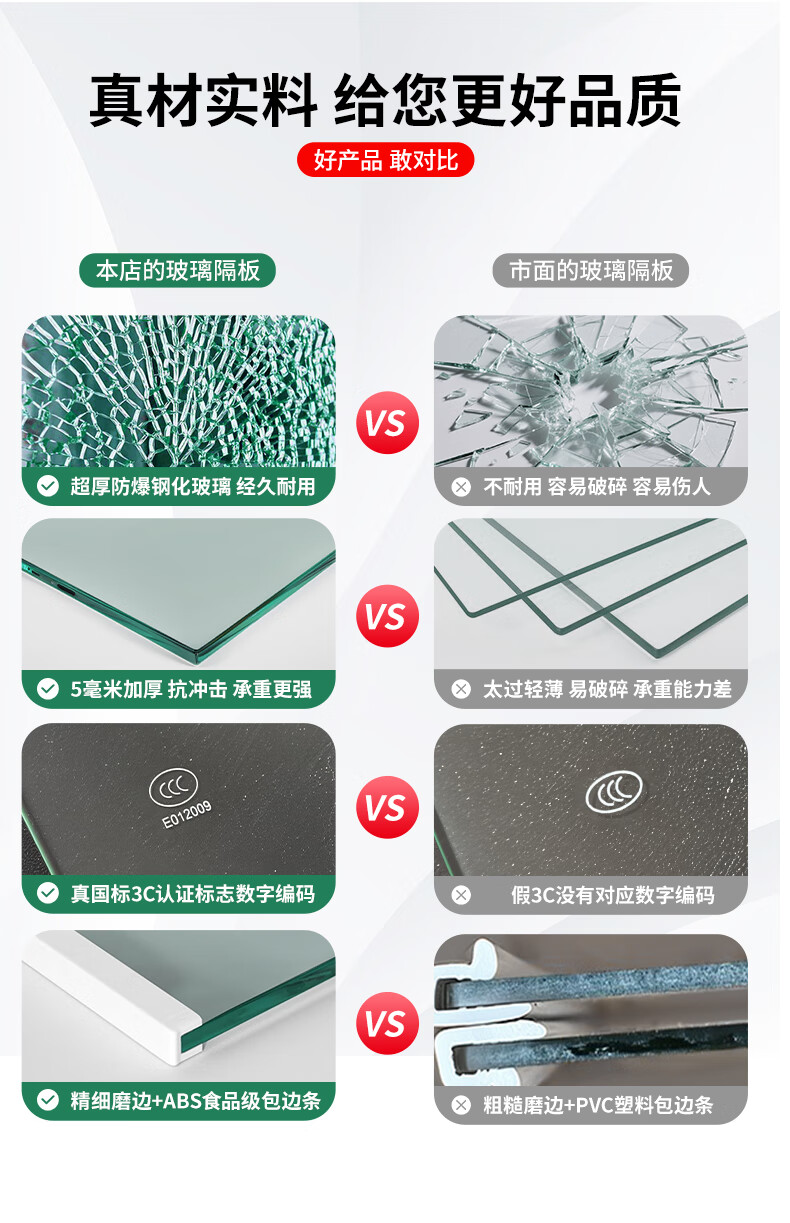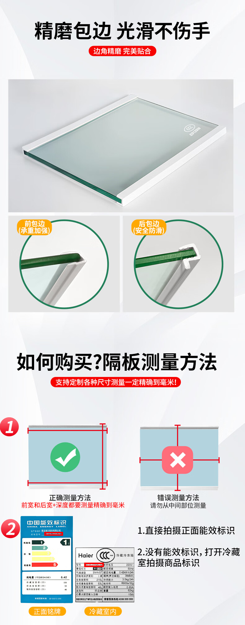 Suitable for TCL refrigerator partition layered plate tempered glass partition plate double door refrigeration freezer accessories double edge-small size customization 5mm/3C certification