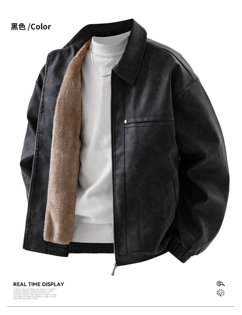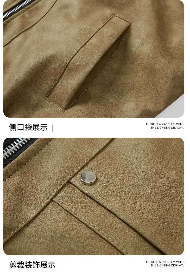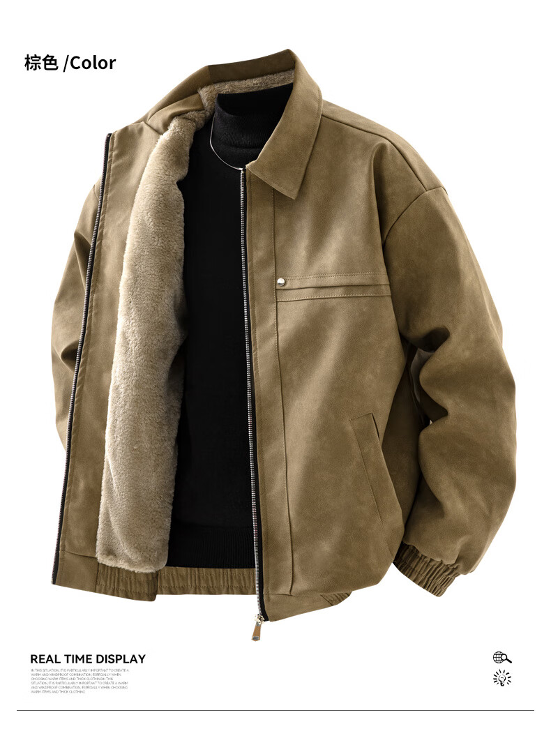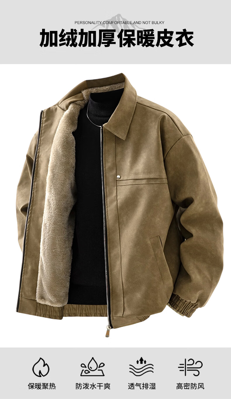 YISHion 2025 new PU leather jacket for men in autumn and winter plus velvet thickening loose trendy brand warm motorcycle leather jacket flagship official 472 brown upgraded model M 90-125Jin Jin is equal to 0.5 kg
