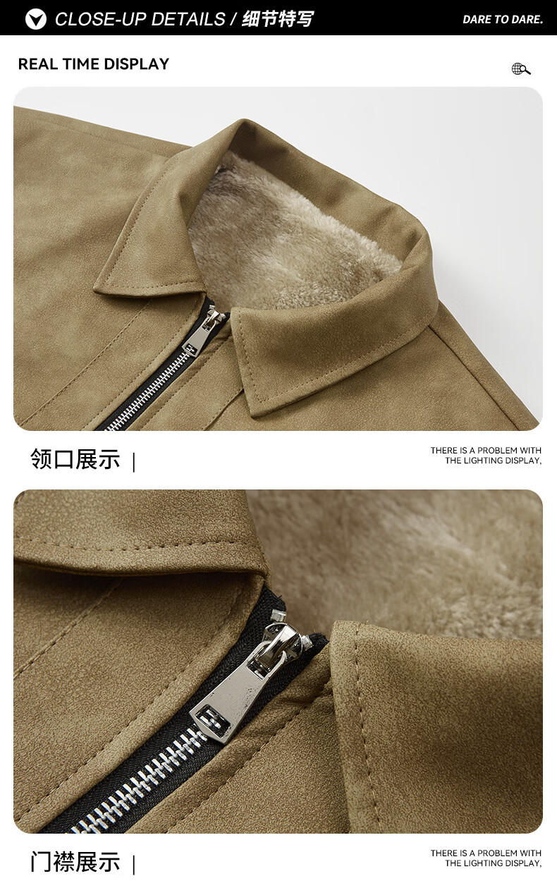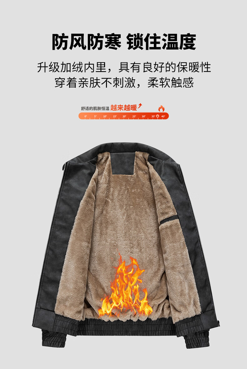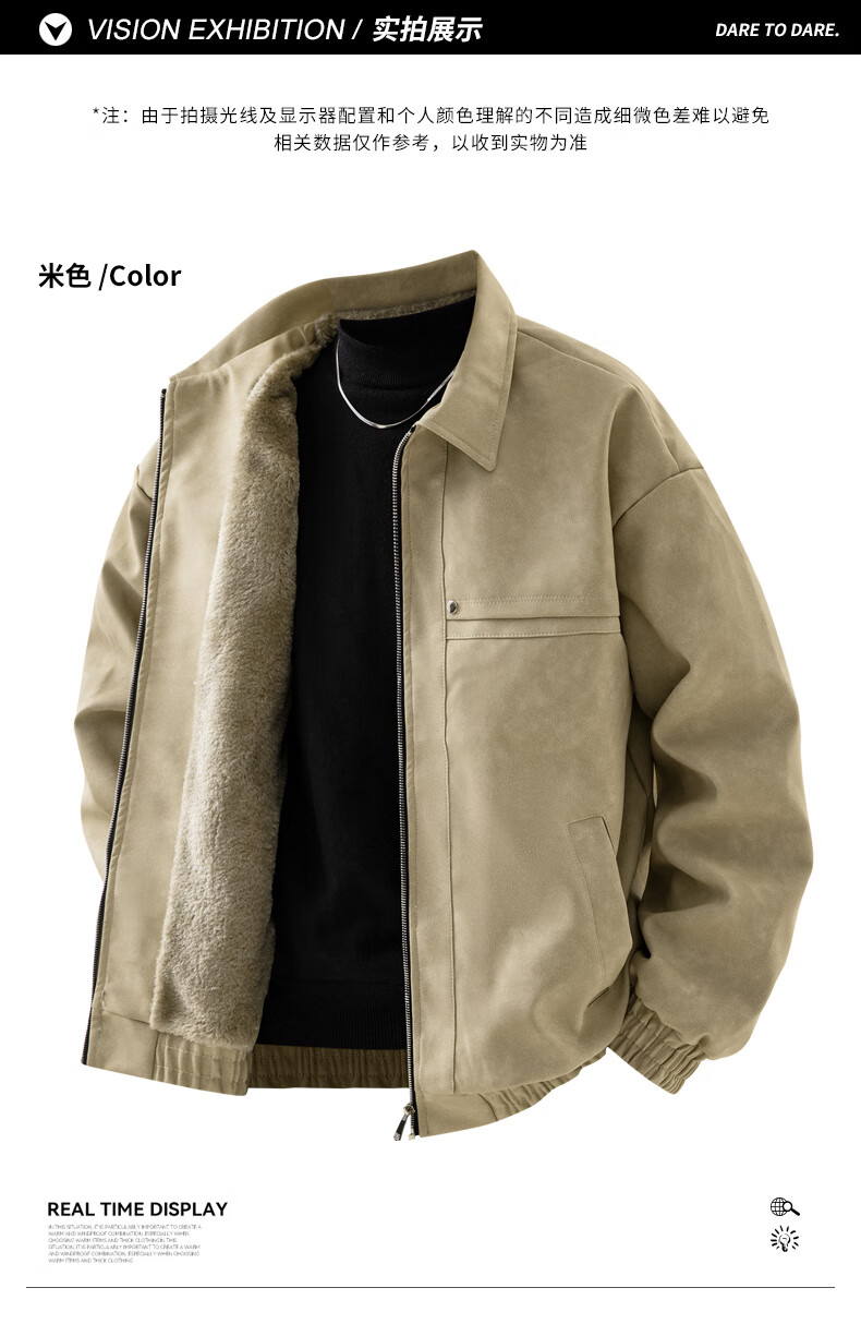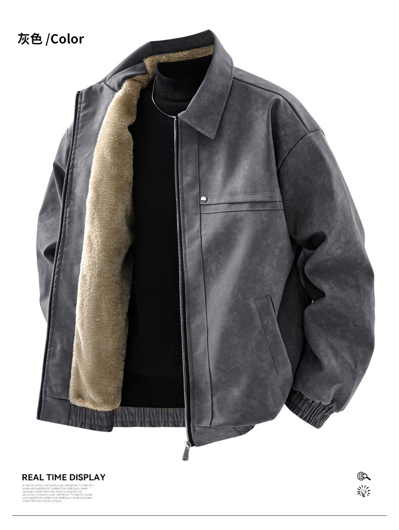 YISHion 2025 new PU leather jacket for men in autumn and winter plus velvet thickening loose trendy brand warm motorcycle leather jacket flagship official 472 brown upgraded model M 90-125Jin Jin is equal to 0.5 kg