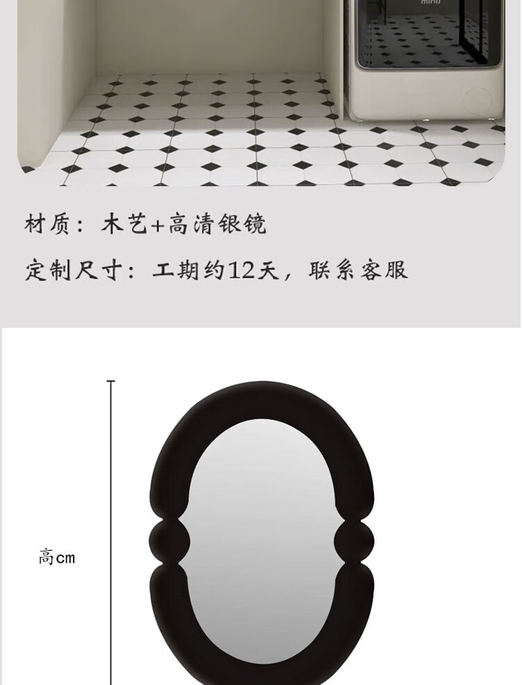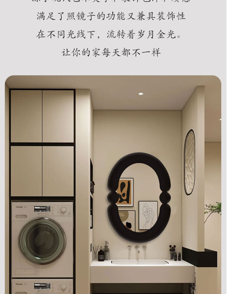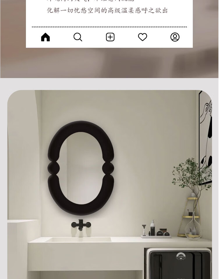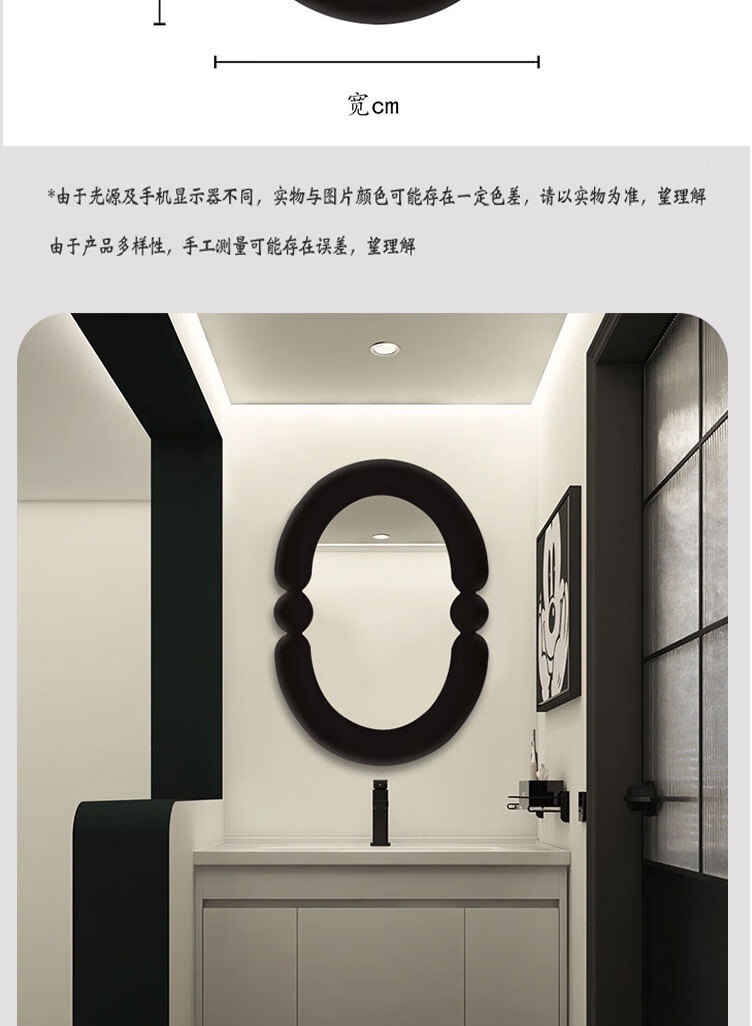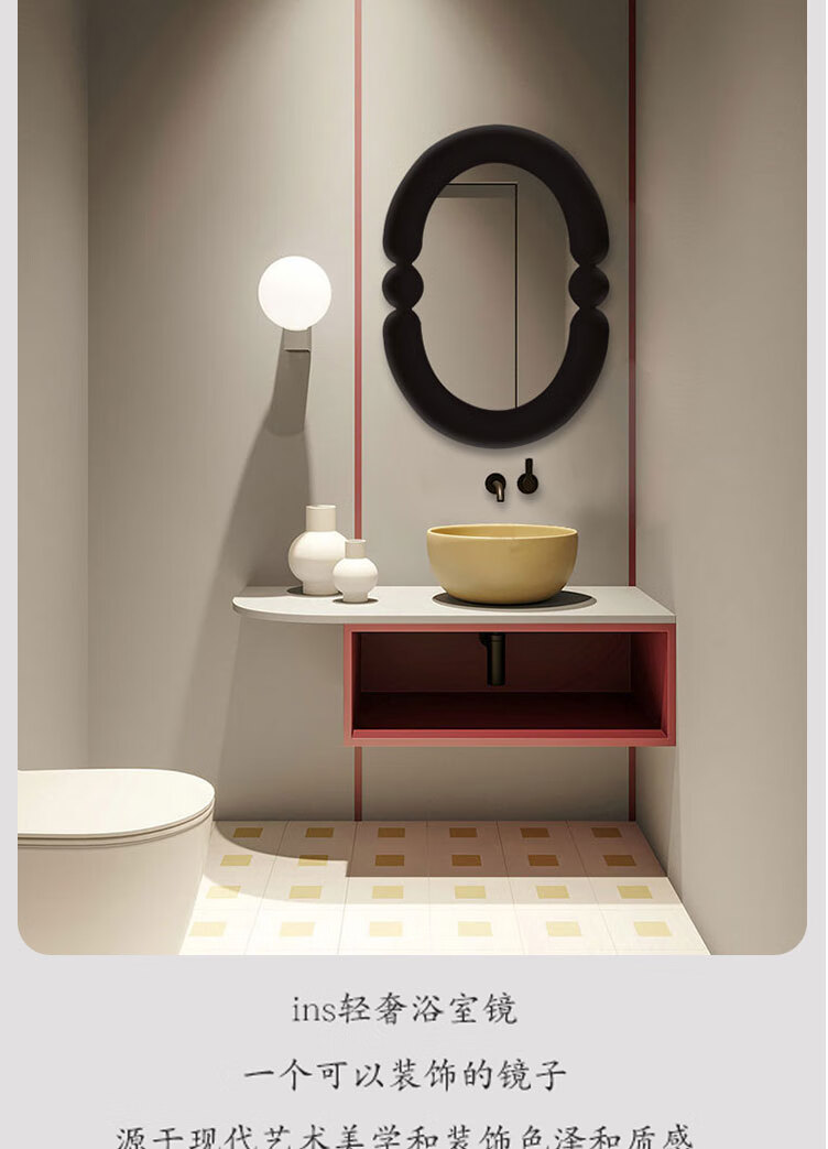Ins style wall-mounted oval anti-fog bathroom mirror bay window countertop cosmetic mirror Nordic bedroom dressing decorative art mirror LED plug-in model 60x90cm