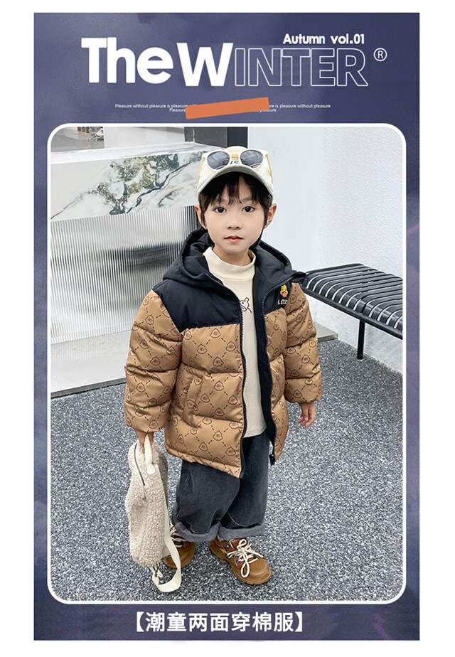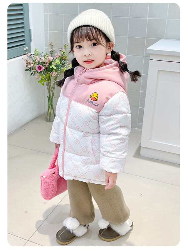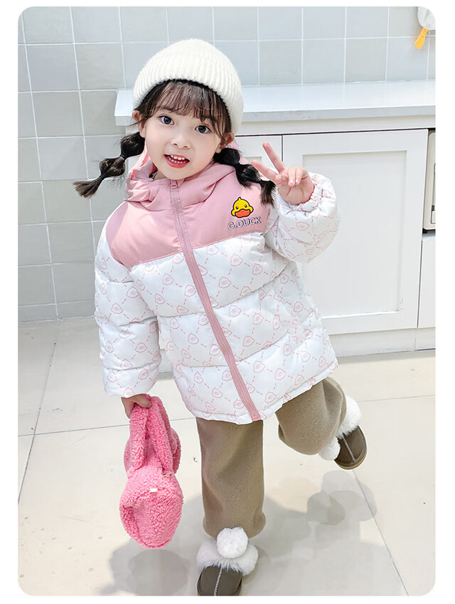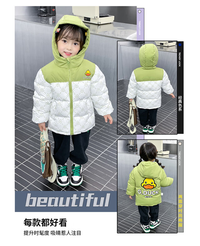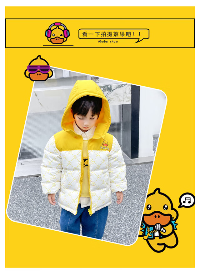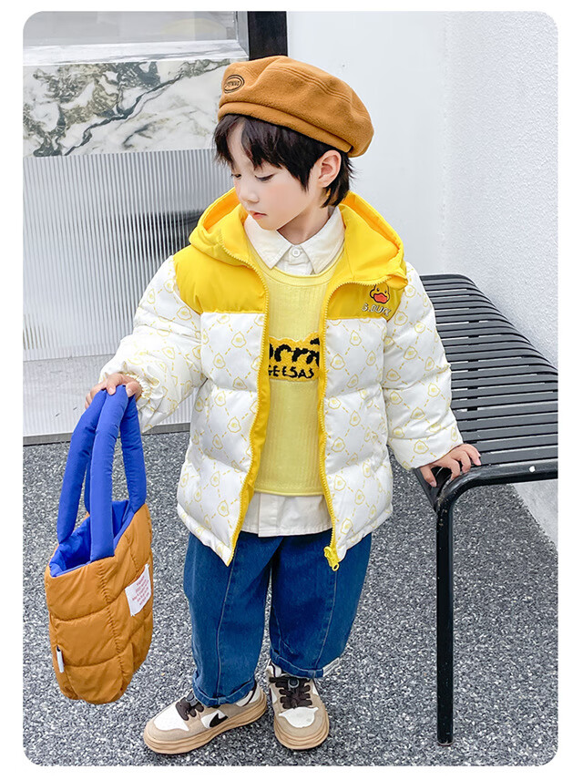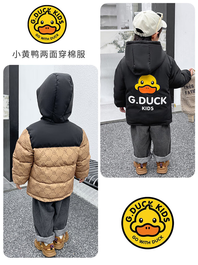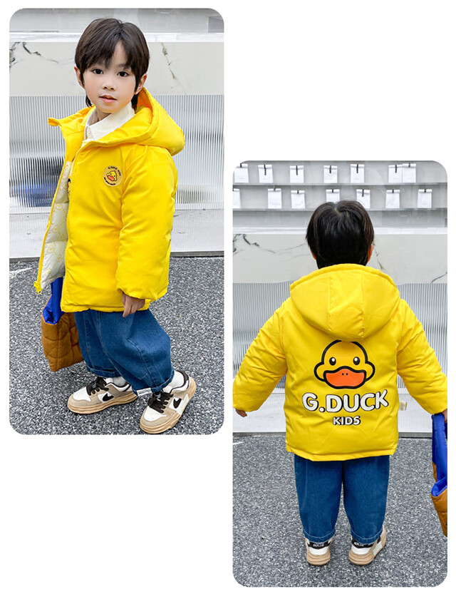 G.duck children's down jacket, boy's thickened double-sided baby girl's winter jacket, winter children's jacket, yellow 130 cm