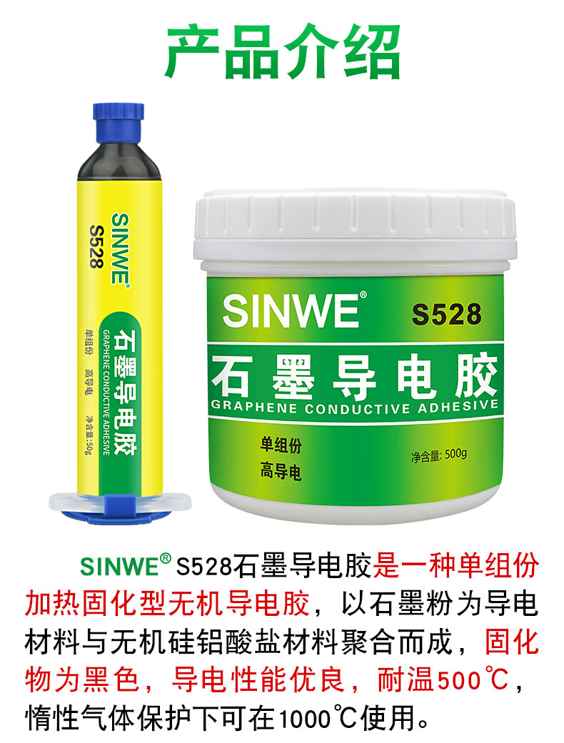 SINWE high temperature resistant conductive glue plastic metal paint resin glue thermal paste coating graphene glue solder-free filler graphite conductive glue 50g